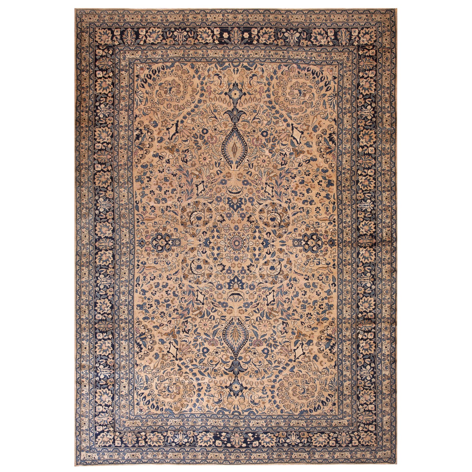 DescriptionMashadThe largest city in Khorassan Province, northeast Iran. The carpet industry there is a late 19th century creation of relocated Tabriz merchants. Both Turkish (Turkhaff) and Persian-(Farsihaft) knotted rugs are produced in large sizes up to 20 x 30, in rich colors including a mulberry. Red designs are strictly curvilinear and often large animals and birds appear. Open fields with medallion and corner ornamentation are common. The texture is thick and heavy. The use of jufti knots allows rapid production. In the 20th century, several renowned workshops (Emogli, | |