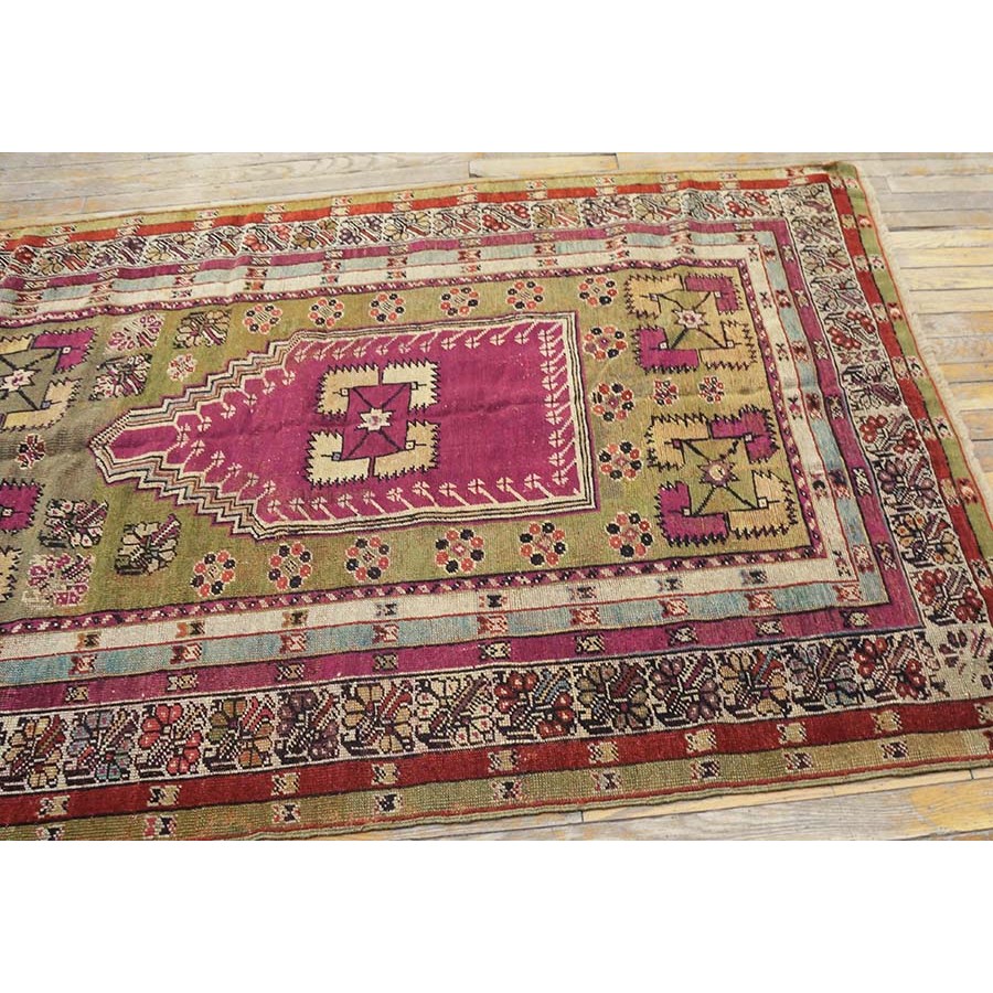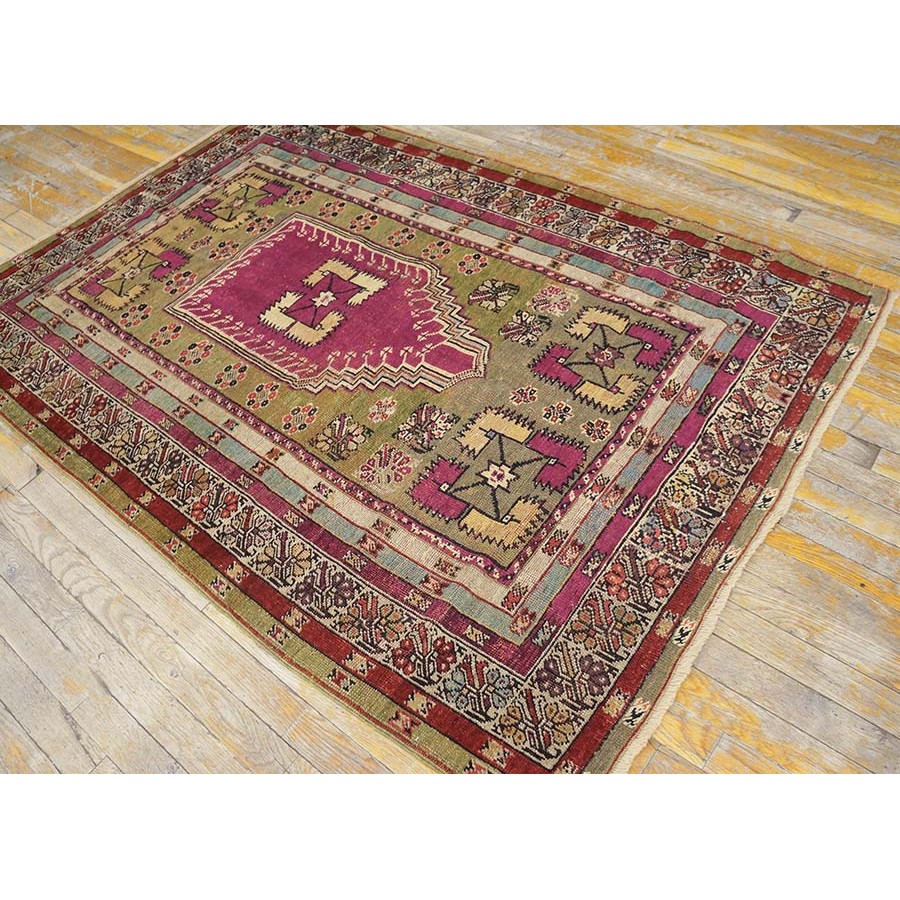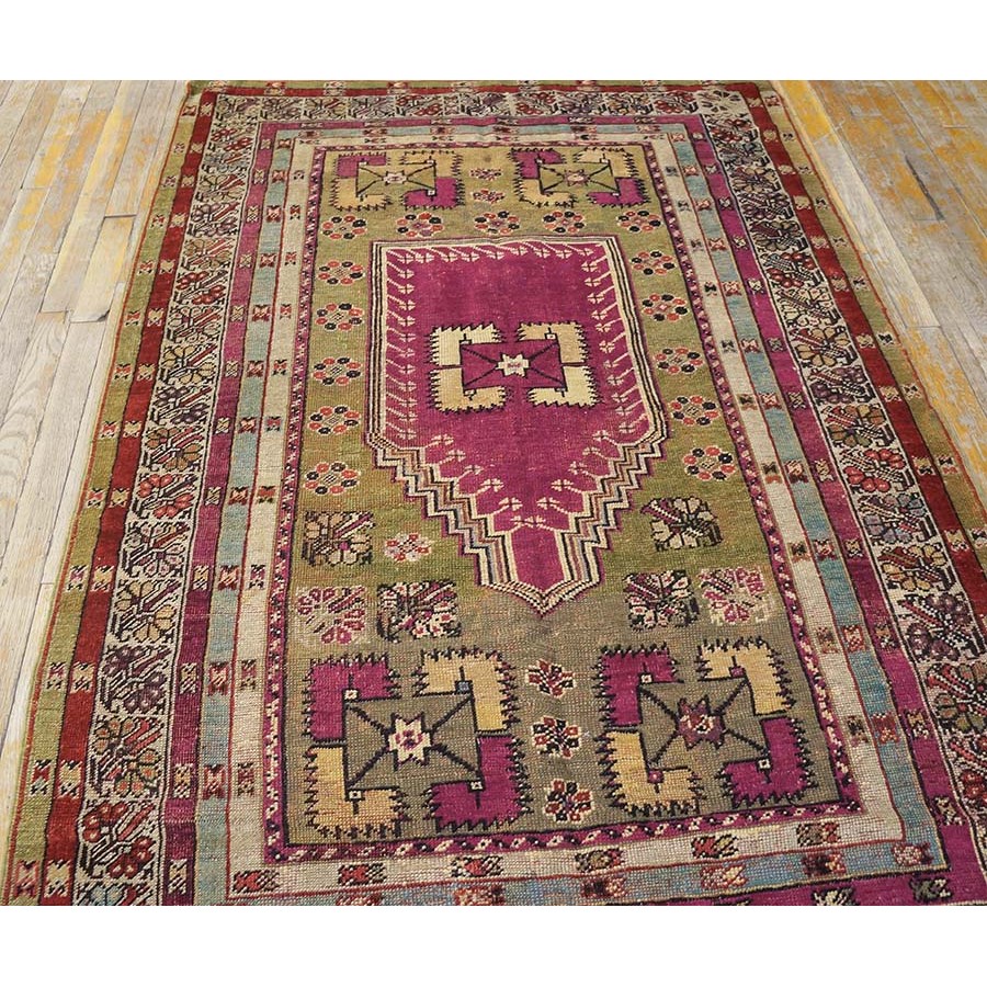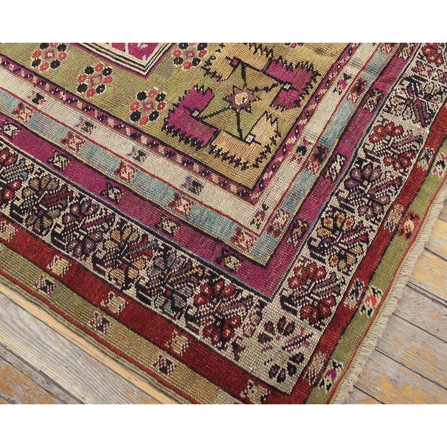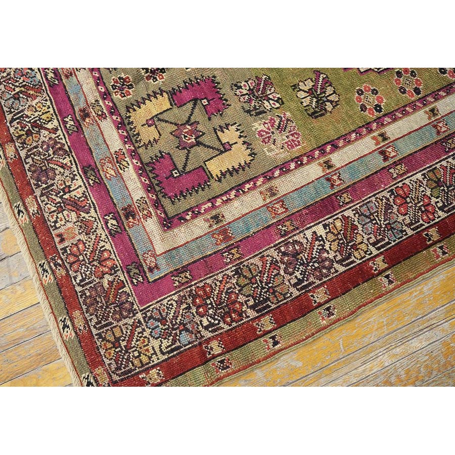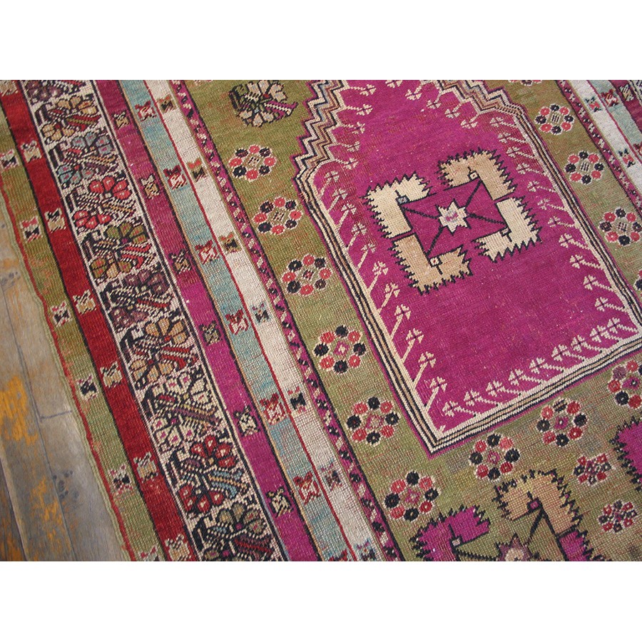 DescriptionMelasThese are small rugs, often in prayer format, made in and around the town of Melas in southwest Turkey, near the Aegean Sea. The pile is short for a village rug, the colors favor red, yellow, pistachio green and light blue. Production reached a quality peak in the 19th century and all good ones predate 1900. Modern Melas work retains the same design motives but in a coarser and simplified manner. These are wholly commercial pieces and only the older ones are collectible. | |