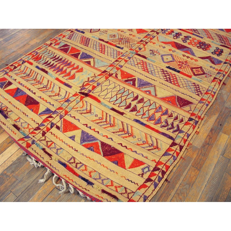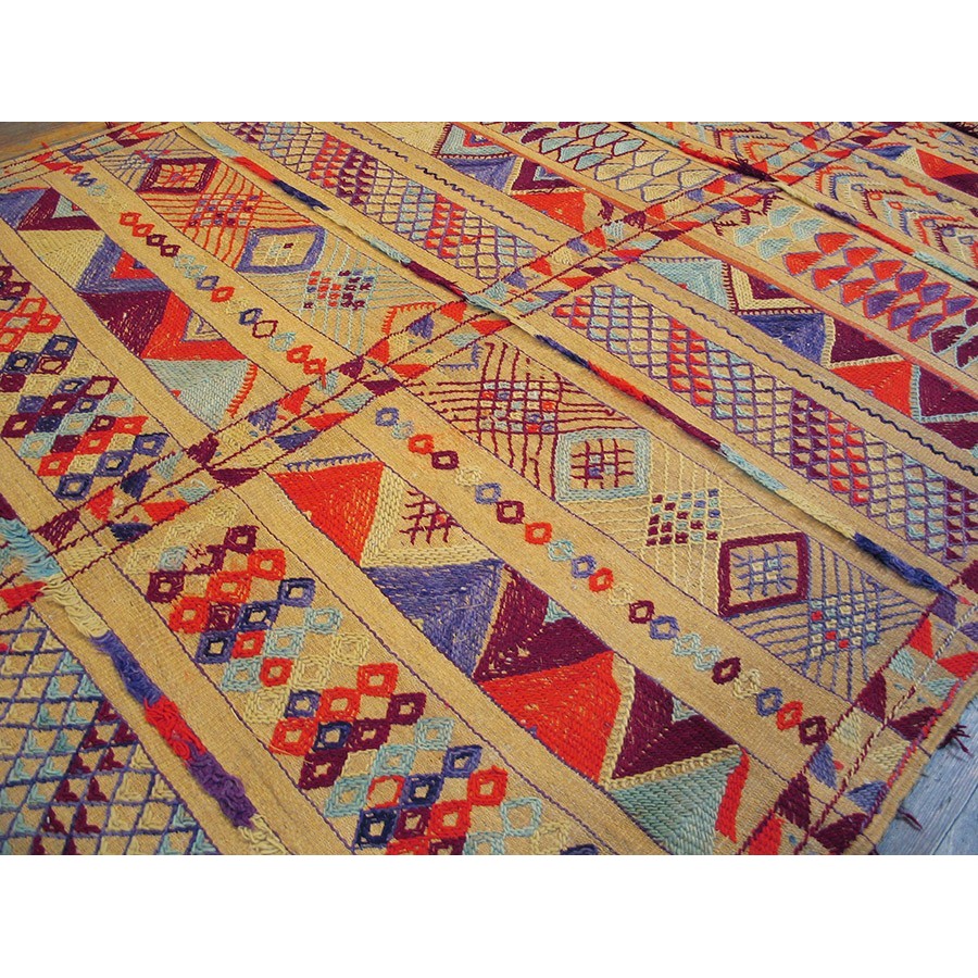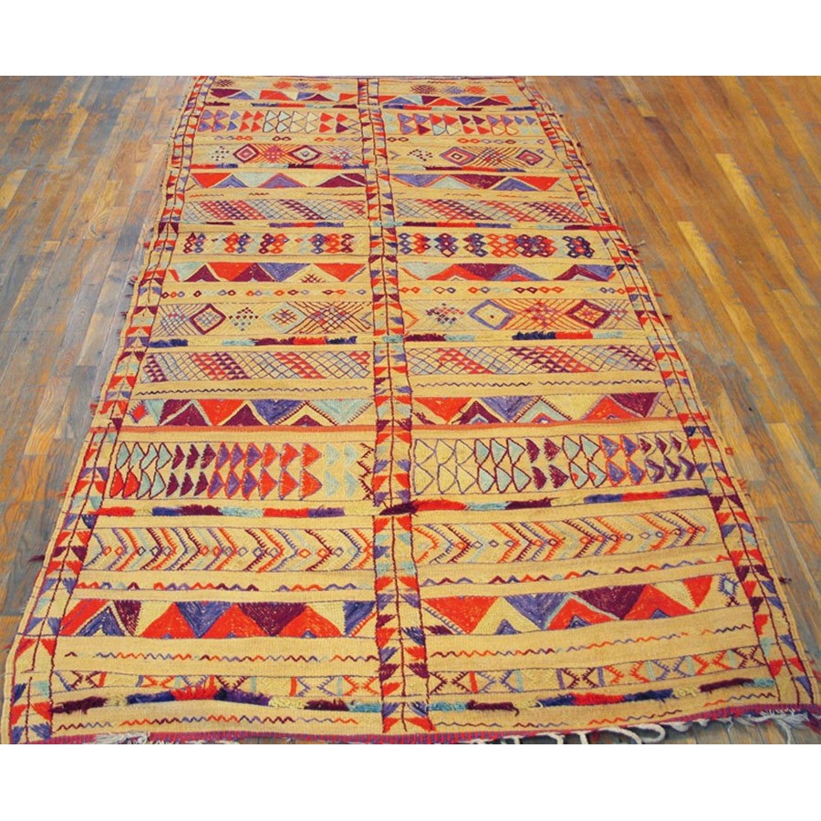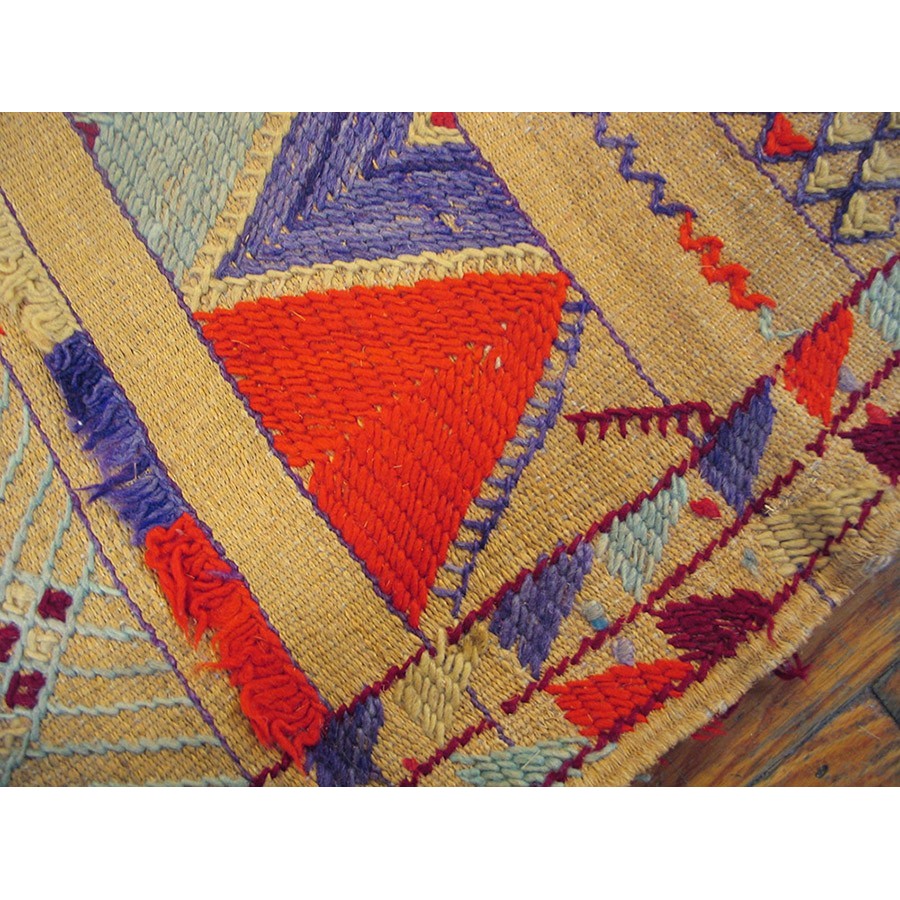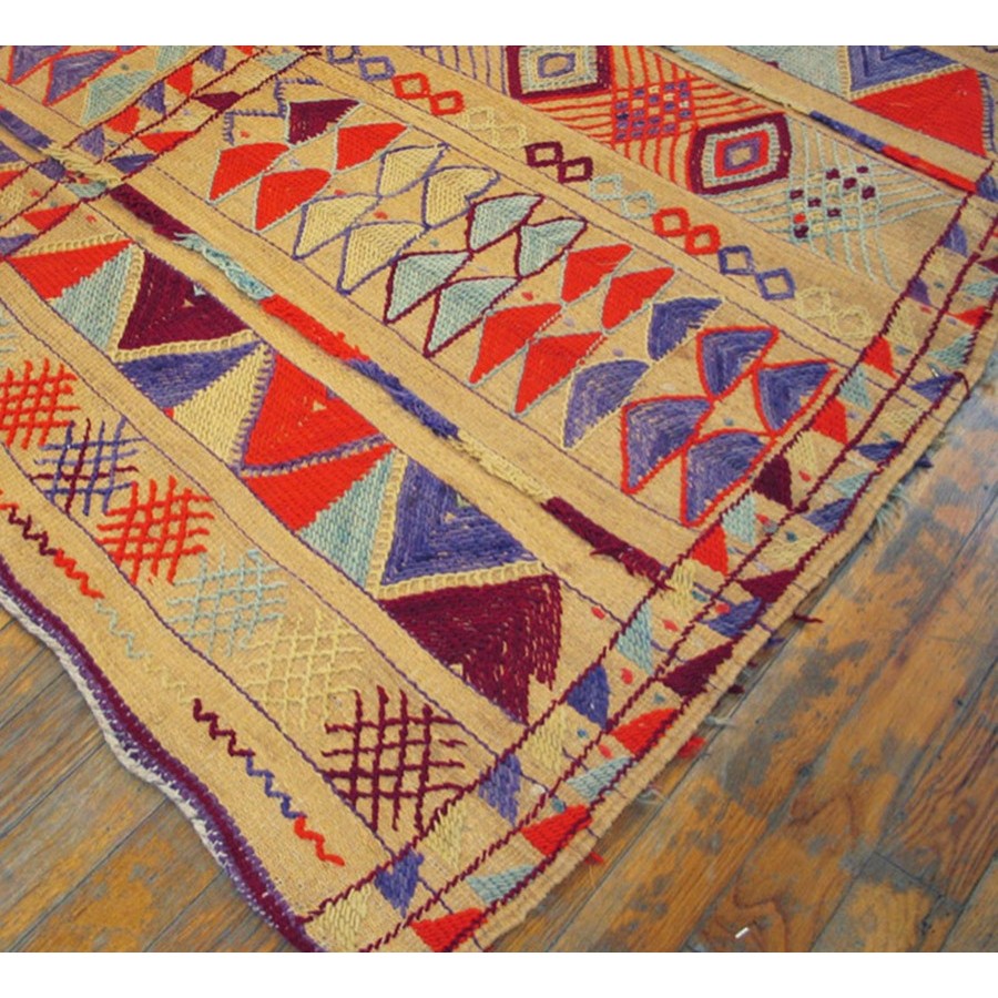 DescriptionMoroccanMoroccan rugs are usually coarsely woven with thick handspun wool which is left long and shaggy. These shag style carpets are known as Ben Ourian, and may come very plain with basic geometry in whites and browns, or highly stylized in a busy geometry with many colors for a bold look. Flatweaves are also found, but are not common. | |
