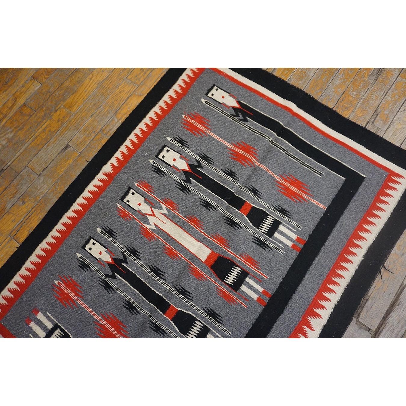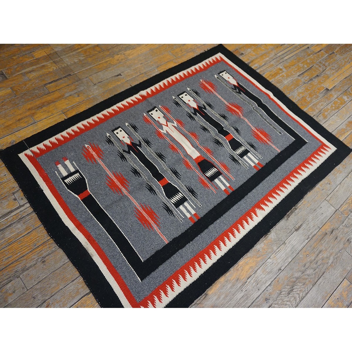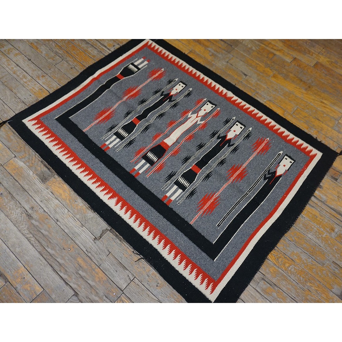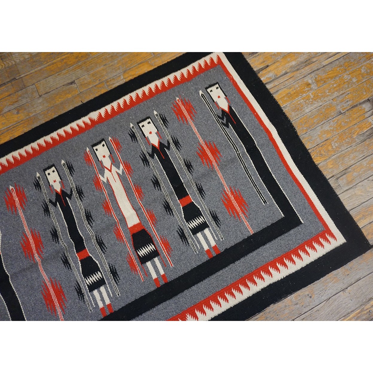Yei rugs are copies after intentionally transient sand paintings and are 20th century innovation. This one is in very good condition.