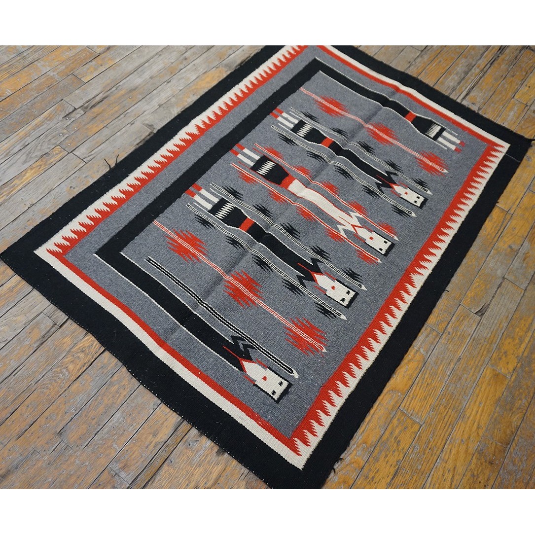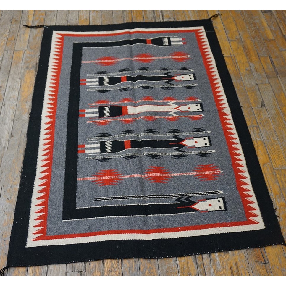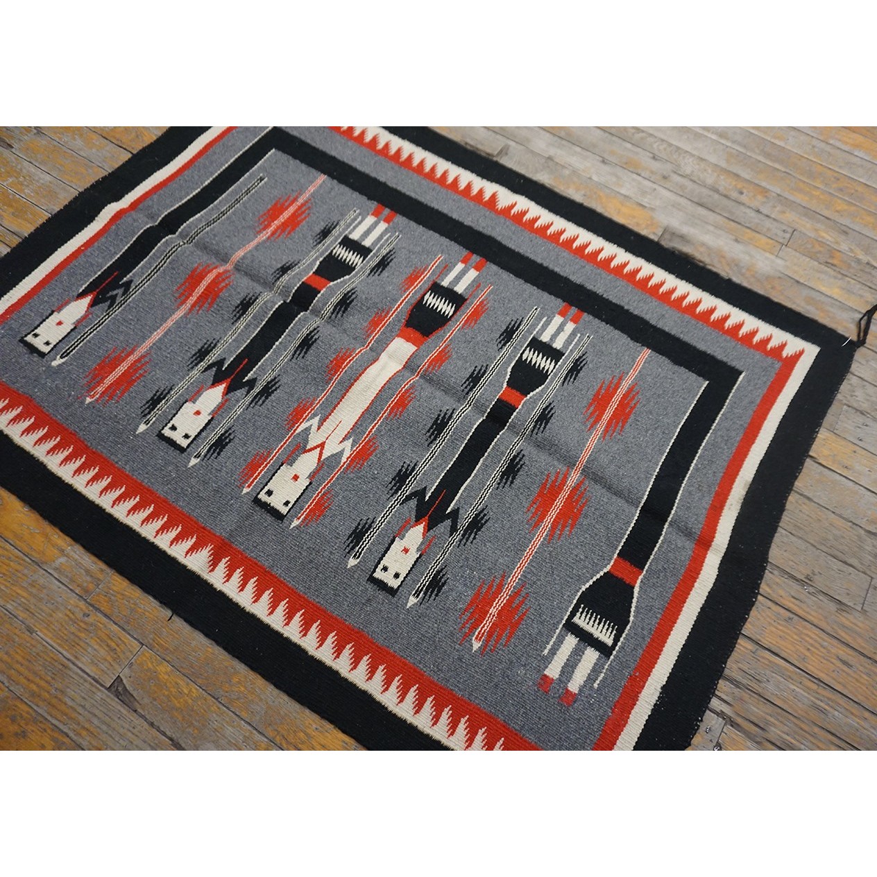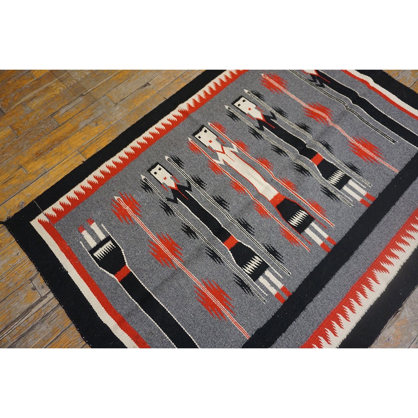 Yei rugs are copies after intentionally transient sand paintings and are 20th century innovation. This one is in very good condition.