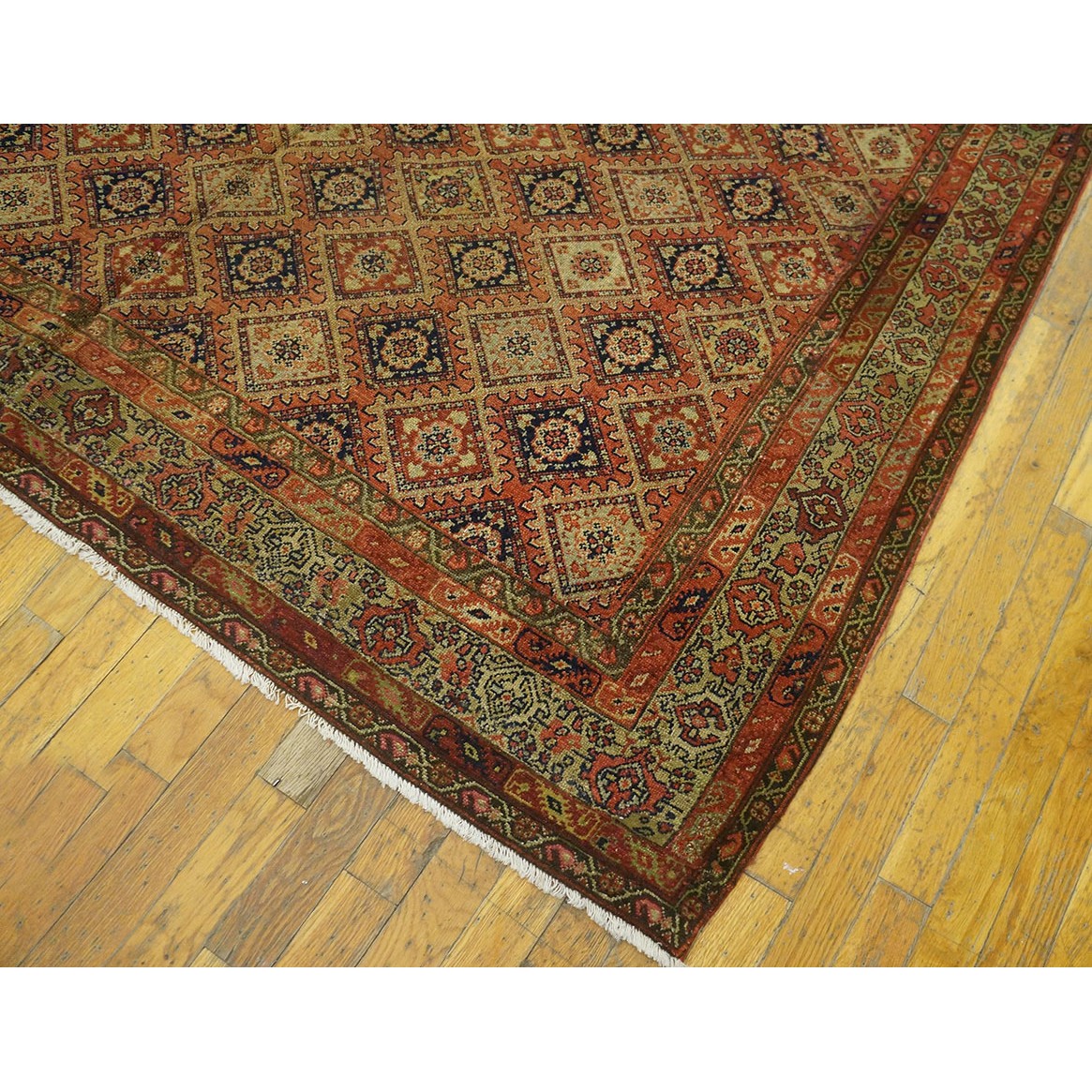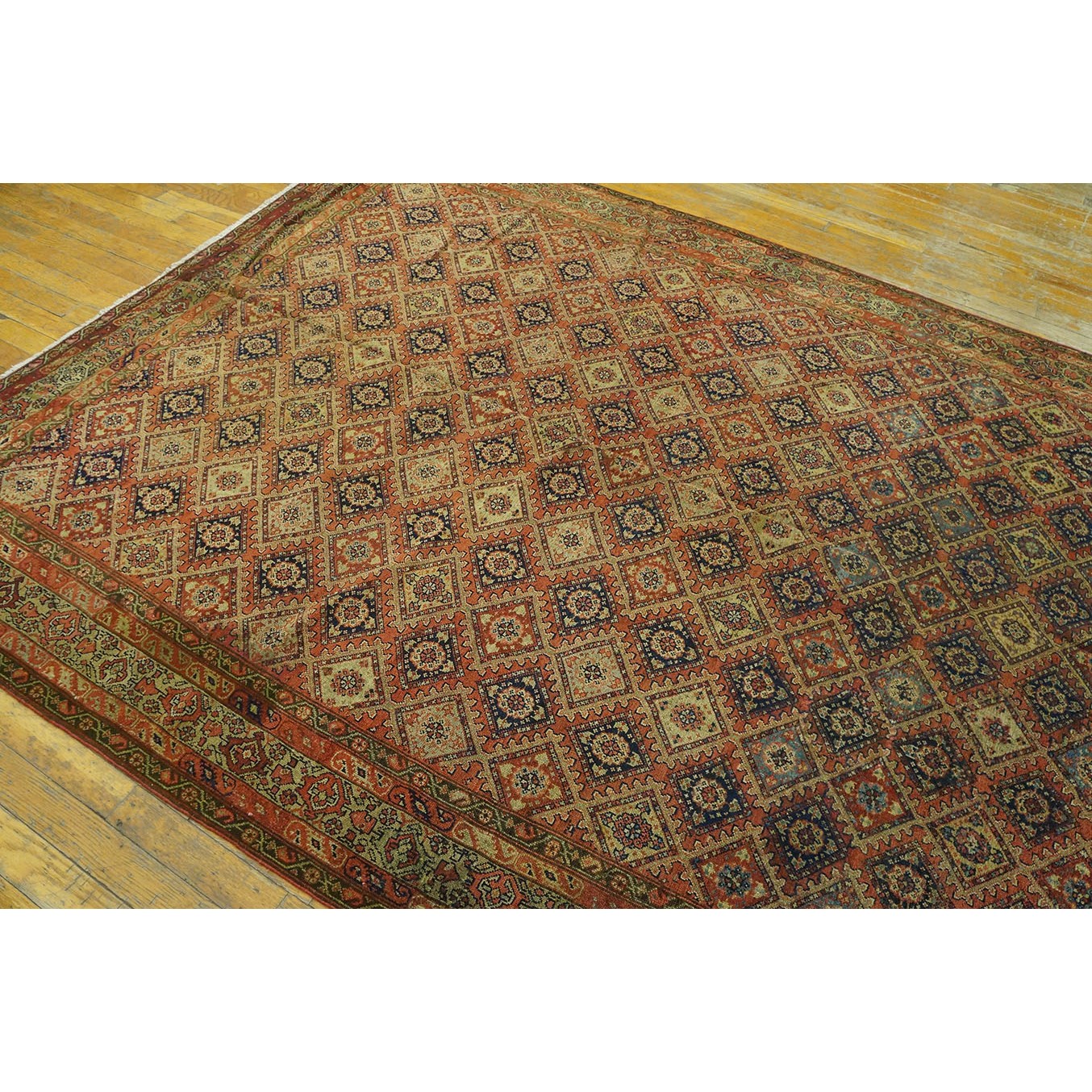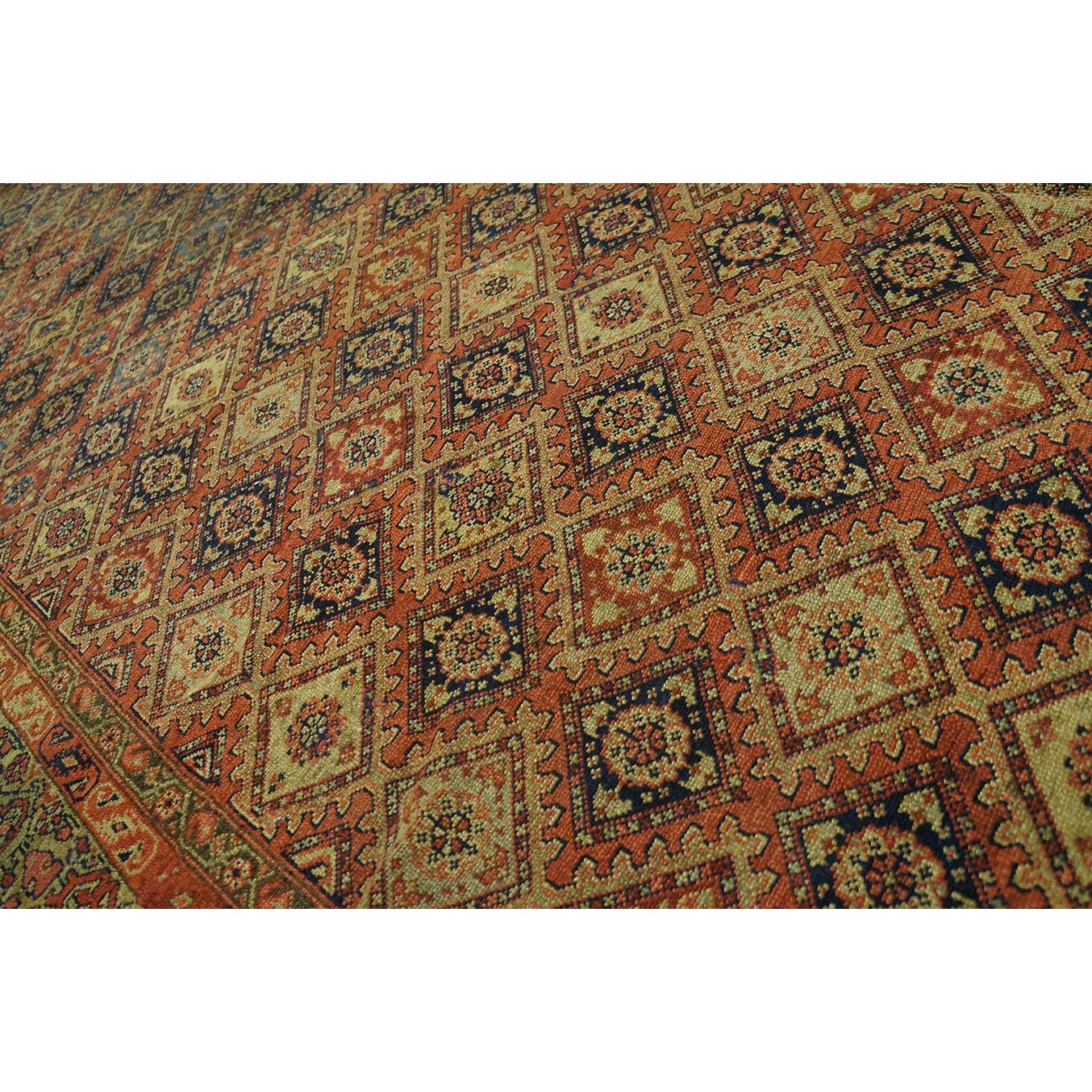 DescriptionSennehSanandaj or Senneh is the capital of Kurdistan province. Rugs made there and in the surrounding villages have a peculiar back with a rough, sandpaper texture. The front pile is very dry and can be almost abrasive, even in very fine pieces. The foundation is usually cotton, but some very fine pieces were woven on silk warps. Patterns are either layered medallions or overall, and the Herati design is very popular. The execution is precise and detailed. Present production is vestigial, but the best 19th century pieces, almost all 4 x 6 are jewel-like in quality. | |