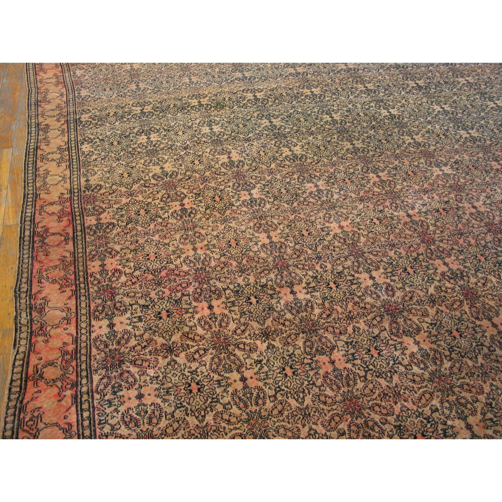 DescriptionSennehSanandaj or Senneh is the capital of Kurdistan province. Rugs made there and in the surrounding villages have a peculiar back with a rough, sandpaper texture. The front pile is very dry and can be almost abrasive, even in very fine pieces. The foundation is usually cotton, but some very fine pieces were woven on silk warps. Patterns are either layered medallions or overall, and the Herati design is very popular. The execution is precise and detailed. Present production is vestigial, but the best 19th century pieces, almost all 4 x 6 are jewel-like in quality. | |