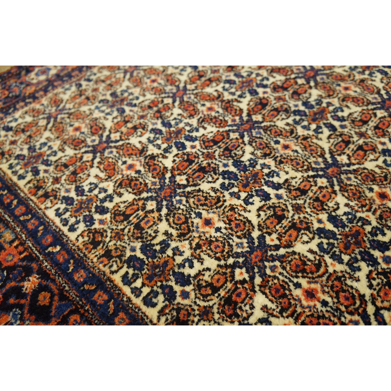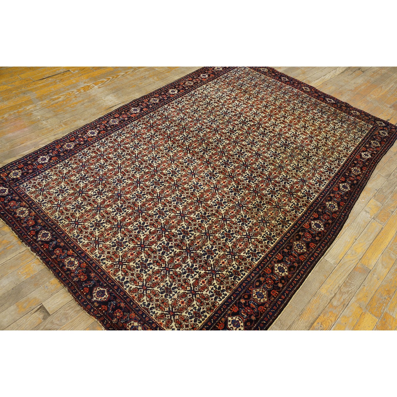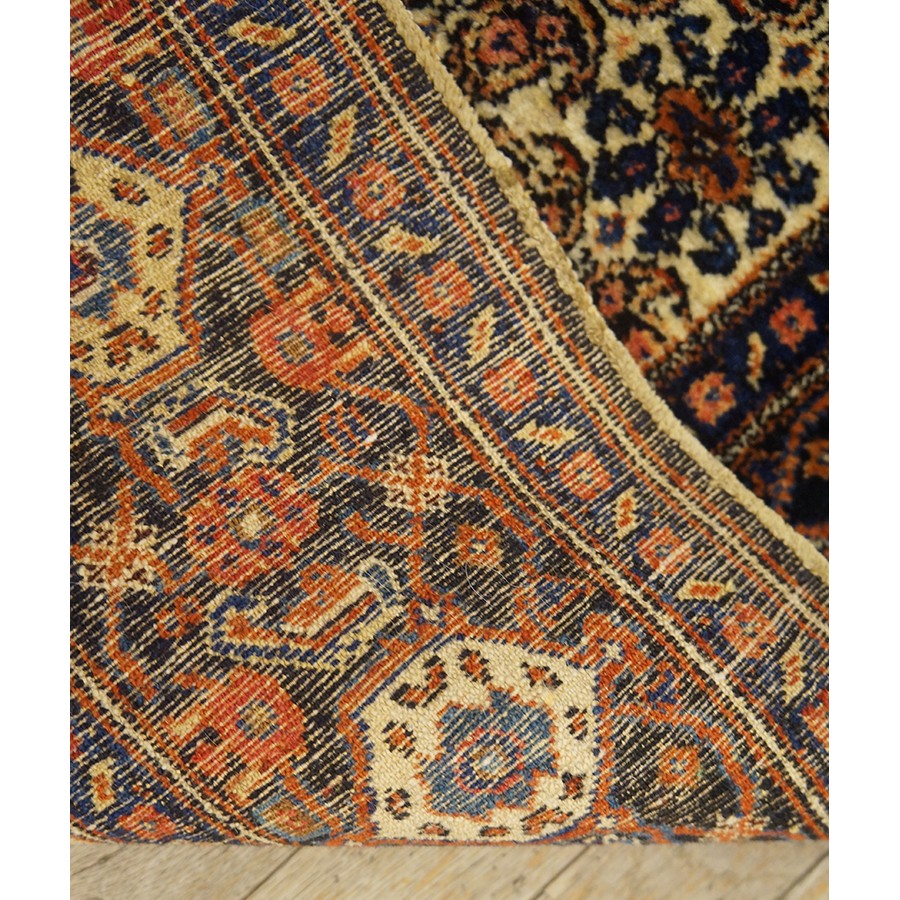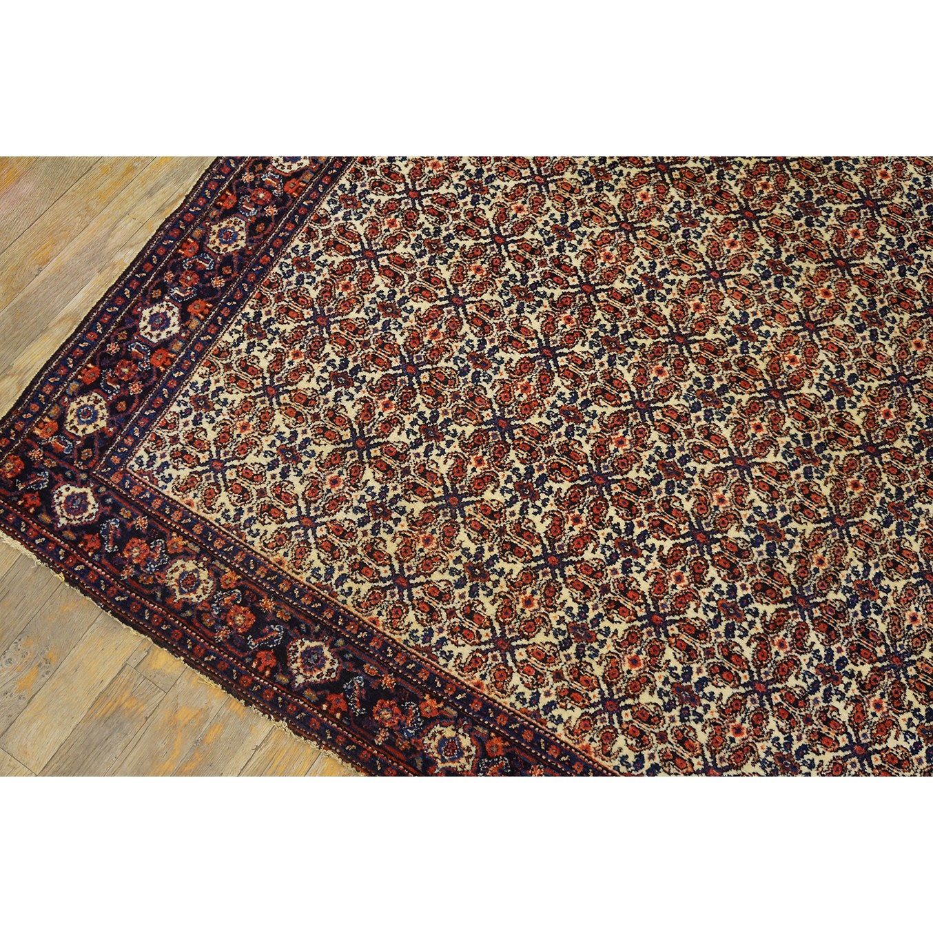 DescriptionSennehSanandaj or Senneh is the capital of Kurdistan province. Rugs made there and in the surrounding villages have a peculiar back with a rough, sandpaper texture. The front pile is very dry and can be almost abrasive, even in very fine pieces. The foundation is usually cotton, but some very fine pieces were woven on silk warps. Patterns are either layered medallions or overall, and the Herati design is very popular. The execution is precise and detailed. Present production is vestigial, but the best 19th century pieces, almost all 4 x 6 are jewel-like in quality. | |