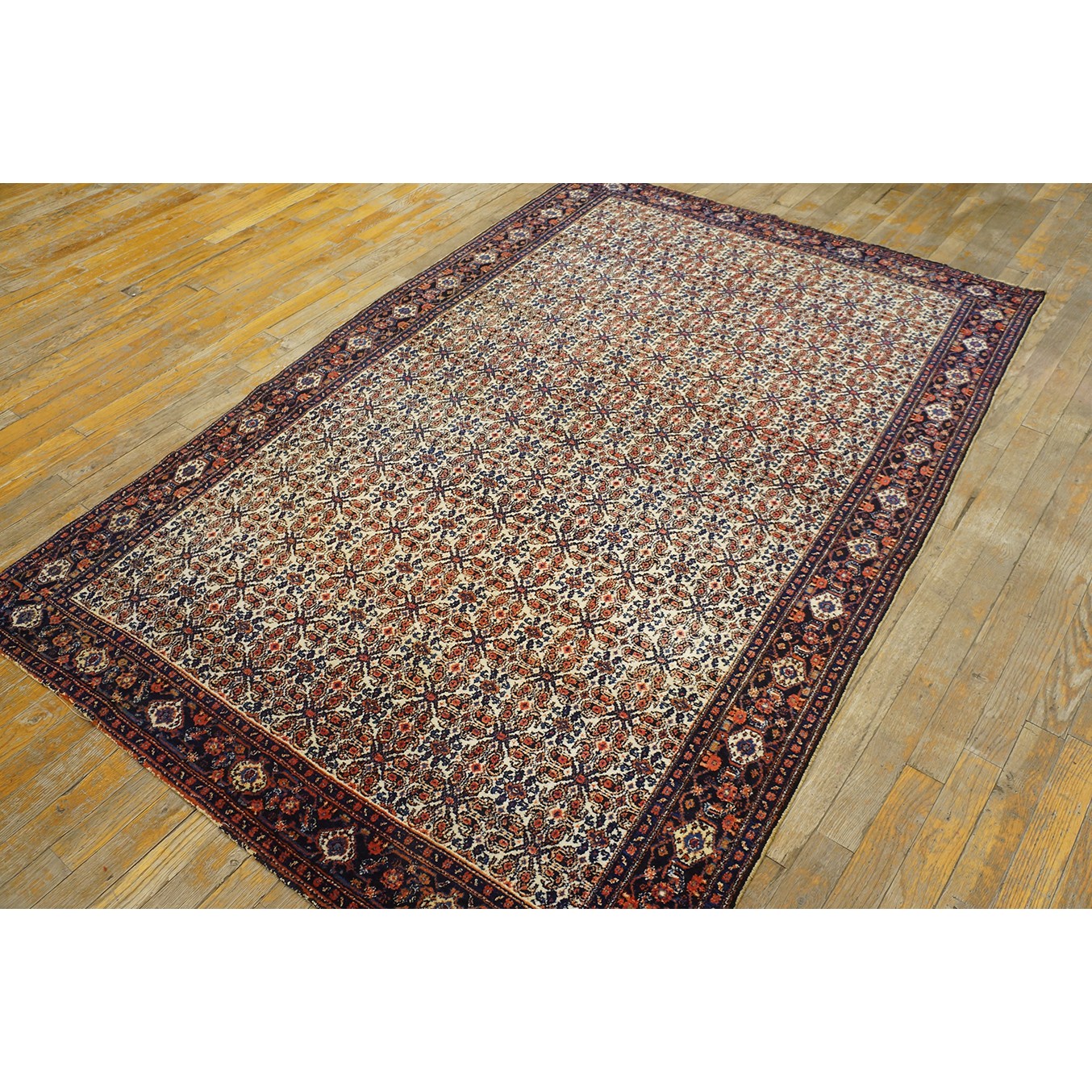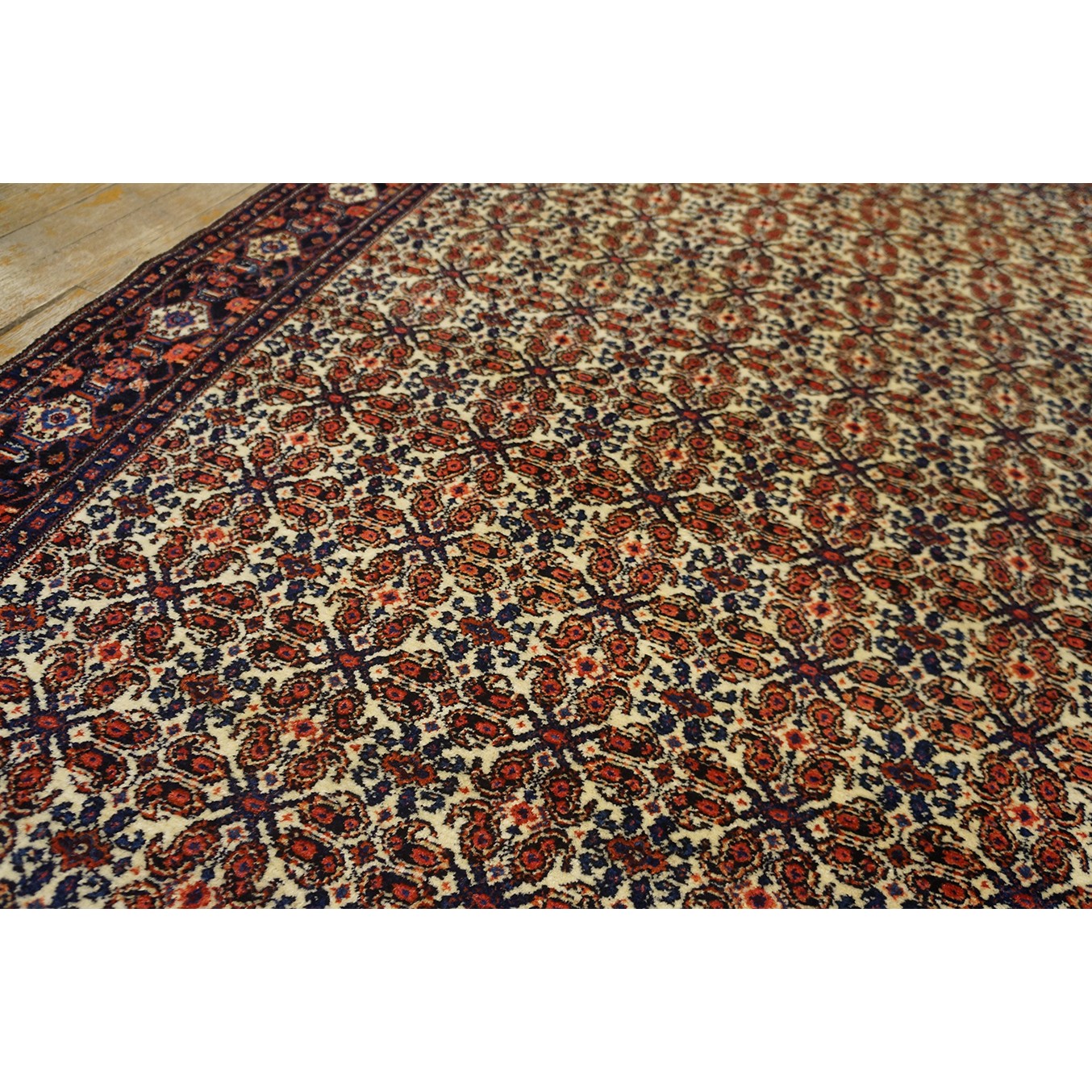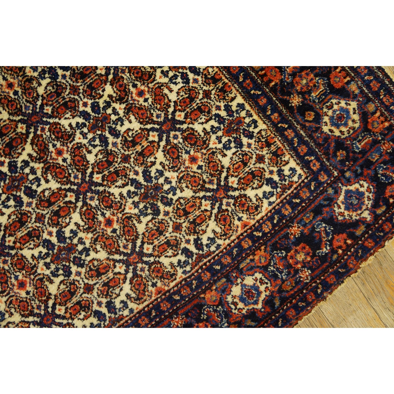 DescriptionSennehSanandaj or Senneh is the capital of Kurdistan province. Rugs made there and in the surrounding villages have a peculiar back with a rough, sandpaper texture. The front pile is very dry and can be almost abrasive, even in very fine pieces. The foundation is usually cotton, but some very fine pieces were woven on silk warps. Patterns are either layered medallions or overall, and the Herati design is very popular. The execution is precise and detailed. Present production is vestigial, but the best 19th century pieces, almost all 4 x 6 are jewel-like in quality. | |