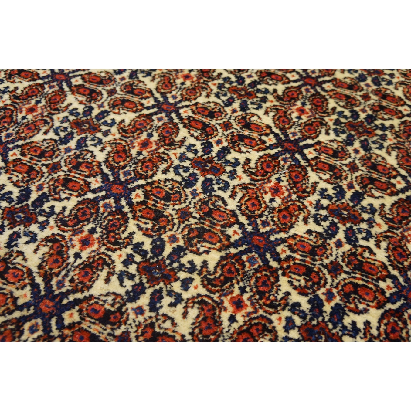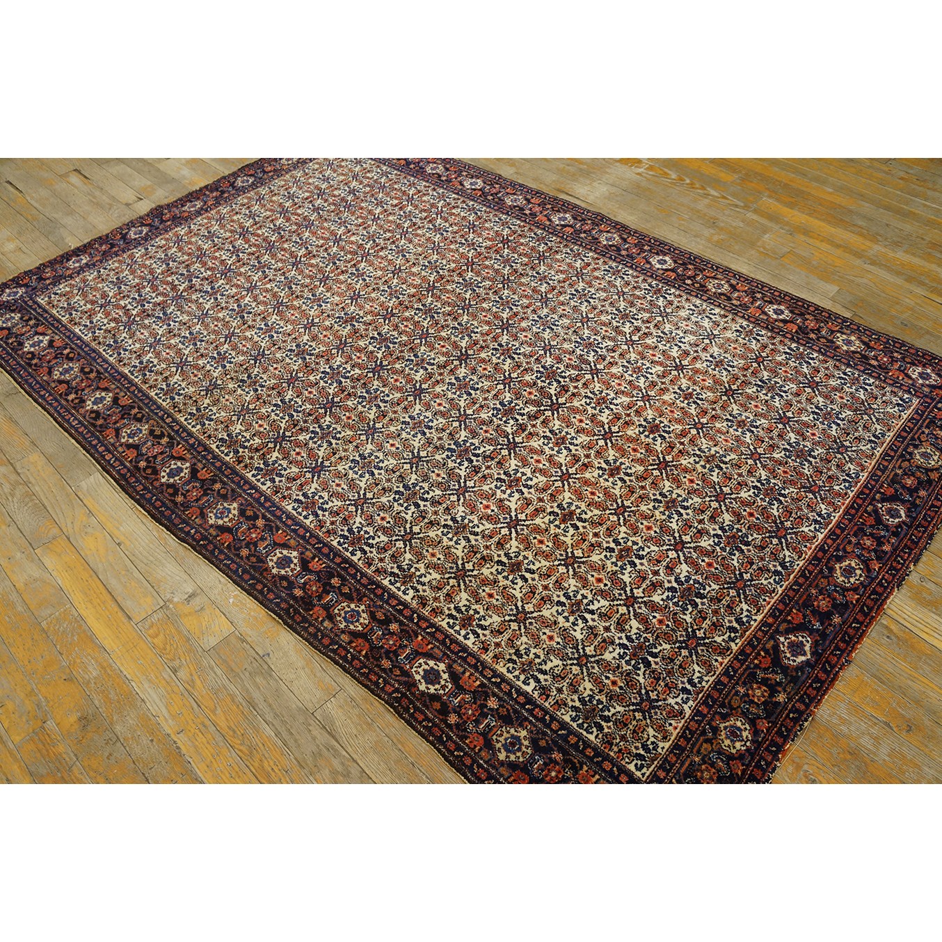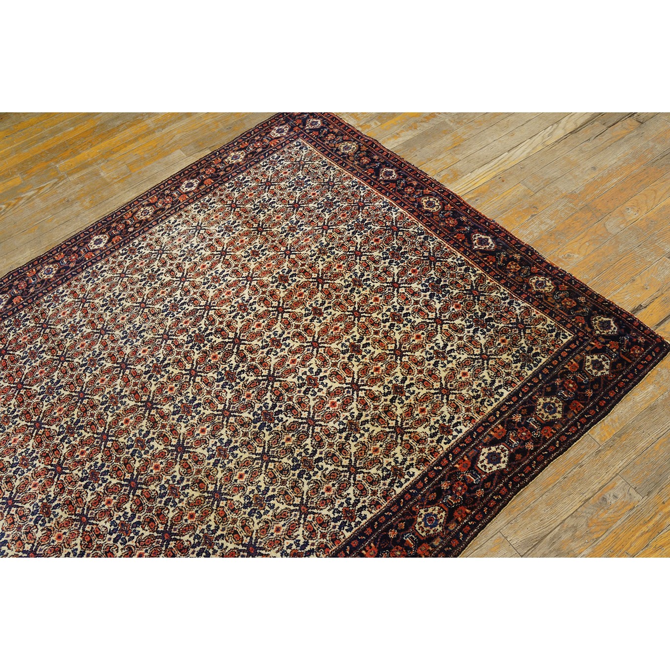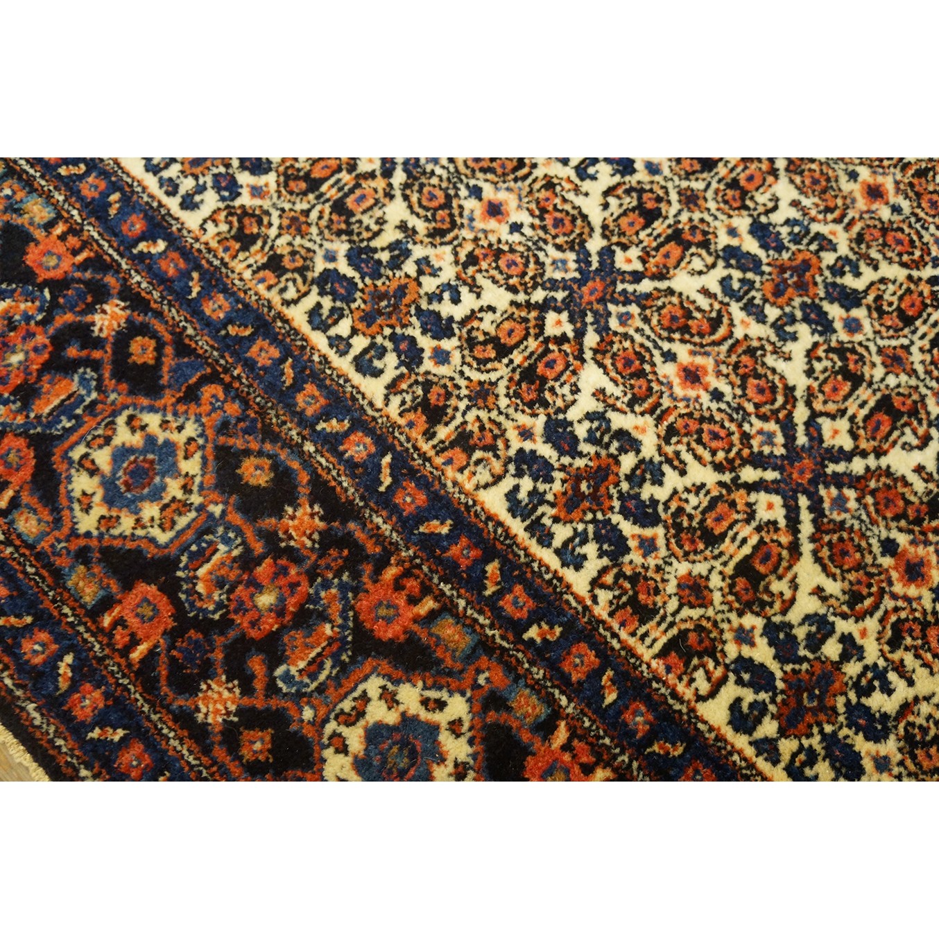 DescriptionSennehSanandaj or Senneh is the capital of Kurdistan province. Rugs made there and in the surrounding villages have a peculiar back with a rough, sandpaper texture. The front pile is very dry and can be almost abrasive, even in very fine pieces. The foundation is usually cotton, but some very fine pieces were woven on silk warps. Patterns are either layered medallions or overall, and the Herati design is very popular. The execution is precise and detailed. Present production is vestigial, but the best 19th century pieces, almost all 4 x 6 are jewel-like in quality. | |