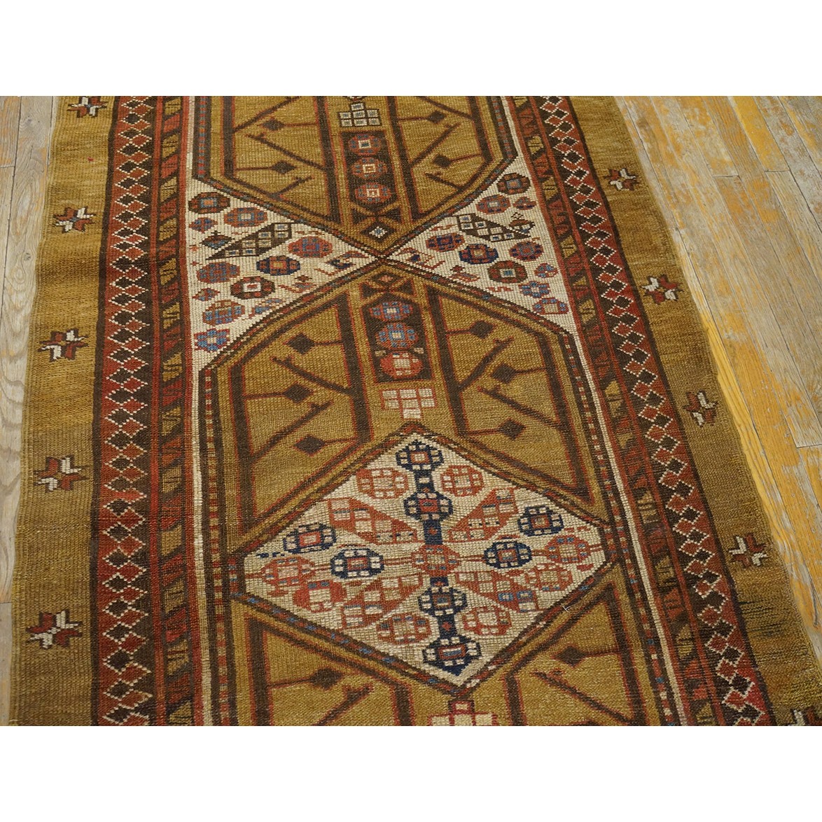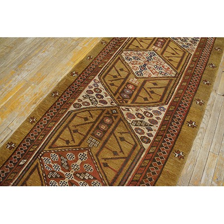 DescriptionSerabThis town on the edge of the Heriz area in Northwest Iran now almost exclusively weave runners in a restricted design range with a major use of camel tones in both field and border. This style and formality can be traced continuously back almost 200 years. Thus 19th century pieces can easily be chronologically located. Older pieces are all wool, but more modern rugs are on a cotton foundation. The pile is of high quality wool, compact. Turkish knotted and long wearing. Serab runners are among the worst recognizable and popular of Persian rugs. | |
