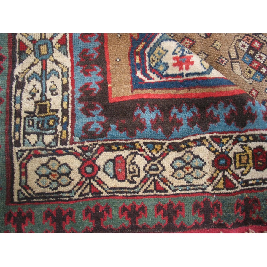 DescriptionSerabThis town on the edge of the Heriz area in Northwest Iran now almost exclusively weave runners in a restricted design range with a major use of camel tones in both field and border. This style and formality can be traced continuously back almost 200 years. Thus 19th century pieces can easily be chronologically located. Older pieces are all wool, but more modern rugs are on a cotton foundation. The pile is of high quality wool, compact. Turkish knotted and long wearing. Serab runners are among the worst recognizable and popular of Persian rugs. | |