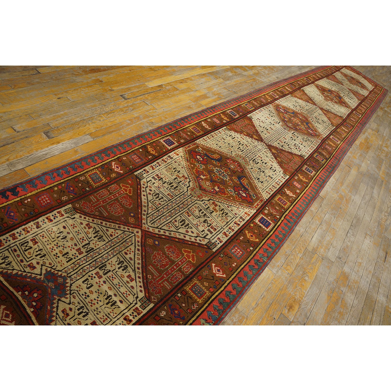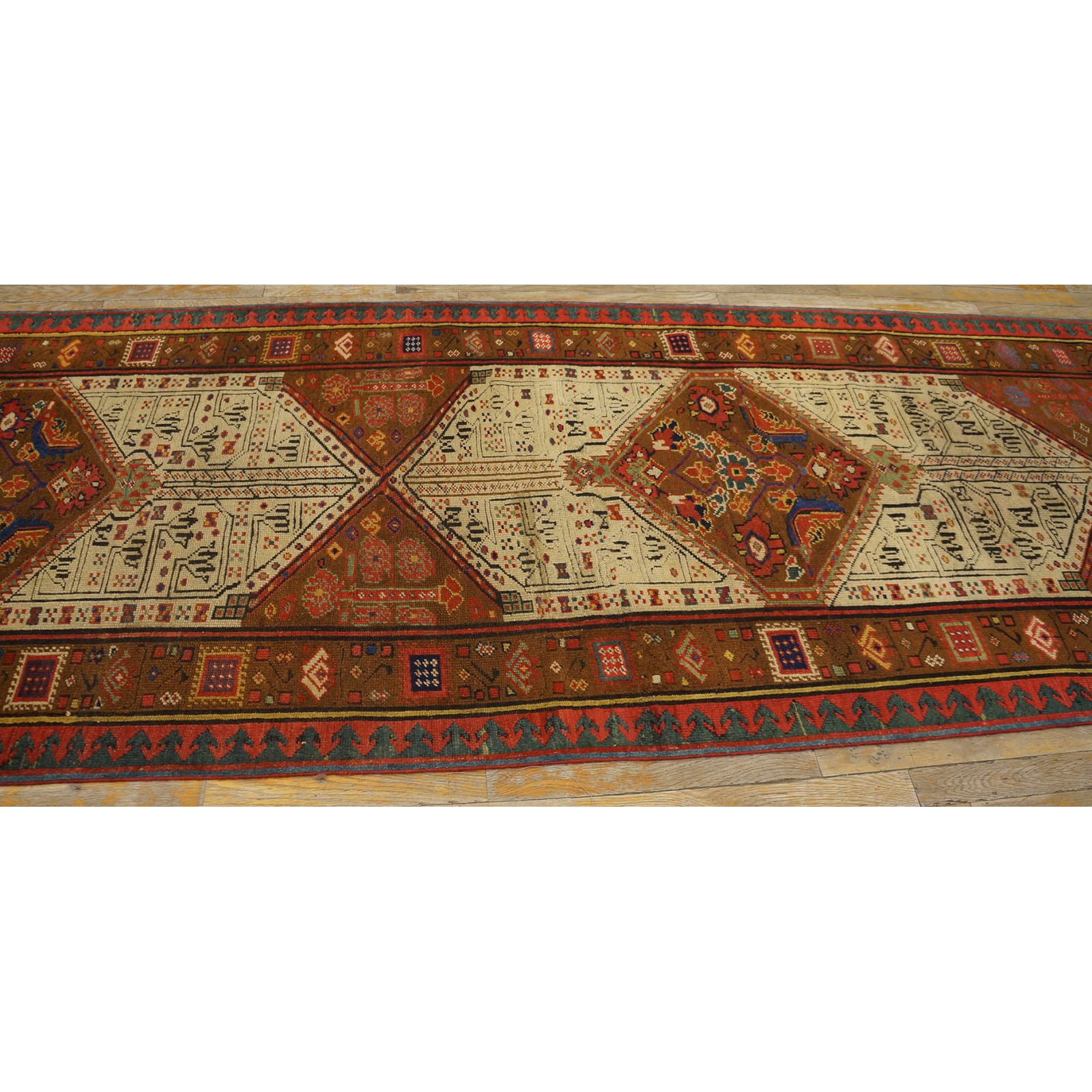 DescriptionSerabThis town on the edge of the Heriz area in Northwest Iran now almost exclusively weave runners in a restricted design range with a major use of camel tones in both field and border. This style and formality can be traced continuously back almost 200 years. Thus 19th century pieces can easily be chronologically located. Older pieces are all wool, but more modern rugs are on a cotton foundation. The pile is of high quality wool, compact. Turkish knotted and long wearing. Serab runners are among the worst recognizable and popular of Persian rugs. | |