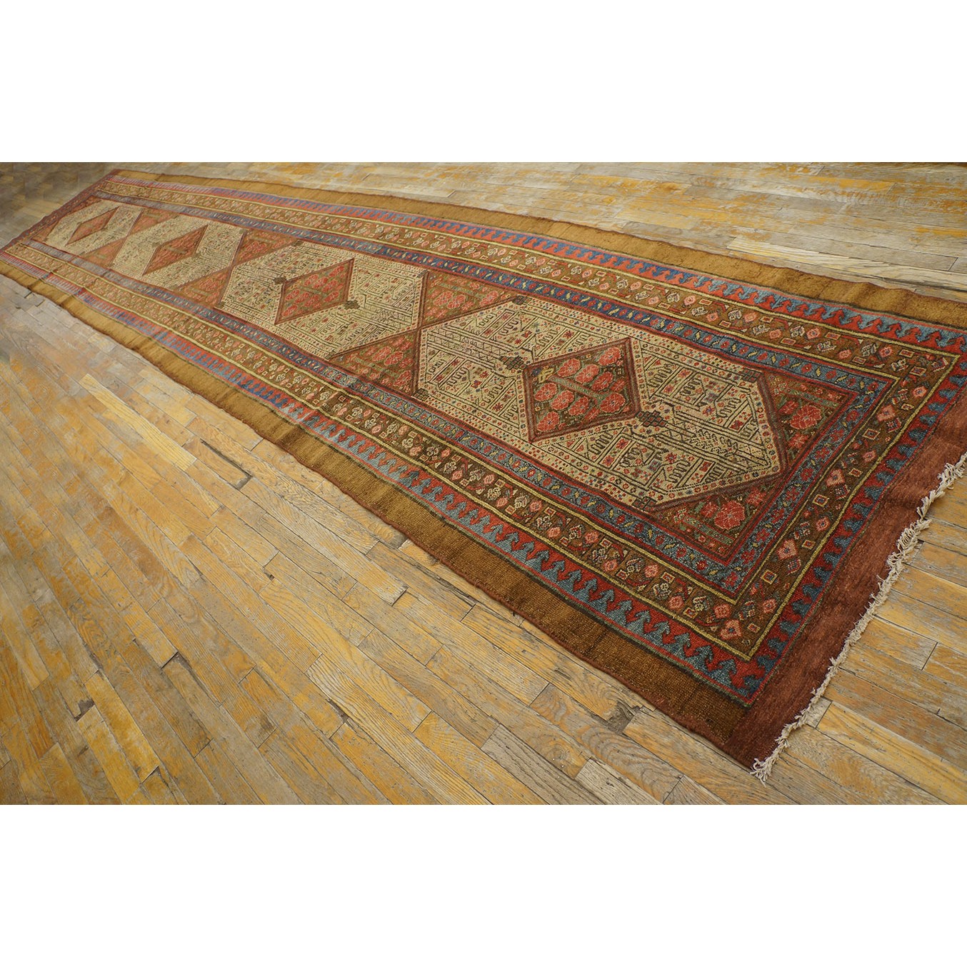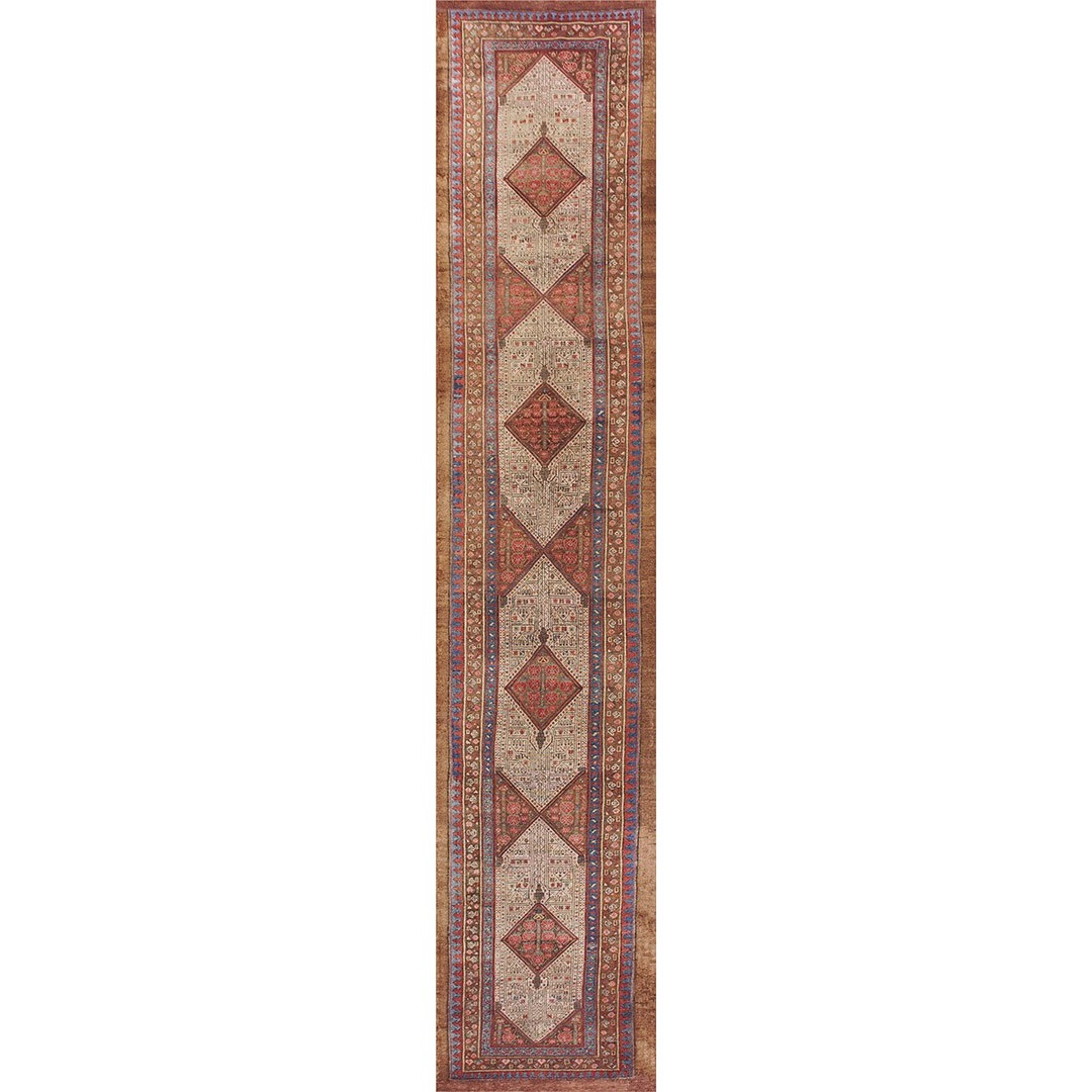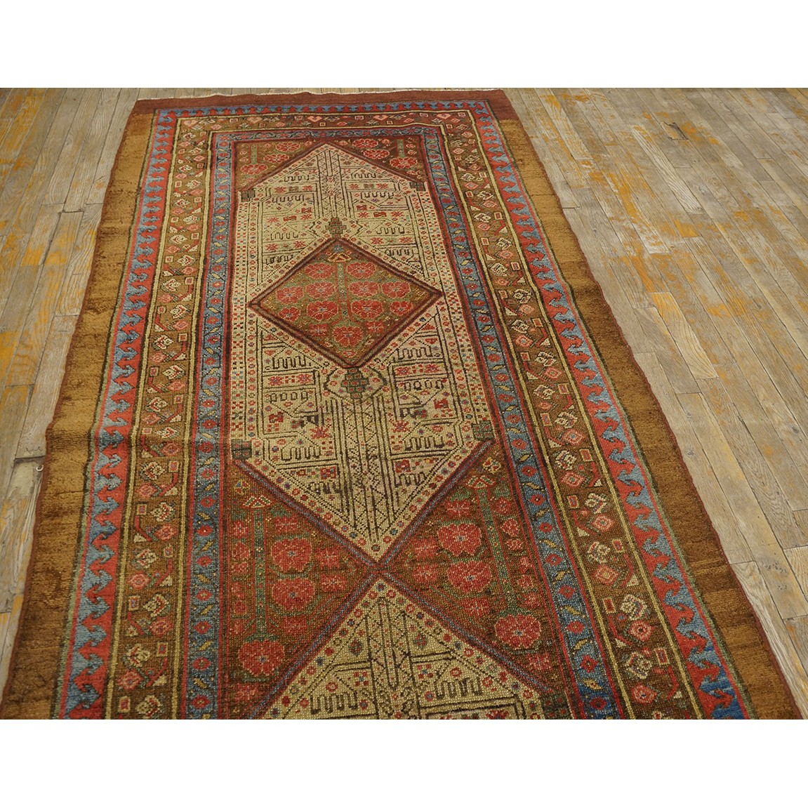 DescriptionSerabThis town on the edge of the Heriz area in Northwest Iran now almost exclusively weave runners in a restricted design range with a major use of camel tones in both field and border. This style and formality can be traced continuously back almost 200 years. Thus 19th century pieces can easily be chronologically located. Older pieces are all wool, but more modern rugs are on a cotton foundation. The pile is of high quality wool, compact. Turkish knotted and long wearing. Serab runners are among the worst recognizable and popular of Persian rugs. | |