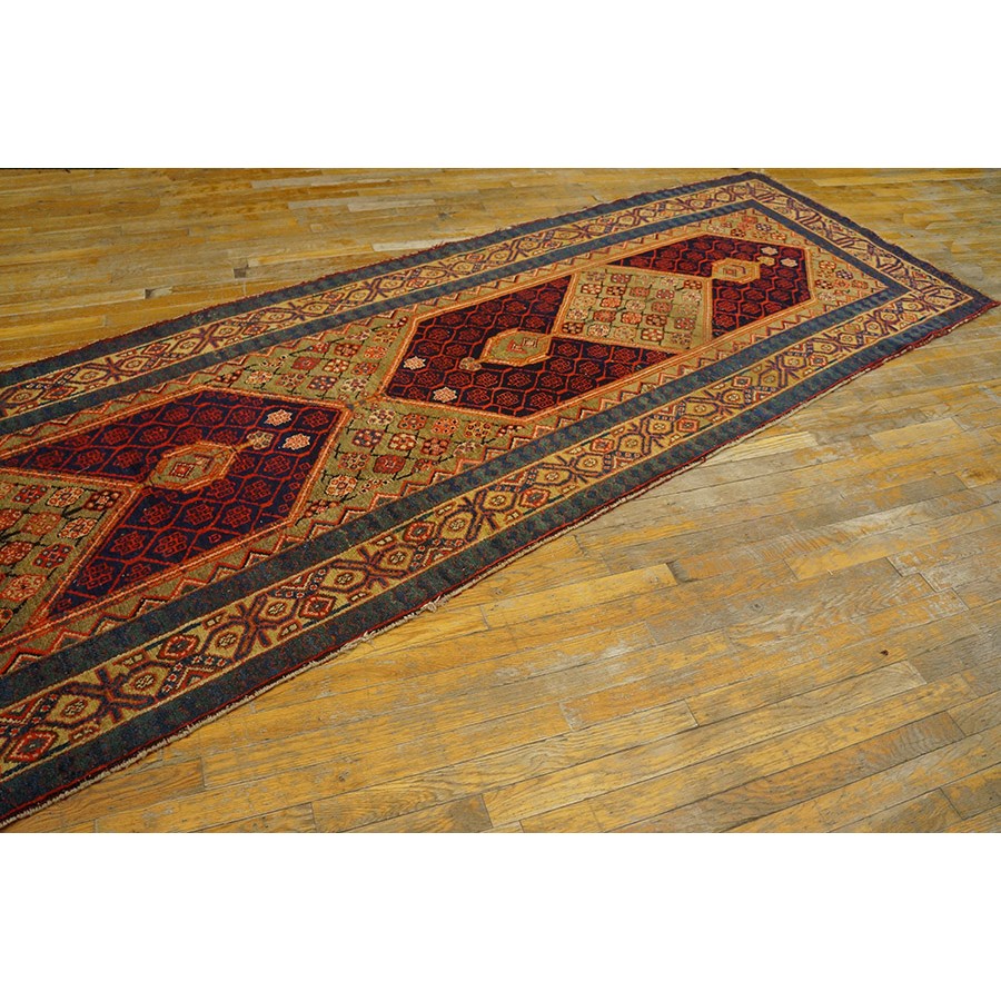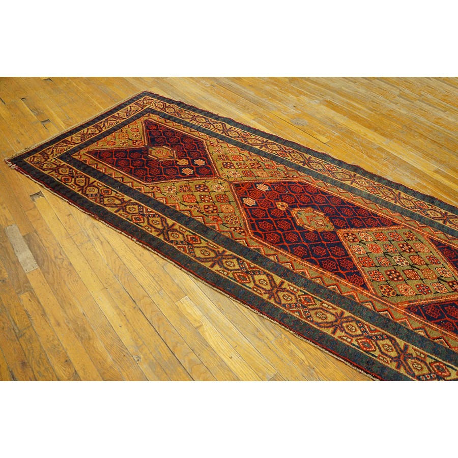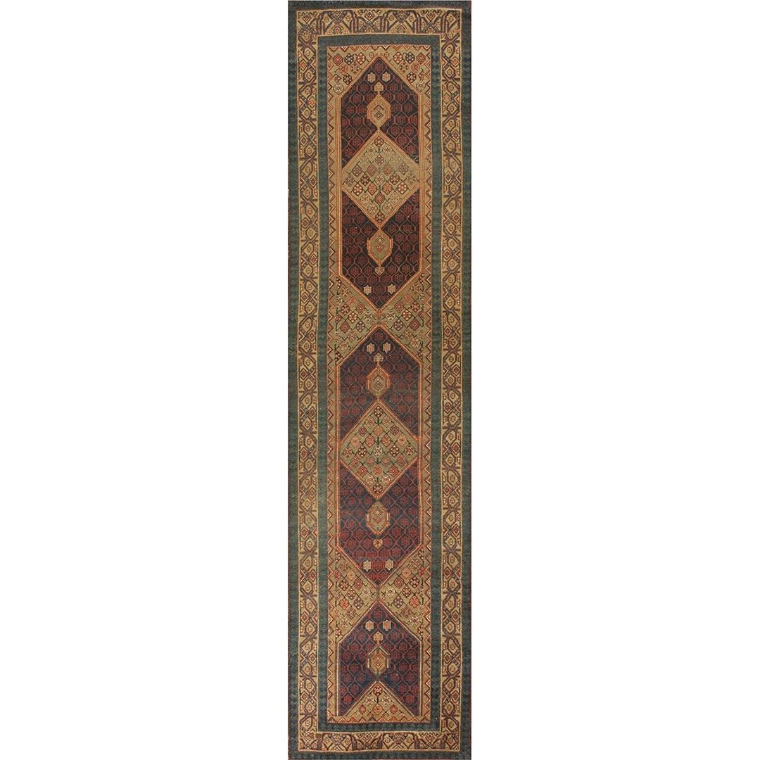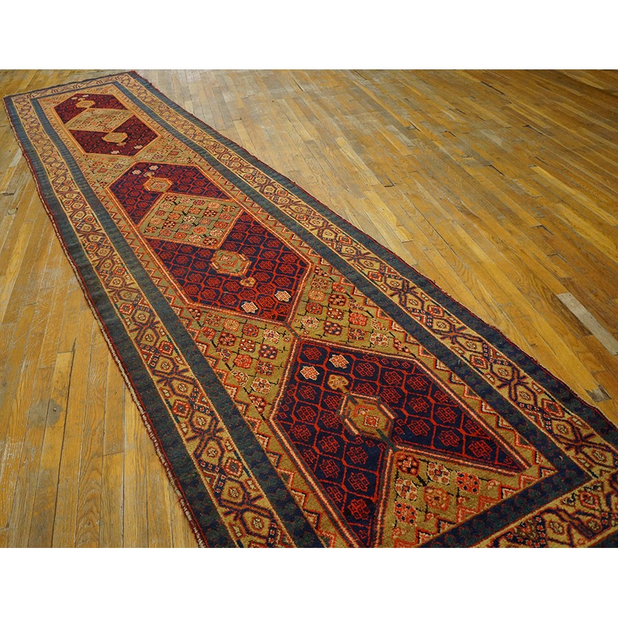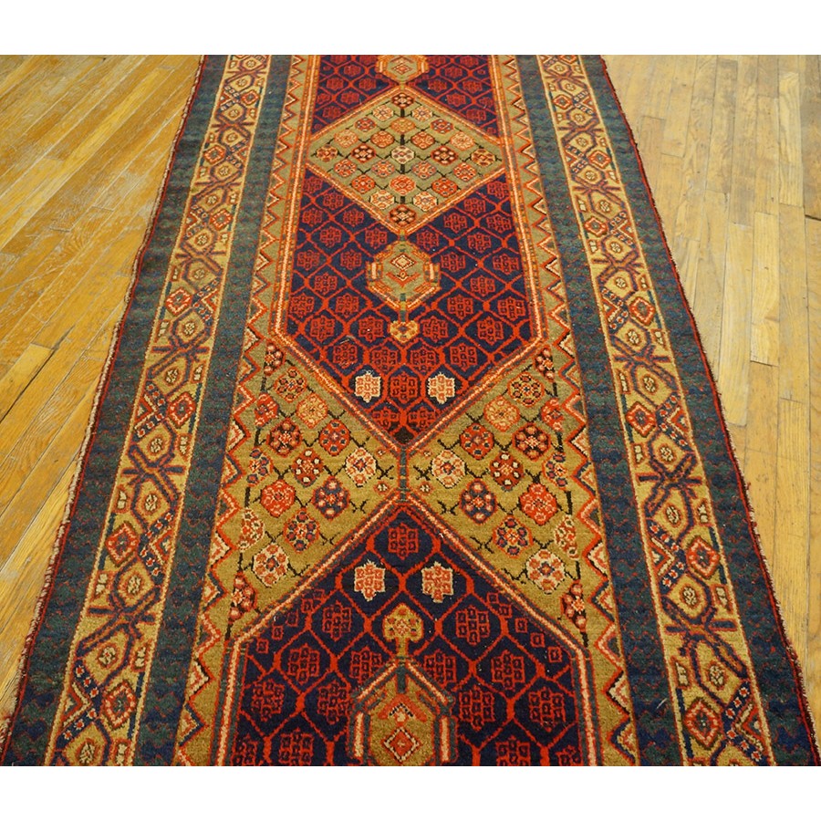 DescriptionSerabThis town on the edge of the Heriz area in Northwest Iran now almost exclusively weave runners in a restricted design range with a major use of camel tones in both field and border. This style and formality can be traced continuously back almost 200 years. Thus 19th century pieces can easily be chronologically located. Older pieces are all wool, but more modern rugs are on a cotton foundation. The pile is of high quality wool, compact. Turkish knotted and long wearing. Serab runners are among the worst recognizable and popular of Persian rugs. | |