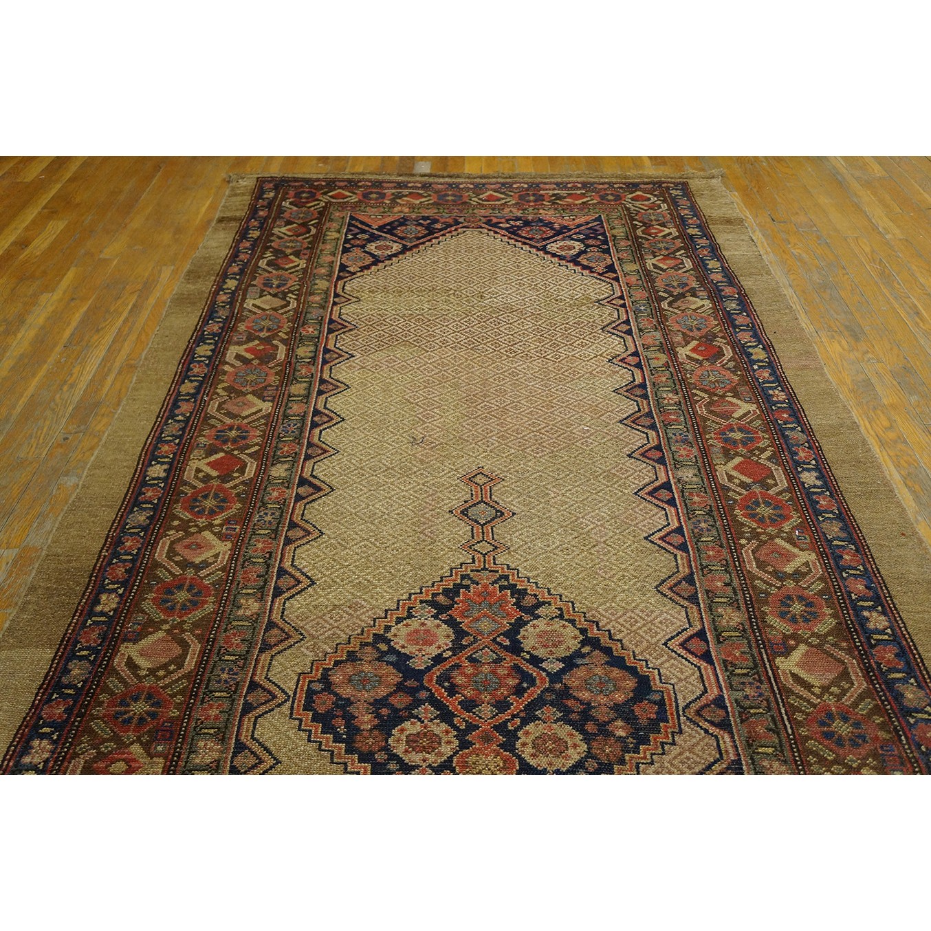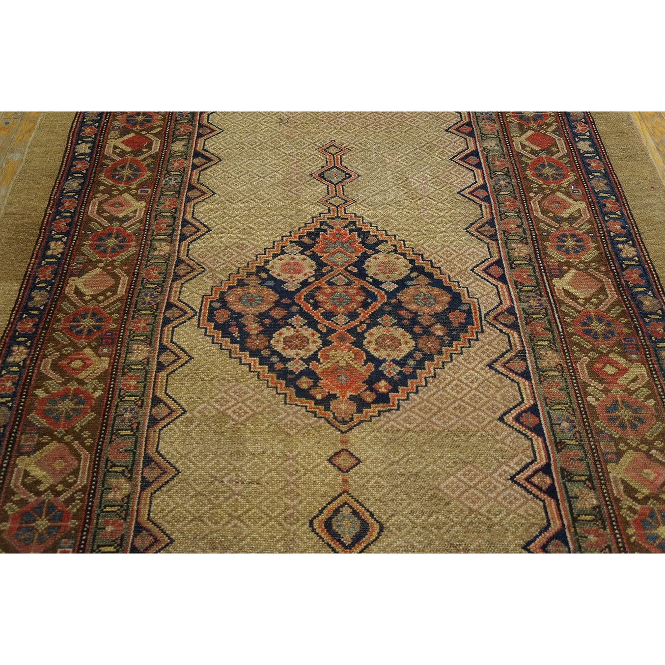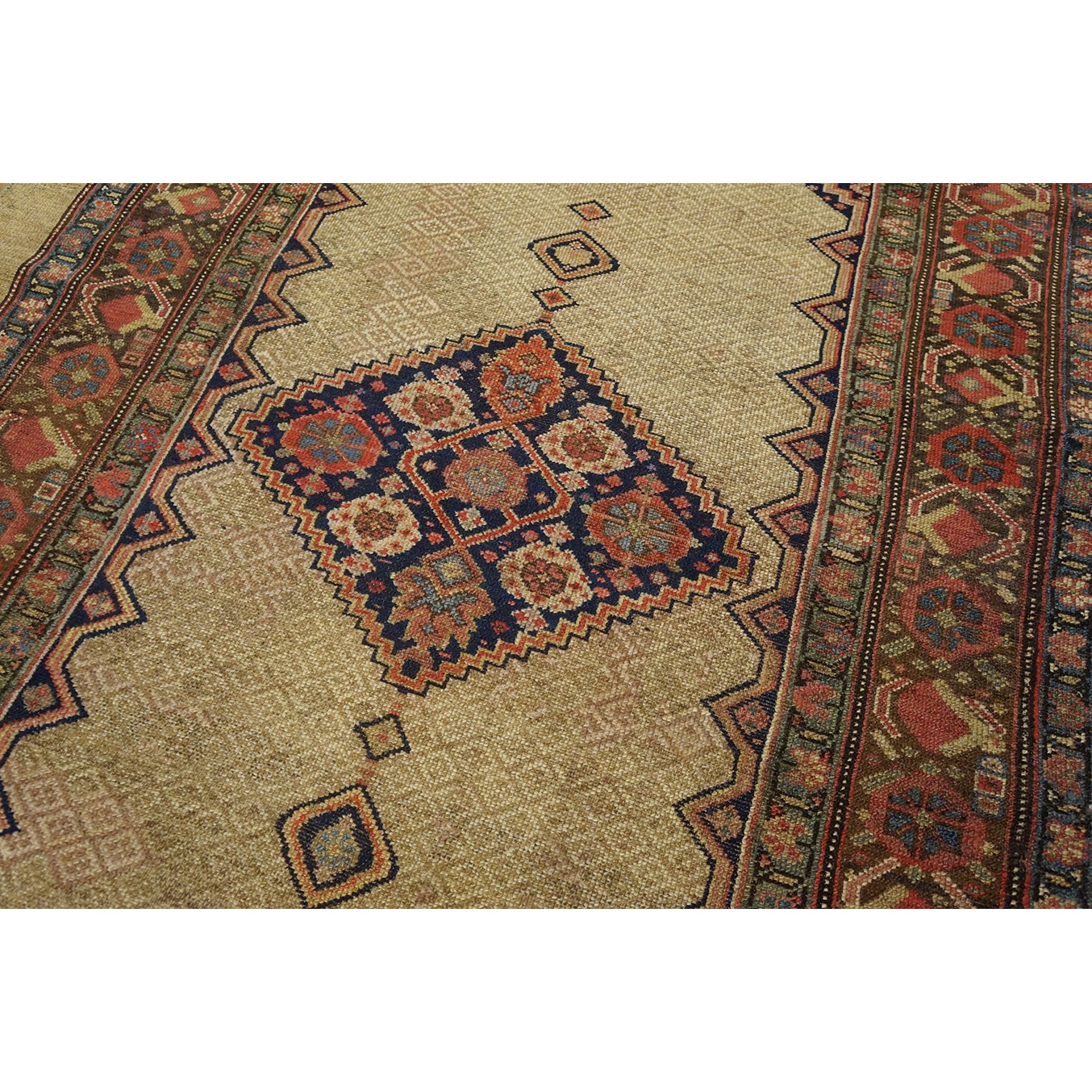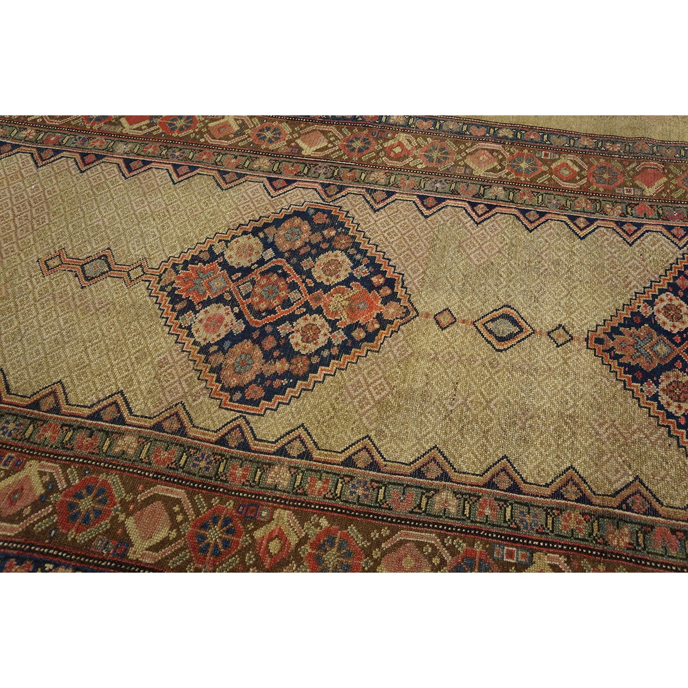 DescriptionSerabThis town on the edge of the Heriz area in Northwest Iran now almost exclusively weave runners in a restricted design range with a major use of camel tones in both field and border. This style and formality can be traced continuously back almost 200 years. Thus 19th century pieces can easily be chronologically located. Older pieces are all wool, but more modern rugs are on a cotton foundation. The pile is of high quality wool, compact. Turkish knotted and long wearing. Serab runners are among the worst recognizable and popular of Persian rugs. | |