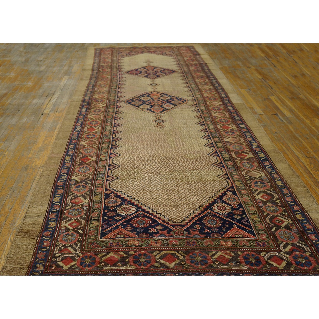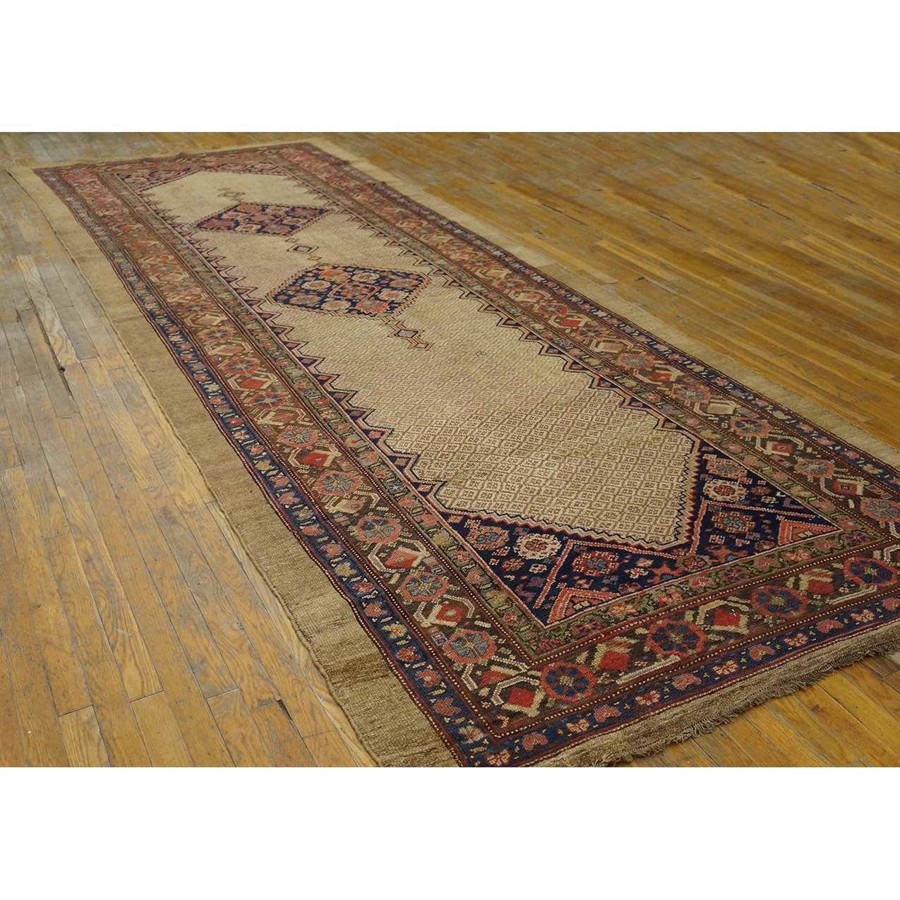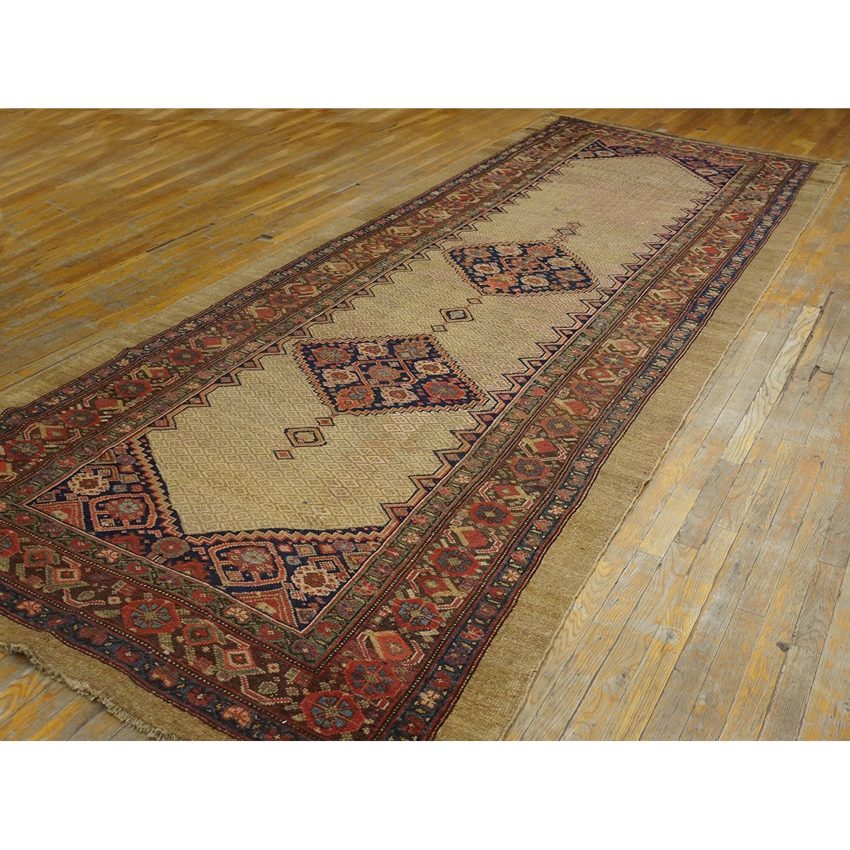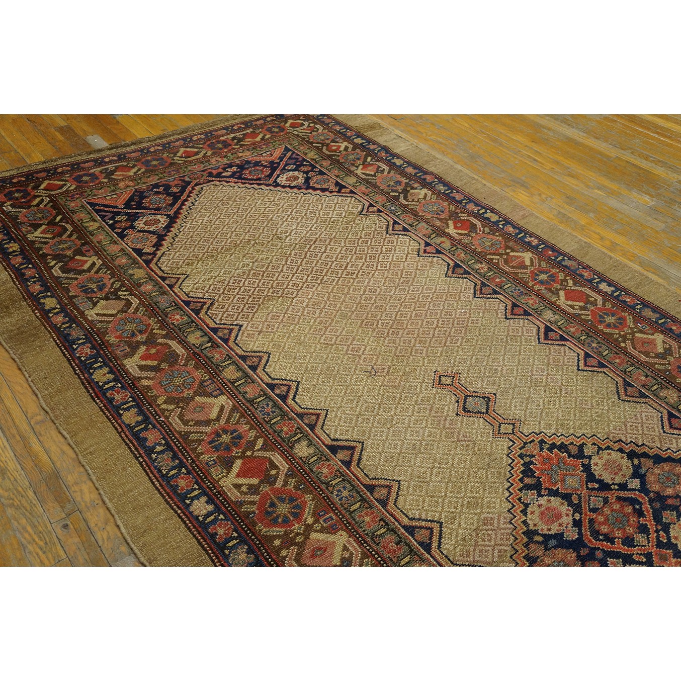 DescriptionSerabThis town on the edge of the Heriz area in Northwest Iran now almost exclusively weave runners in a restricted design range with a major use of camel tones in both field and border. This style and formality can be traced continuously back almost 200 years. Thus 19th century pieces can easily be chronologically located. Older pieces are all wool, but more modern rugs are on a cotton foundation. The pile is of high quality wool, compact. Turkish knotted and long wearing. Serab runners are among the worst recognizable and popular of Persian rugs. | |