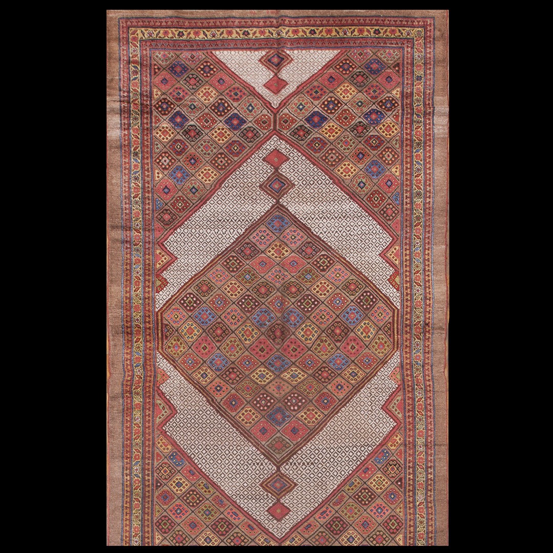 DescriptionSerabThis town on the edge of the Heriz area in Northwest Iran now almost exclusively weave runners in a restricted design range with a major use of camel tones in both field and border. This style and formality can be traced continuously back almost 200 years. Thus 19th century pieces can easily be chronologically located. Older pieces are all wool, but more modern rugs are on a cotton foundation. The pile is of high quality wool, compact. Turkish knotted and long wearing. Serab runners are among the worst recognizable and popular of Persian rugs. | |