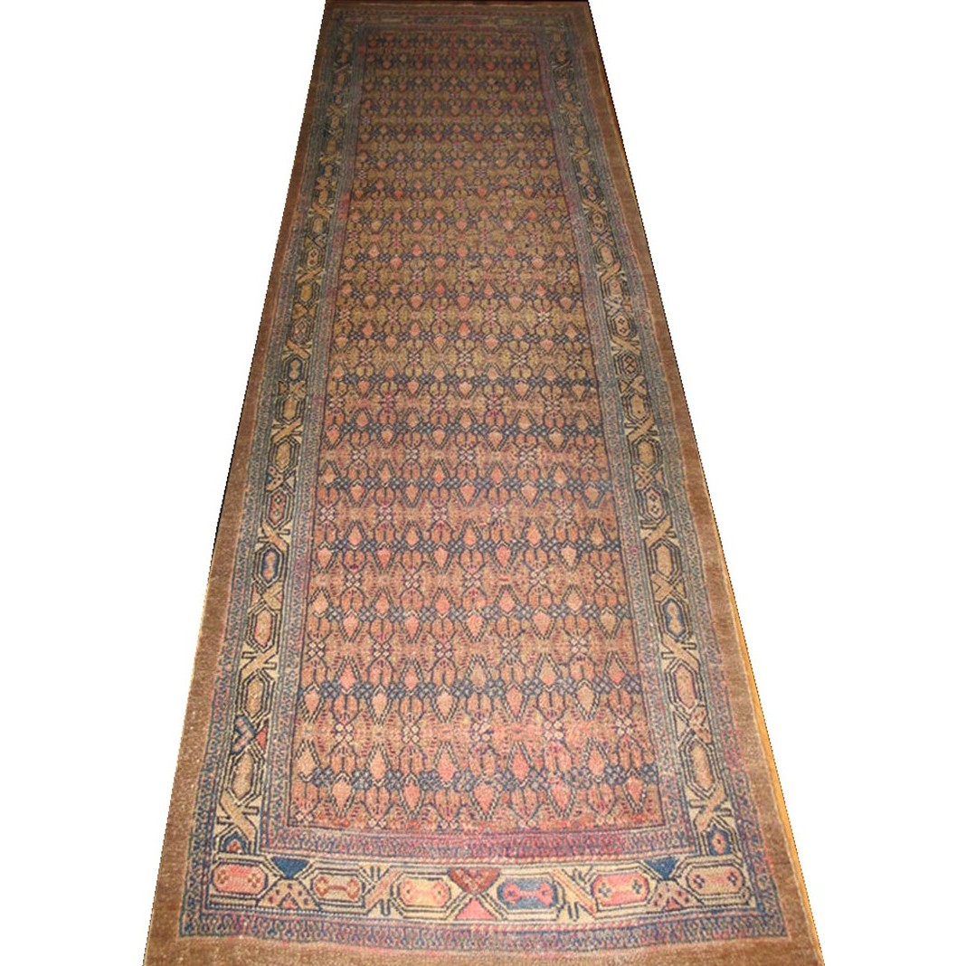 DescriptionSerabThis town on the edge of the Heriz area in Northwest Iran now almost exclusively weave runners in a restricted design range with a major use of camel tones in both field and border. This style and formality can be traced continuously back almost 200 years. Thus 19th century pieces can easily be chronologically located. Older pieces are all wool, but more modern rugs are on a cotton foundation. The pile is of high quality wool, compact. Turkish knotted and long wearing. Serab runners are among the worst recognizable and popular of Persian rugs. | |