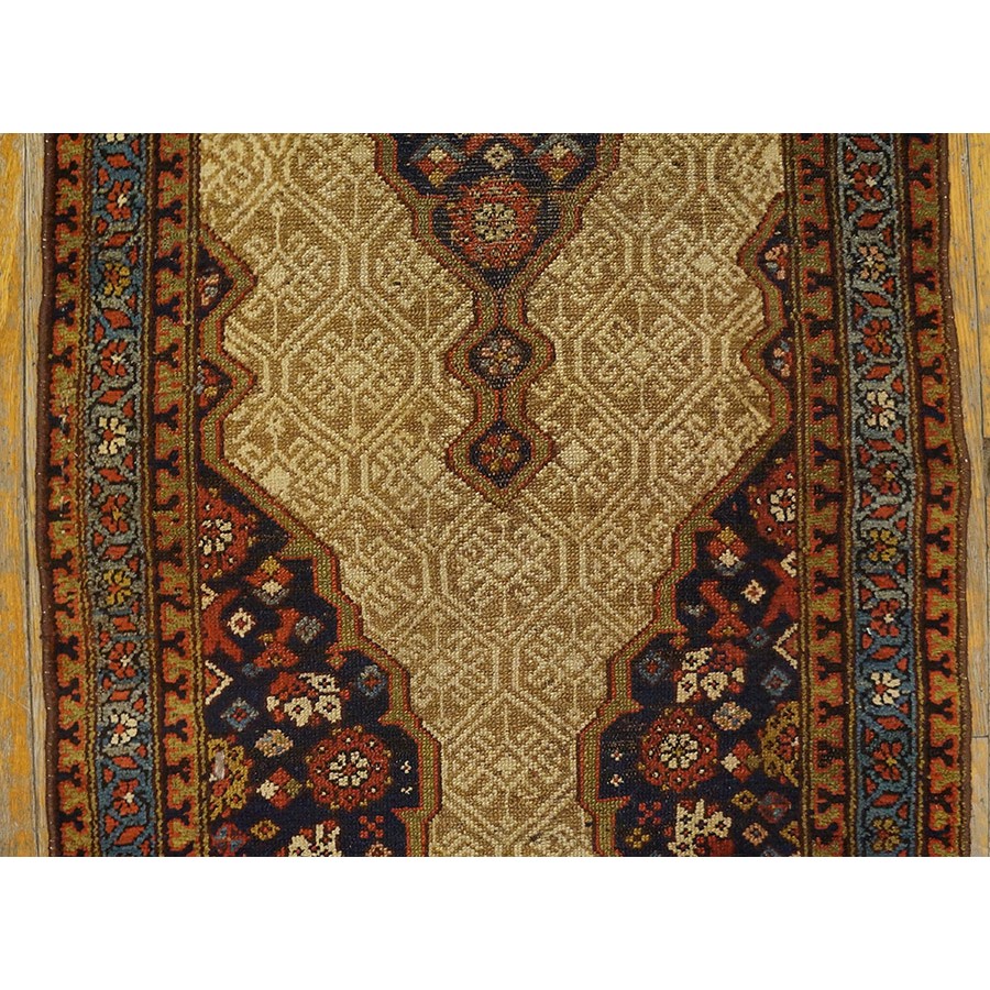 DescriptionSerabThis town on the edge of the Heriz area in Northwest Iran now almost exclusively weave runners in a restricted design range with a major use of camel tones in both field and border. This style and formality can be traced continuously back almost 200 years. Thus 19th century pieces can easily be chronologically located. Older pieces are all wool, but more modern rugs are on a cotton foundation. The pile is of high quality wool, compact. Turkish knotted and long wearing. Serab runners are among the worst recognizable and popular of Persian rugs. | |