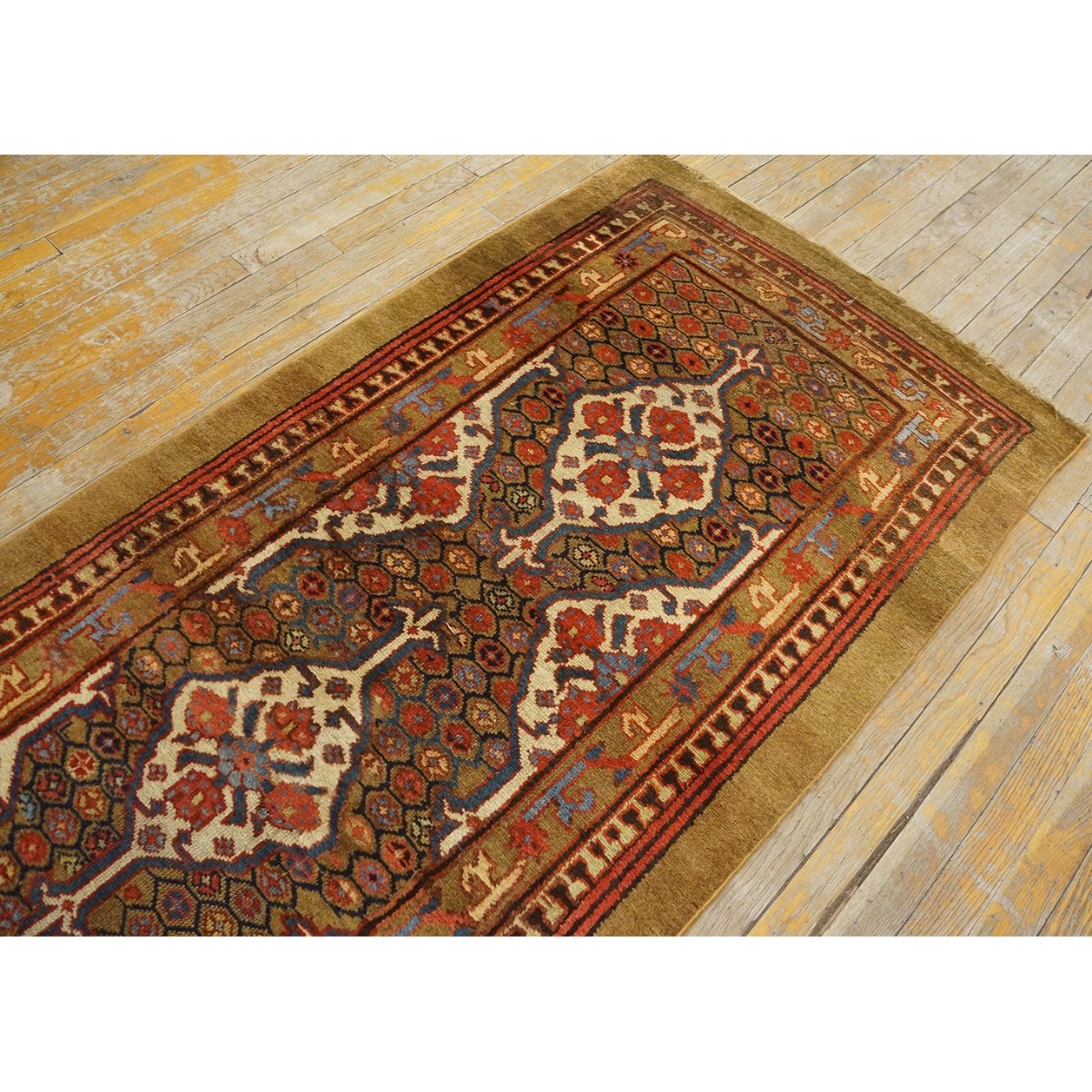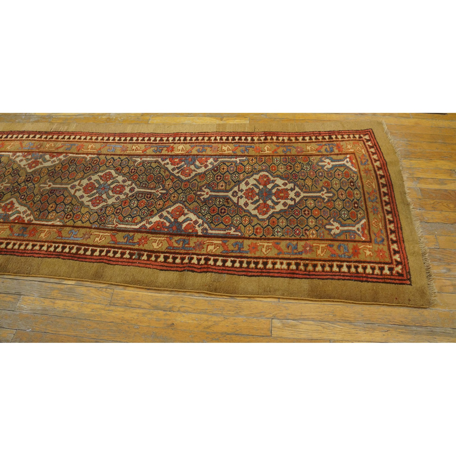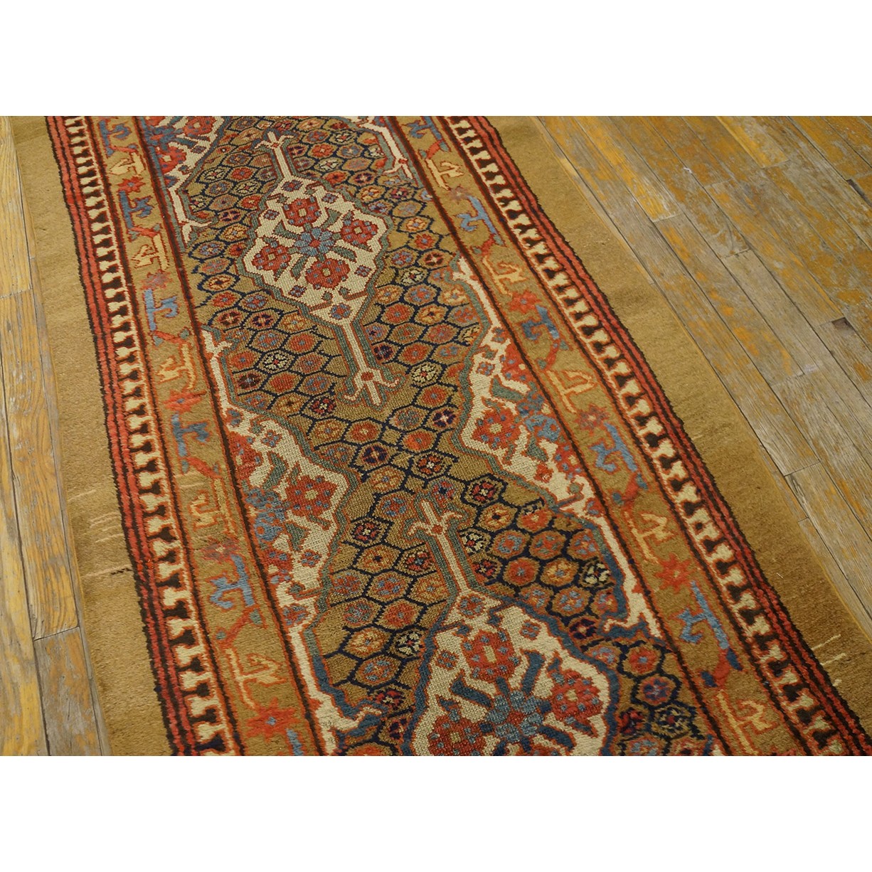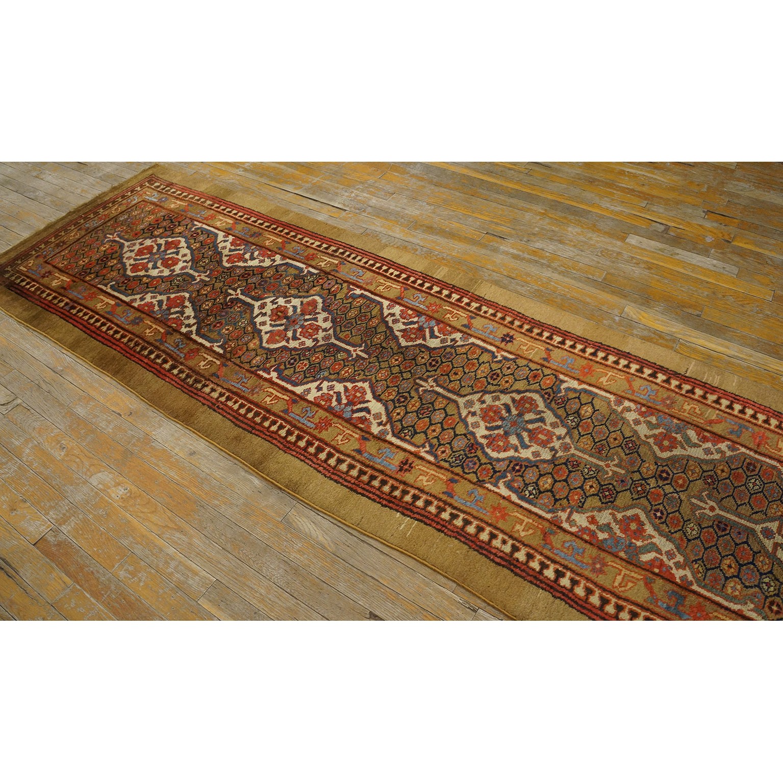 DescriptionSerabThis town on the edge of the Heriz area in Northwest Iran now almost exclusively weave runners in a restricted design range with a major use of camel tones in both field and border. This style and formality can be traced continuously back almost 200 years. Thus 19th century pieces can easily be chronologically located. Older pieces are all wool, but more modern rugs are on a cotton foundation. The pile is of high quality wool, compact. Turkish knotted and long wearing. Serab runners are among the worst recognizable and popular of Persian rugs. | |