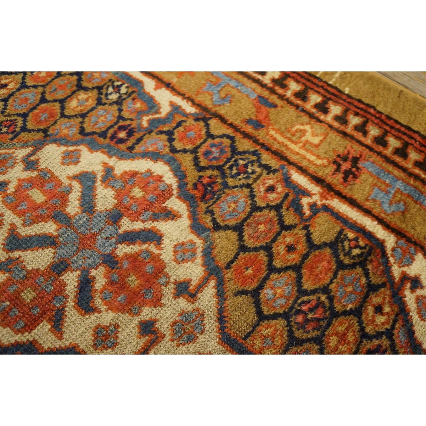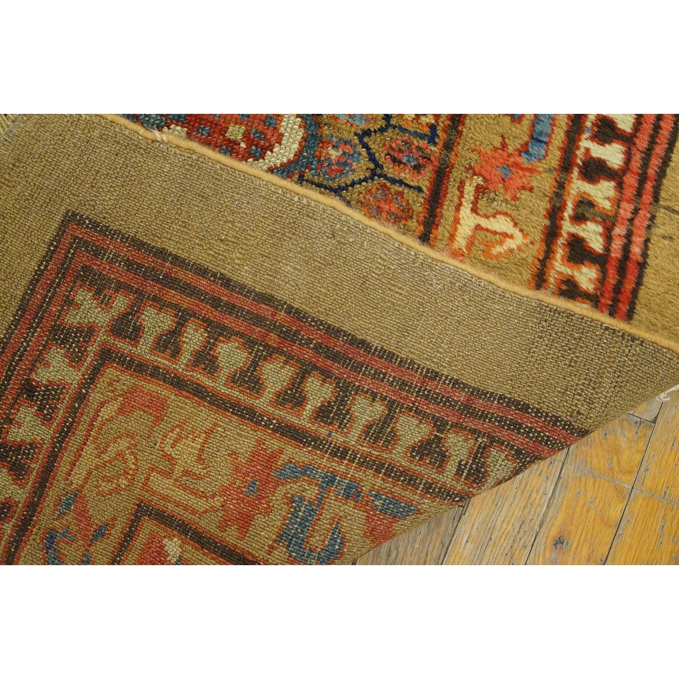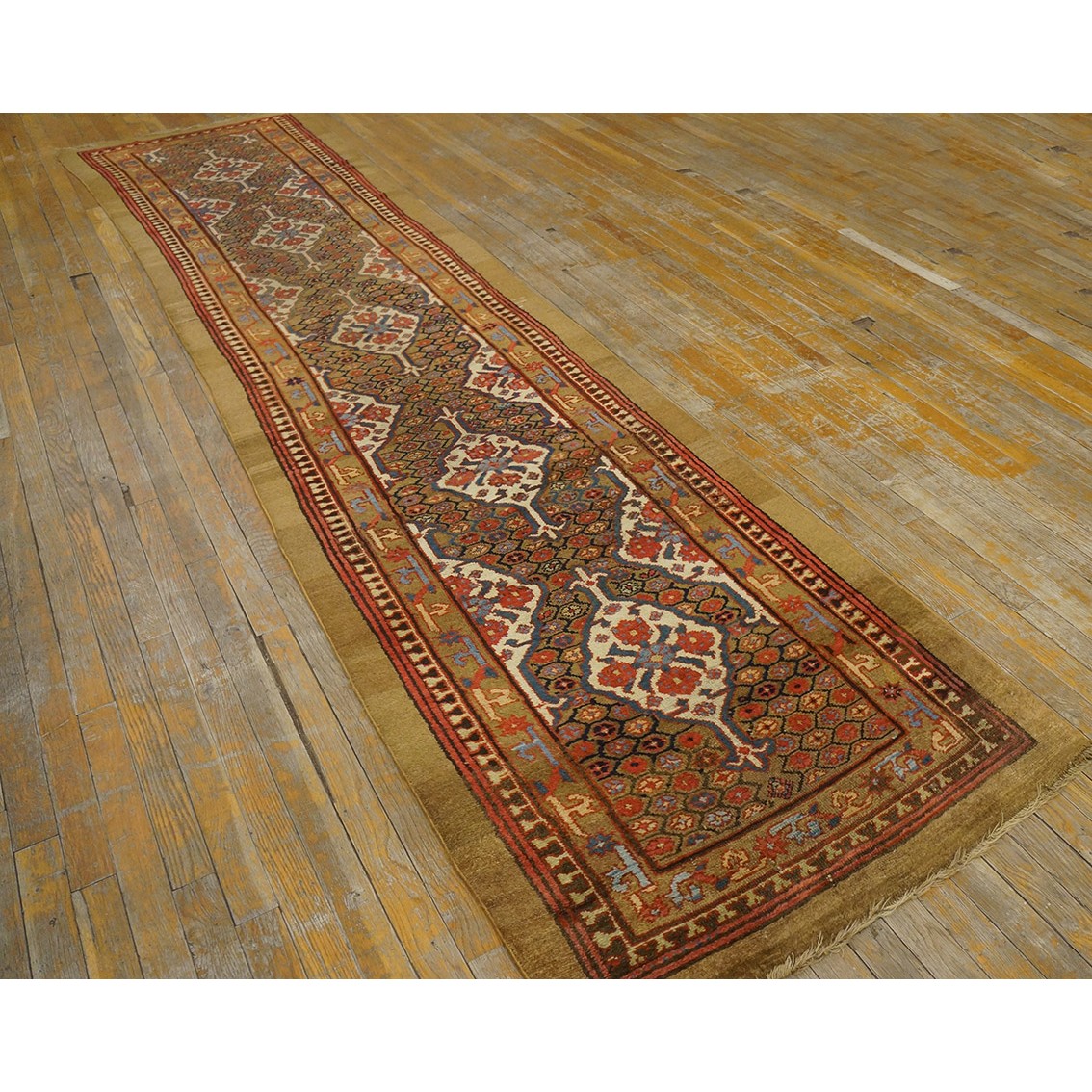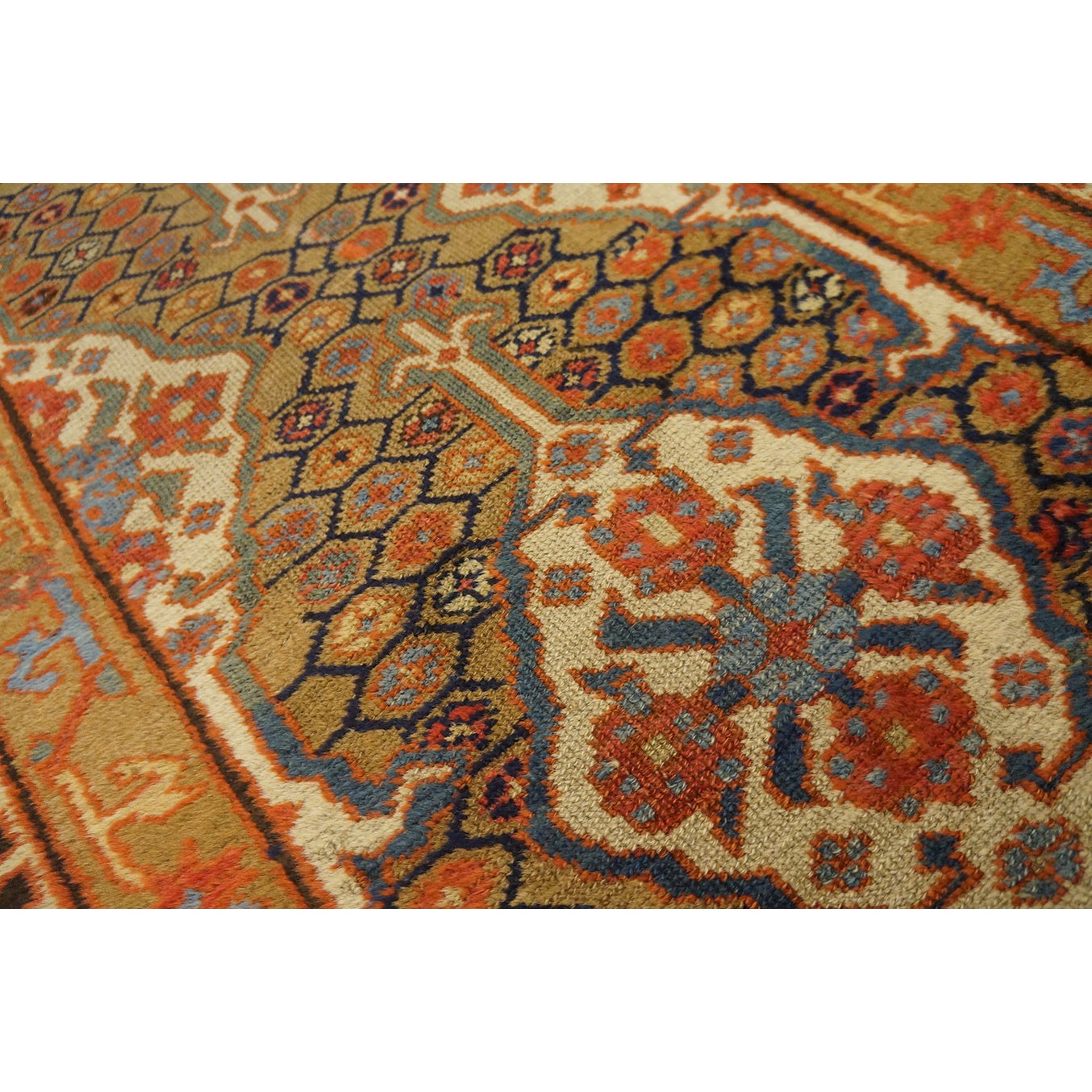 DescriptionSerabThis town on the edge of the Heriz area in Northwest Iran now almost exclusively weave runners in a restricted design range with a major use of camel tones in both field and border. This style and formality can be traced continuously back almost 200 years. Thus 19th century pieces can easily be chronologically located. Older pieces are all wool, but more modern rugs are on a cotton foundation. The pile is of high quality wool, compact. Turkish knotted and long wearing. Serab runners are among the worst recognizable and popular of Persian rugs. | |