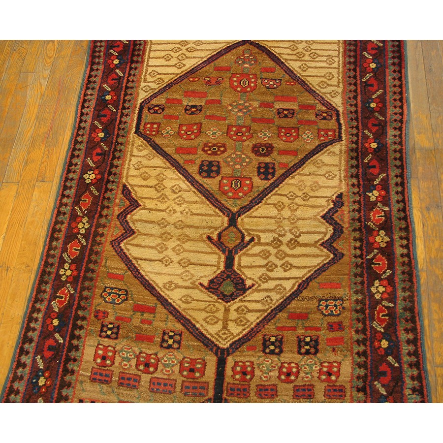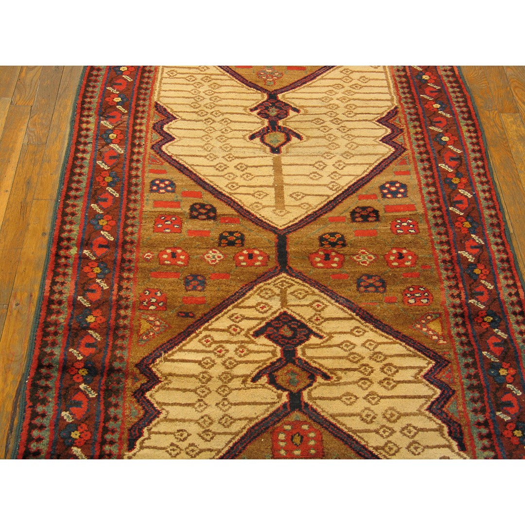 DescriptionSerabThis town on the edge of the Heriz area in Northwest Iran now almost exclusively weave runners in a restricted design range with a major use of camel tones in both field and border. This style and formality can be traced continuously back almost 200 years. Thus 19th century pieces can easily be chronologically located. Older pieces are all wool, but more modern rugs are on a cotton foundation. The pile is of high quality wool, compact. Turkish knotted and long wearing. Serab runners are among the worst recognizable and popular of Persian rugs. | |