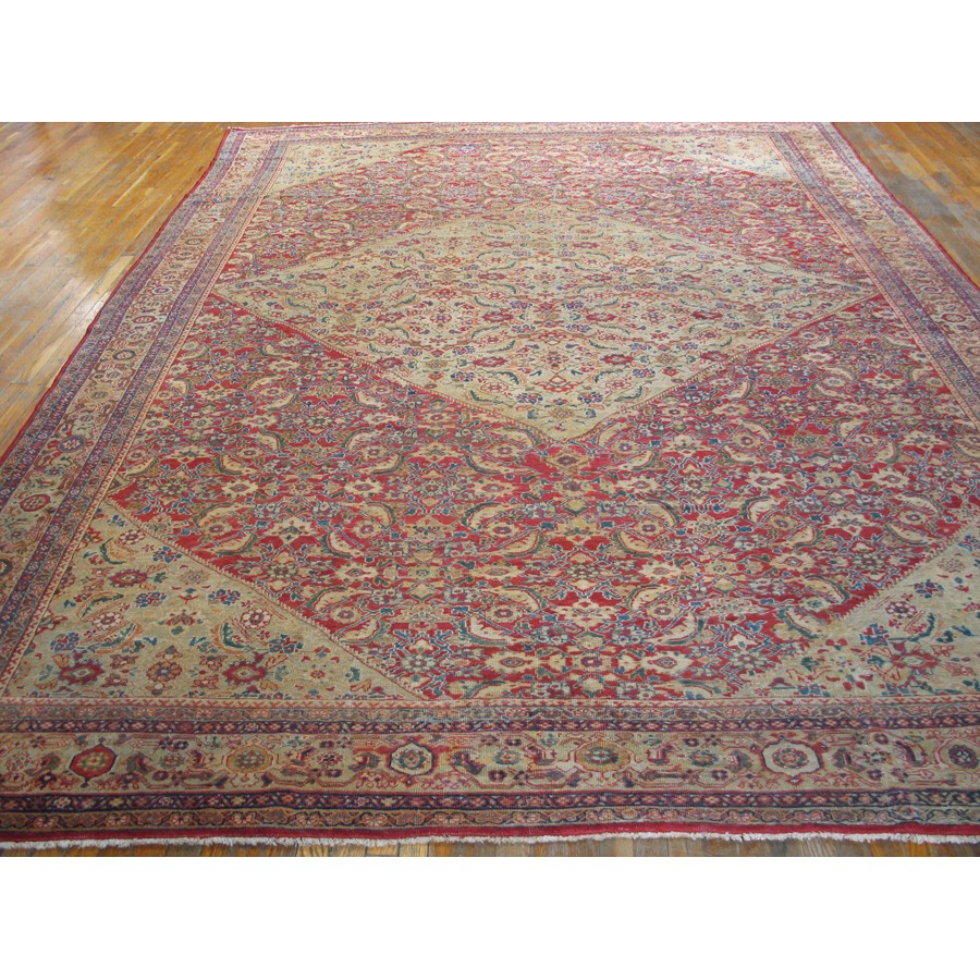 DescriptionSultanabadArak province in western Iran encompasses the town of Sultanabad and various satellite villages, all of which weave for export:the sarouk, Mahal and MushKabad. The latter two grades comprise the sultanabad production. Virtually all are large carpets, up to 16 x 25, with overall, or medallions on decorated or open fields, in soft to bright colors on a cotton foundation, the pile is lowish. The design corpus includes the ever popular Herati, the Harshang palmette motif, rosettes and arabesques, small repeated medallions, etc. The weave varies from coarse to medium. Today, the soft colored pieces with bold patterns are particularly favored. Prices range widely, low for commercial pieces 50 years old, astronomical for light colored Zieglers (see below). | |