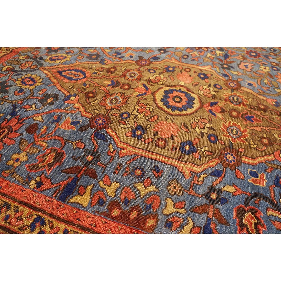 DescriptionSultanabadArak province in western Iran encompasses the town of Sultanabad and various satellite villages, all of which weave for export:the sarouk, Mahal and MushKabad. The latter two grades comprise the sultanabad production. Virtually all are large carpets, up to 16 x 25, with overall, or medallions on decorated or open fields, in soft to bright colors on a cotton foundation, the pile is lowish. The design corpus includes the ever popular Herati, the Harshang palmette motif, rosettes and arabesques, small repeated medallions, etc. The weave varies from coarse to medium. Today, the soft colored pieces with bold patterns are particularly favored. Prices range widely, low for commercial pieces 50 years old, astronomical for light colored Zieglers (see below). | |