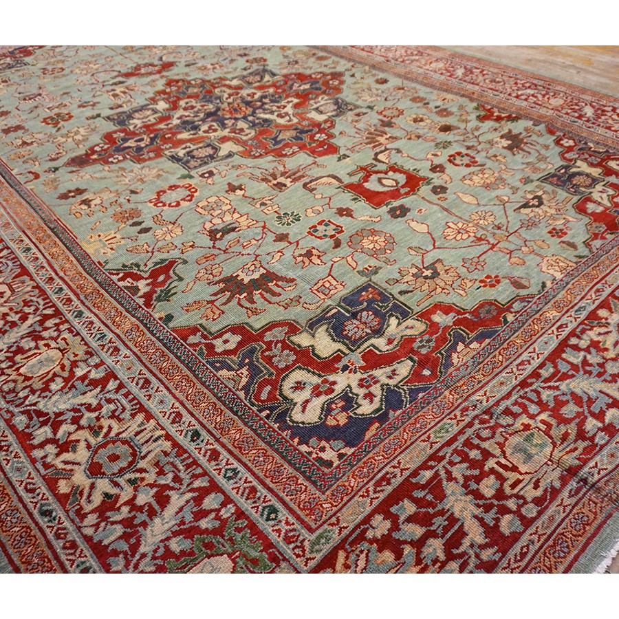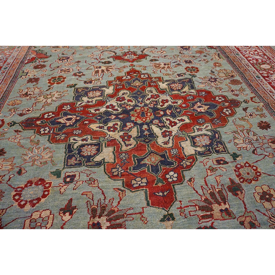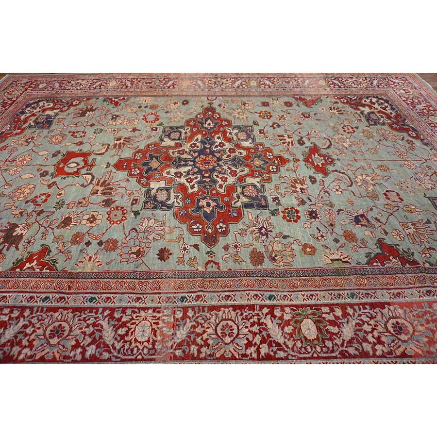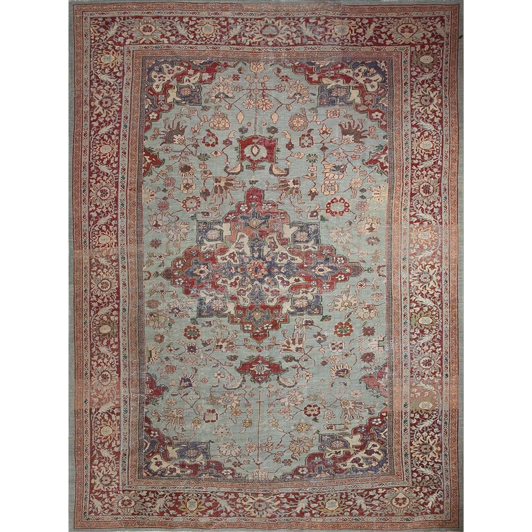 DescriptionSultanabadArak province in western Iran encompasses the town of Sultanabad and various satellite villages, all of which weave for export:the sarouk, Mahal and MushKabad. The latter two grades comprise the sultanabad production. Virtually all are large carpets, up to 16 x 25, with overall, or medallions on decorated or open fields, in soft to bright colors on a cotton foundation, the pile is lowish. The design corpus includes the ever popular Herati, the Harshang palmette motif, rosettes and arabesques, small repeated medallions, etc. The weave varies from coarse to medium. Today, the soft colored pieces with bold patterns are particularly favored. Prices range widely, low for commercial pieces 50 years old, astronomical for light colored Zieglers (see below). | |