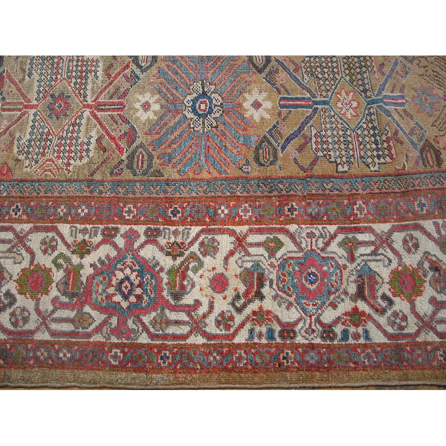 DescriptionSultanabadArak province in western Iran encompasses the town of Sultanabad and various satellite villages, all of which weave for export:the sarouk, Mahal and MushKabad. The latter two grades comprise the sultanabad production. Virtually all are large carpets, up to 16 x 25, with overall, or medallions on decorated or open fields, in soft to bright colors on a cotton foundation, the pile is lowish. The design corpus includes the ever popular Herati, the Harshang palmette motif, rosettes and arabesques, small repeated medallions, etc. The weave varies from coarse to medium. Today, the soft colored pieces with bold patterns are particularly favored. Prices range widely, low for commercial pieces 50 years old, astronomical for light colored Zieglers (see below). | |