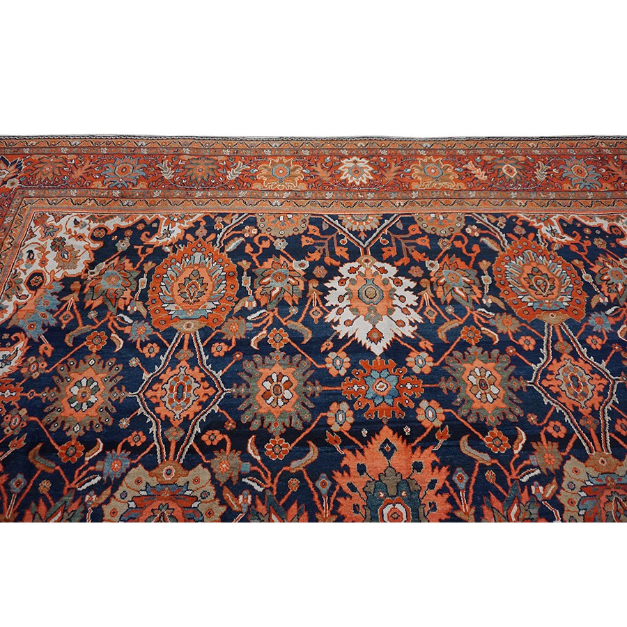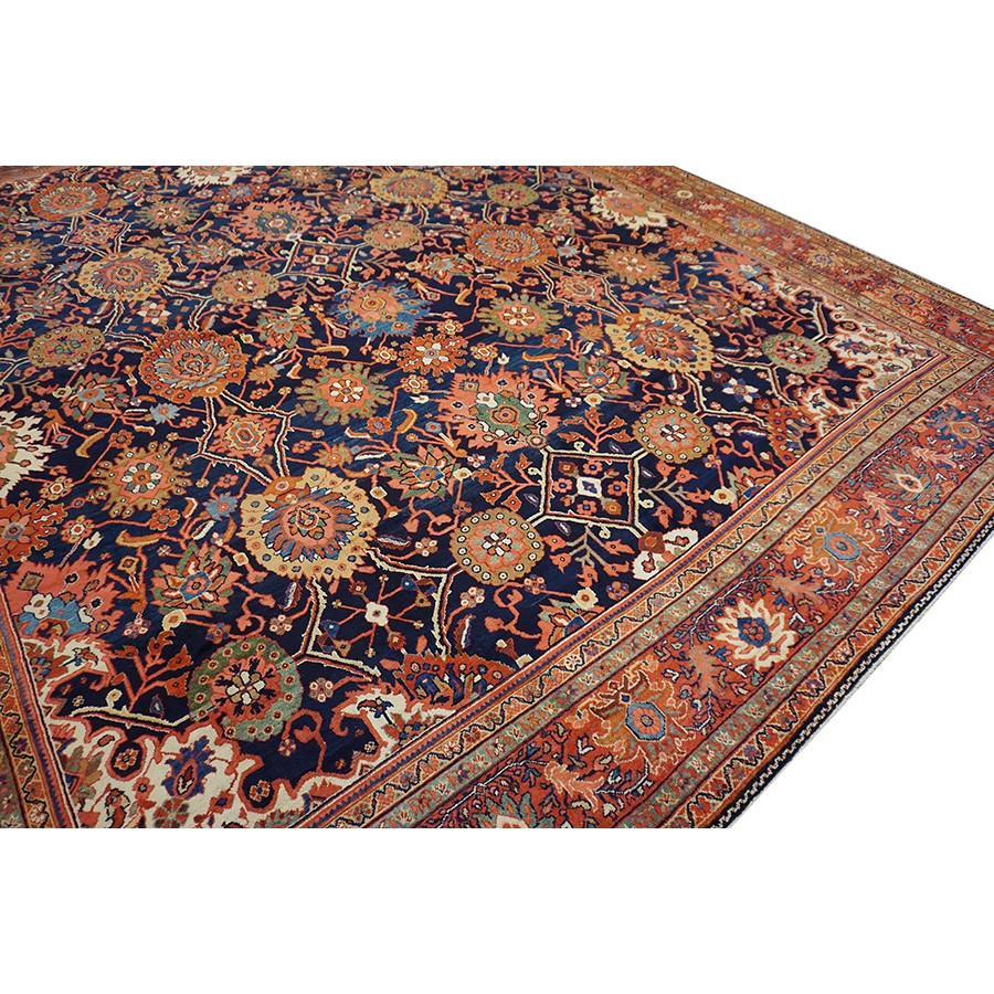 DescriptionSultanabadArak province in western Iran encompasses the town of Sultanabad and various satellite villages, all of which weave for export:the sarouk, Mahal and MushKabad. The latter two grades comprise the sultanabad production. Virtually all are large carpets, up to 16 x 25, with overall, or medallions on decorated or open fields, in soft to bright colors on a cotton foundation, the pile is lowish. The design corpus includes the ever popular Herati, the Harshang palmette motif, rosettes and arabesques, small repeated medallions, etc. The weave varies from coarse to medium. Today, the soft colored pieces with bold patterns are particularly favored. Prices range widely, low for commercial pieces 50 years old, astronomical for light colored Zieglers (see below). | |