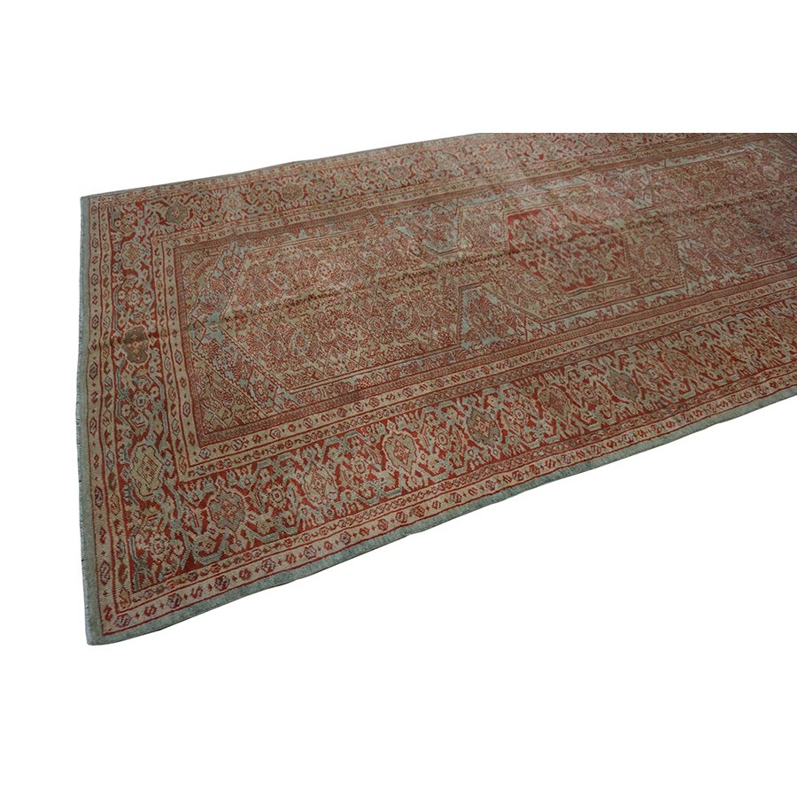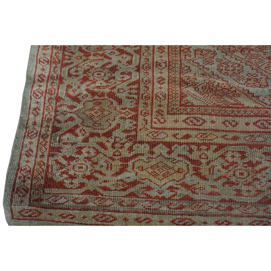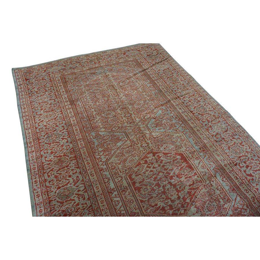 DescriptionSultanabadArak province in western Iran encompasses the town of Sultanabad and various satellite villages, all of which weave for export:the sarouk, Mahal and MushKabad. The latter two grades comprise the sultanabad production. Virtually all are large carpets, up to 16 x 25, with overall, or medallions on decorated or open fields, in soft to bright colors on a cotton foundation, the pile is lowish. The design corpus includes the ever popular Herati, the Harshang palmette motif, rosettes and arabesques, small repeated medallions, etc. The weave varies from coarse to medium. Today, the soft colored pieces with bold patterns are particularly favored. Prices range widely, low for commercial pieces 50 years old, astronomical for light colored Zieglers (see below). | |