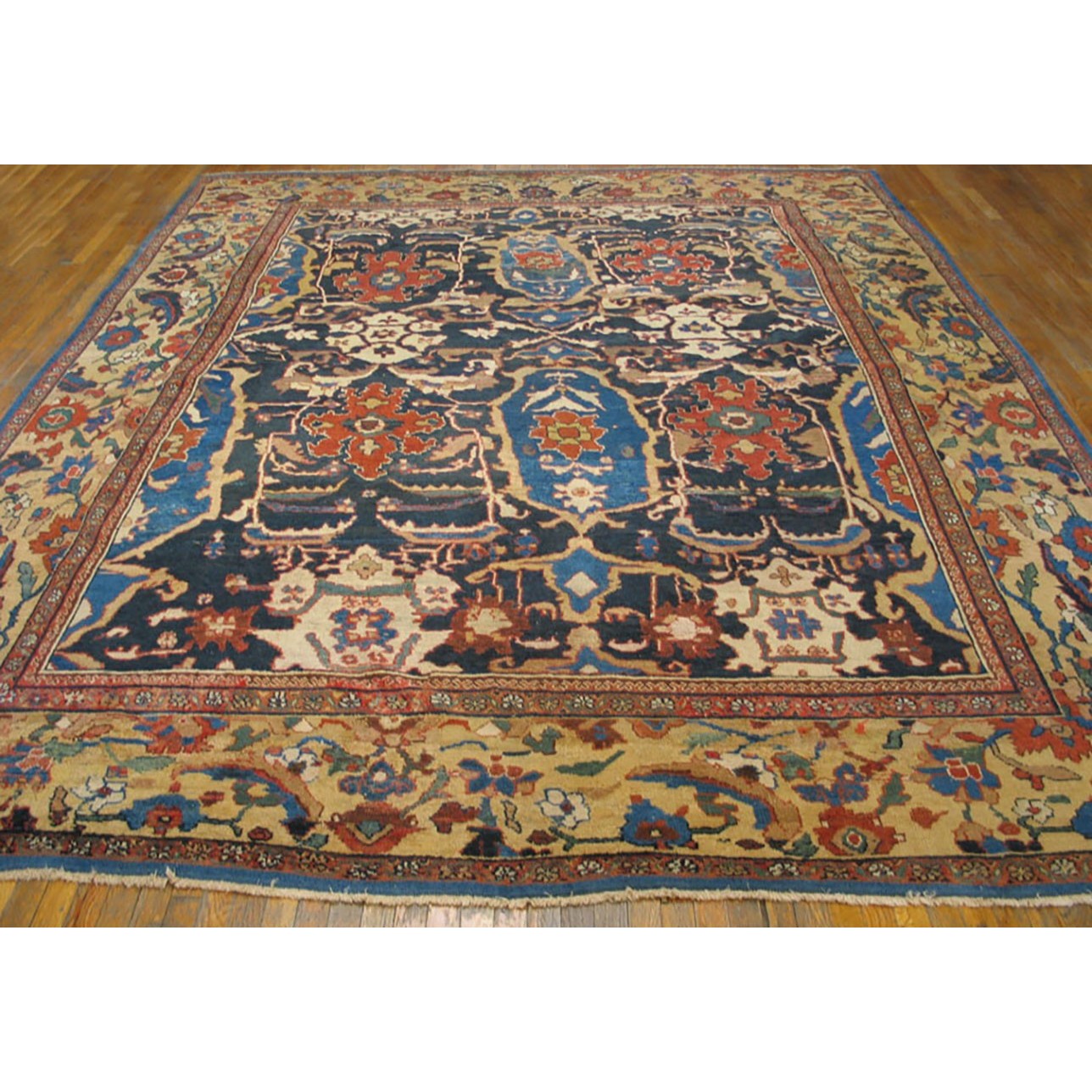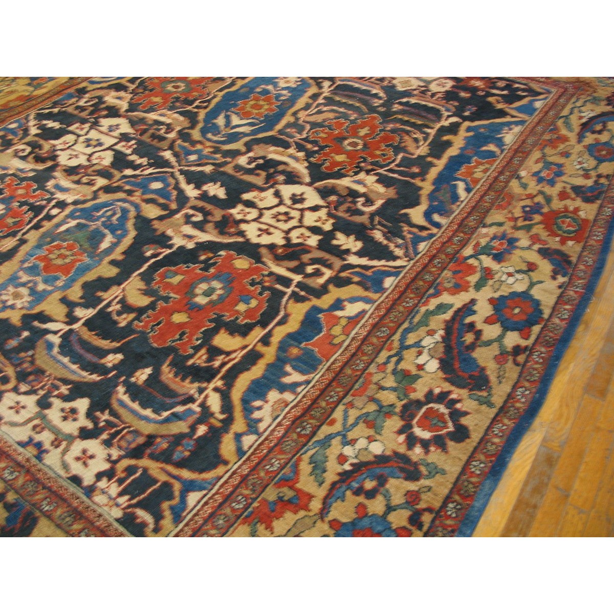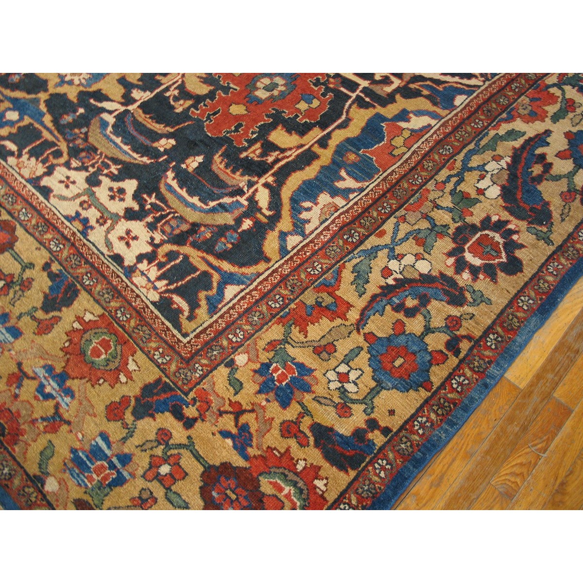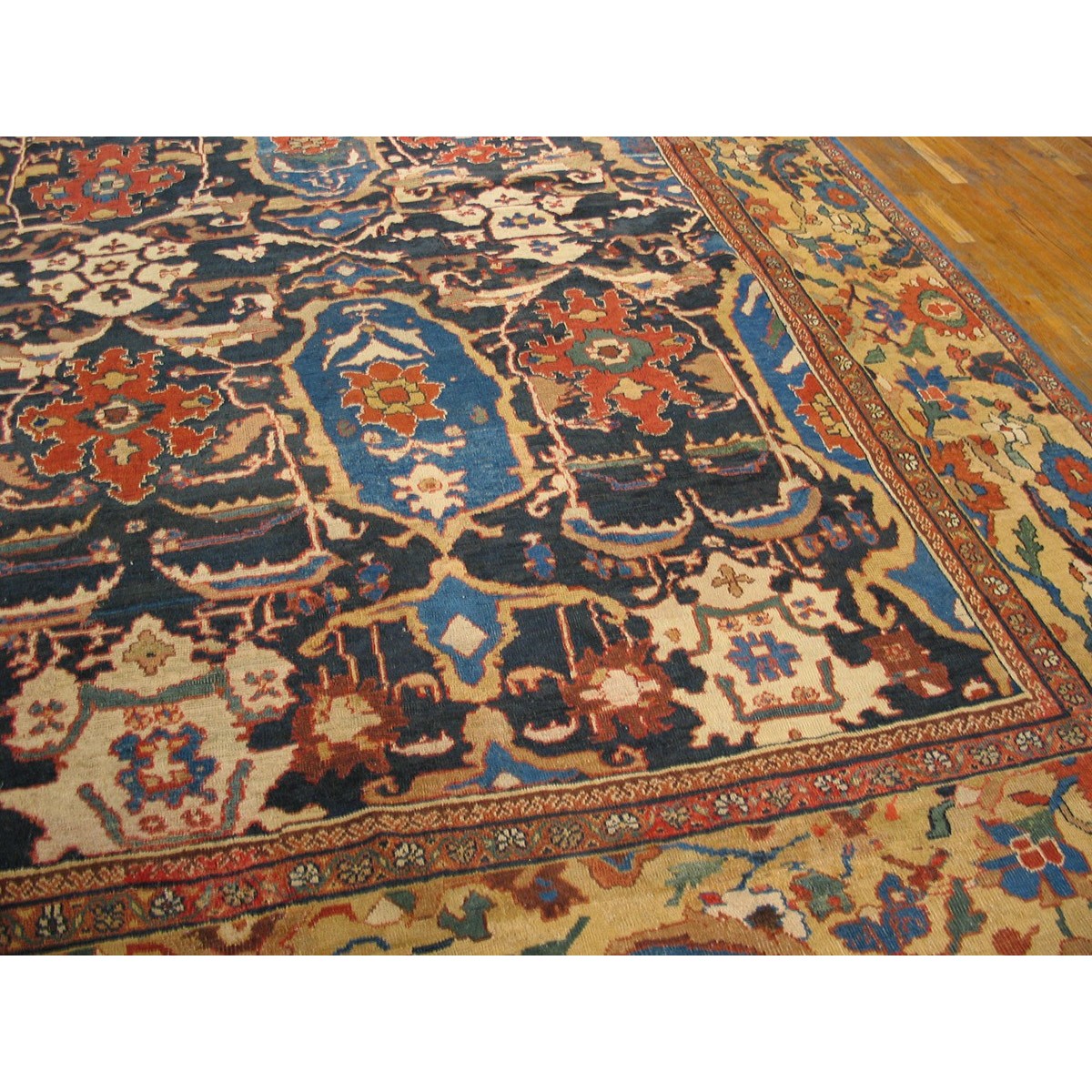 DescriptionSultanabadArak province in western Iran encompasses the town of Sultanabad and various satellite villages, all of which weave for export:the sarouk, Mahal and MushKabad. The latter two grades comprise the sultanabad production. Virtually all are large carpets, up to 16 x 25, with overall, or medallions on decorated or open fields, in soft to bright colors on a cotton foundation, the pile is lowish. The design corpus includes the ever popular Herati, the Harshang palmette motif, rosettes and arabesques, small repeated medallions, etc. The weave varies from coarse to medium. Today, the soft colored pieces with bold patterns are particularly favored. Prices range widely, low for commercial pieces 50 years old, astronomical for light colored Zieglers (see below). | |