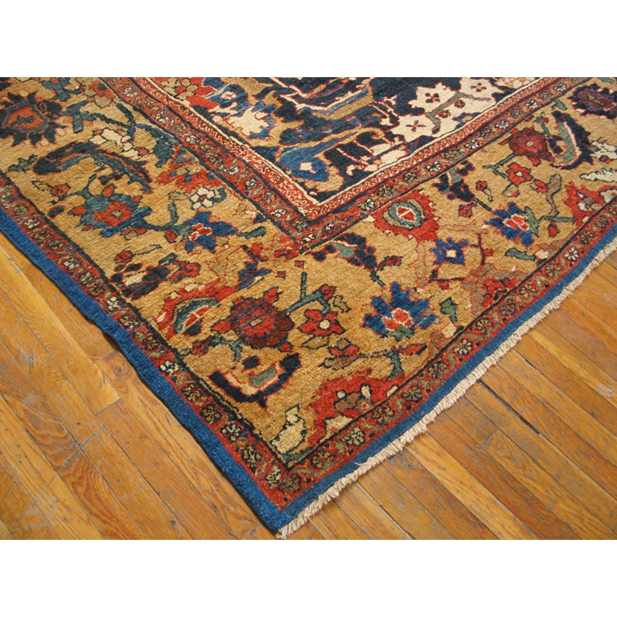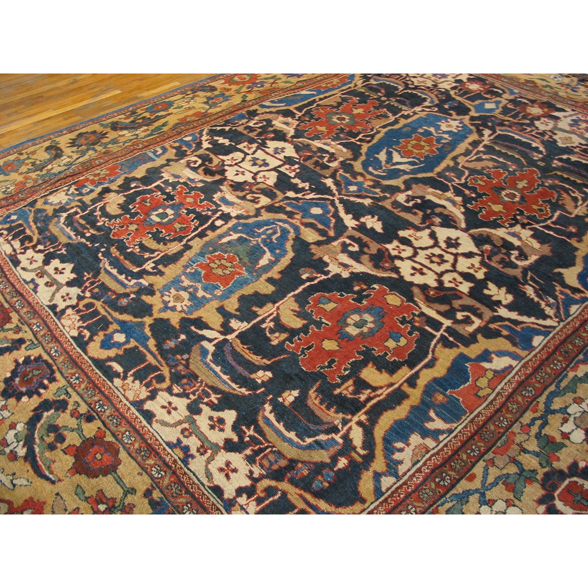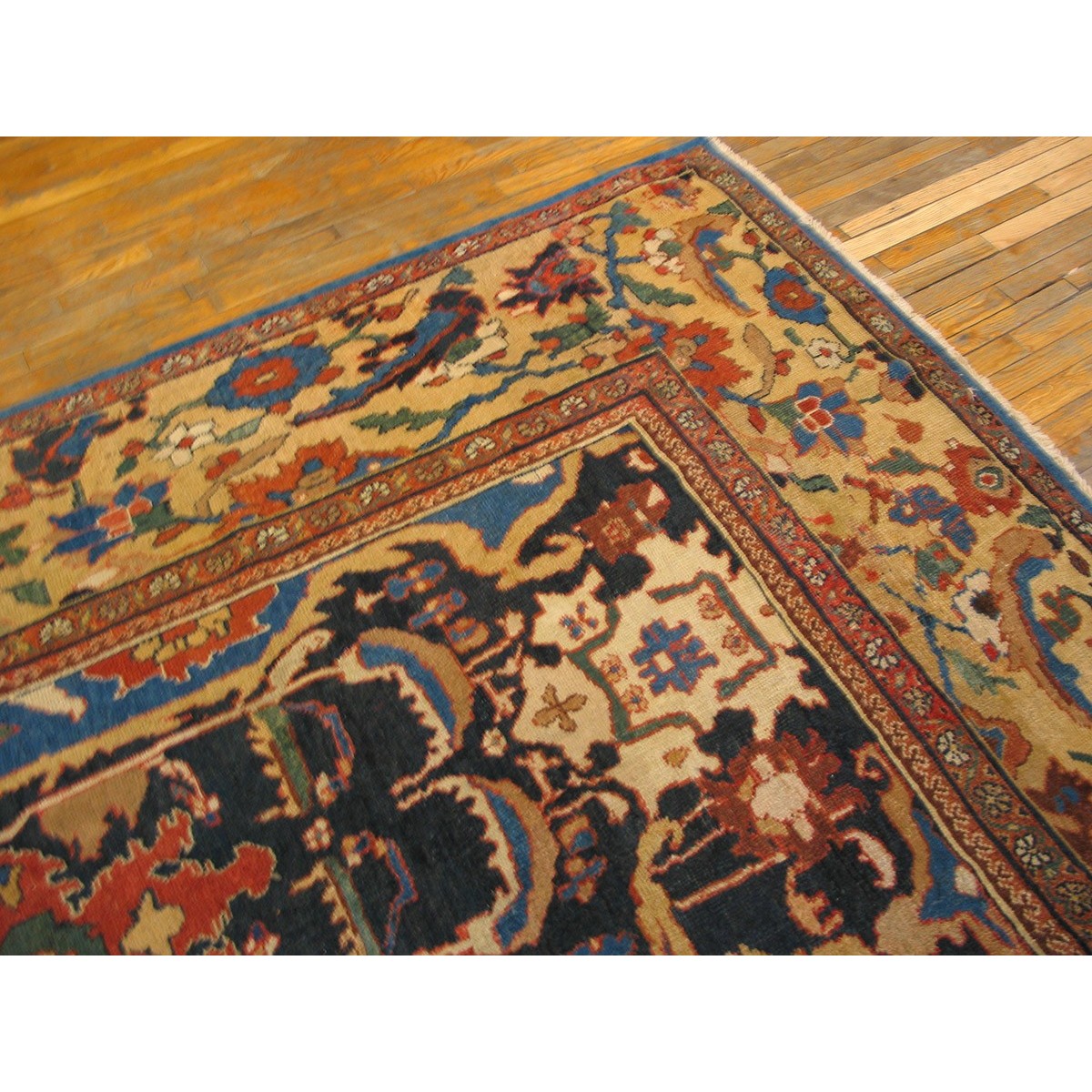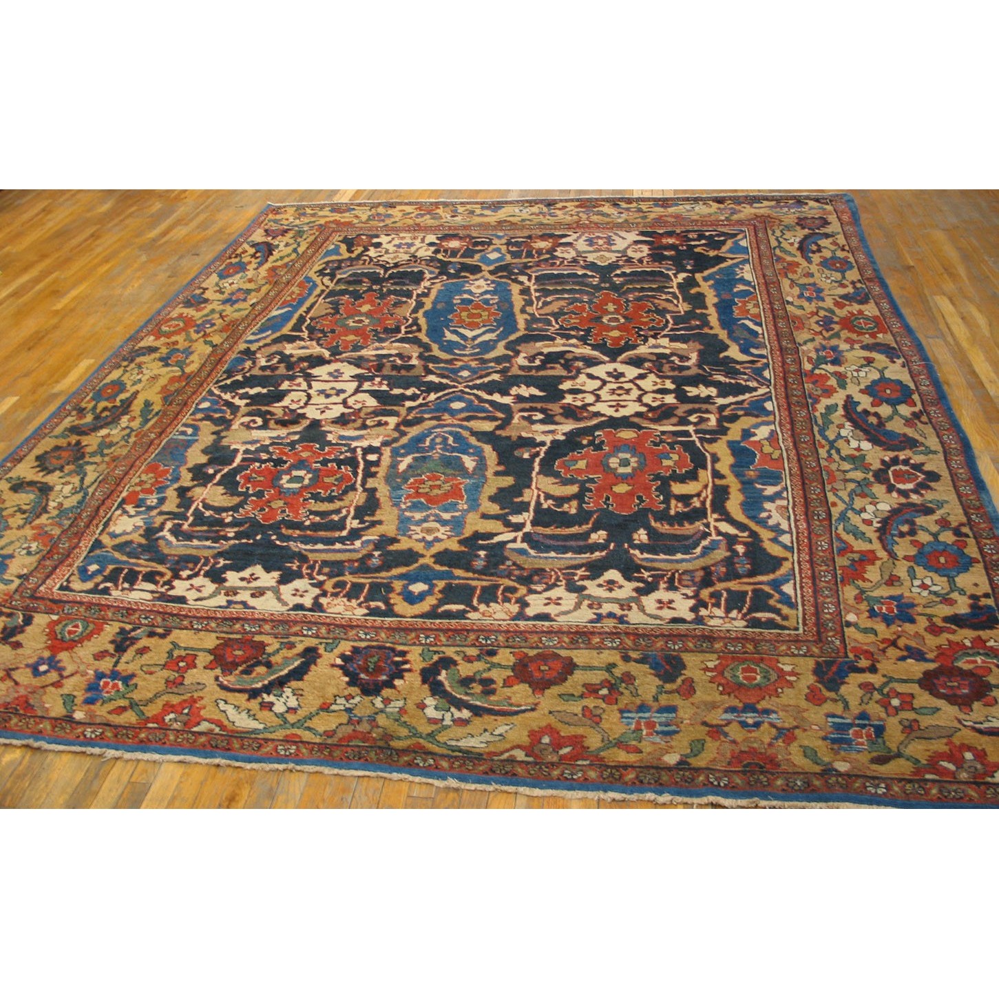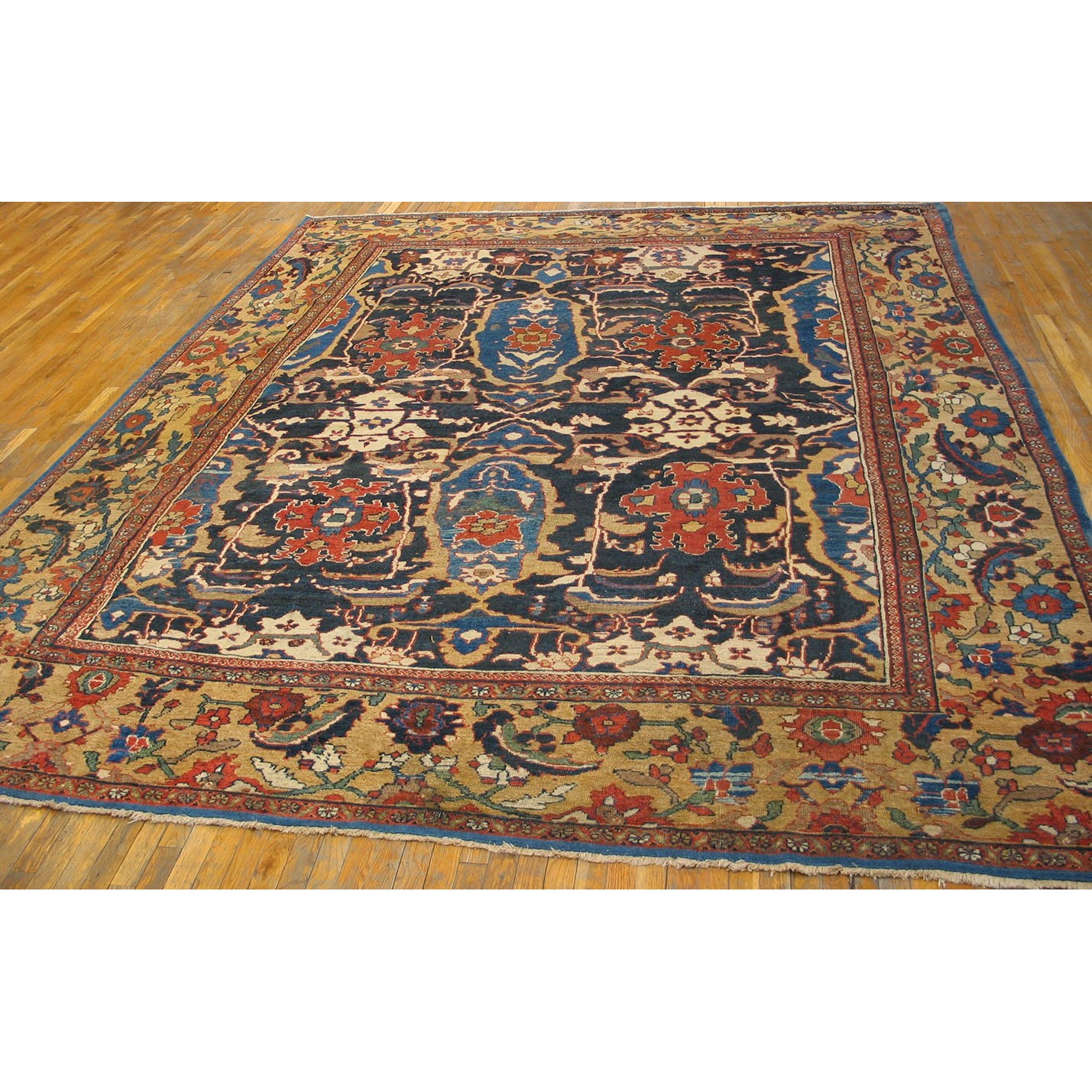DescriptionSultanabadArak province in western Iran encompasses the town of Sultanabad and various satellite villages, all of which weave for export:the sarouk, Mahal and MushKabad. The latter two grades comprise the sultanabad production. Virtually all are large carpets, up to 16 x 25, with overall, or medallions on decorated or open fields, in soft to bright colors on a cotton foundation, the pile is lowish. The design corpus includes the ever popular Herati, the Harshang palmette motif, rosettes and arabesques, small repeated medallions, etc. The weave varies from coarse to medium. Today, the soft colored pieces with bold patterns are particularly favored. Prices range widely, low for commercial pieces 50 years old, astronomical for light colored Zieglers (see below). | |