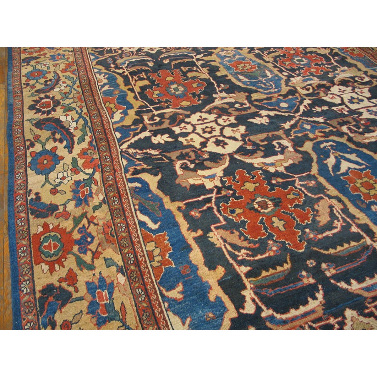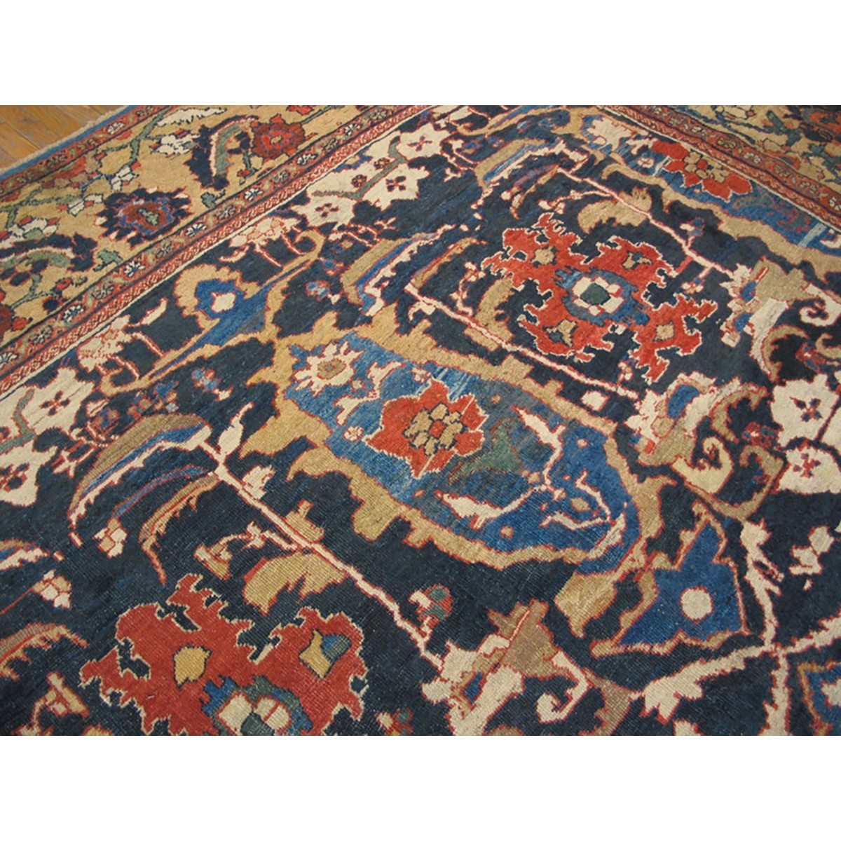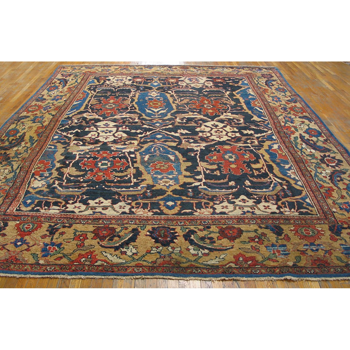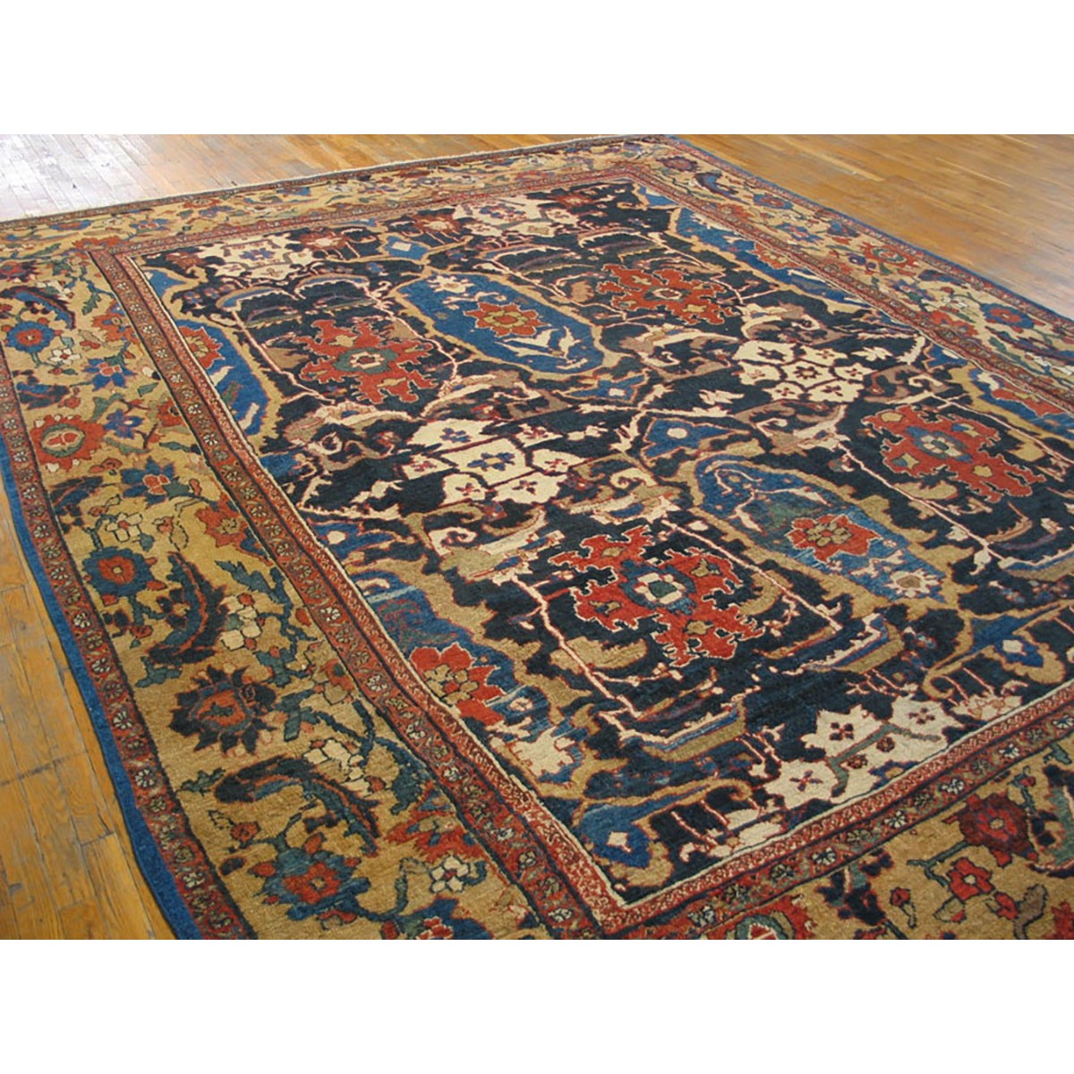 DescriptionSultanabadArak province in western Iran encompasses the town of Sultanabad and various satellite villages, all of which weave for export:the sarouk, Mahal and MushKabad. The latter two grades comprise the sultanabad production. Virtually all are large carpets, up to 16 x 25, with overall, or medallions on decorated or open fields, in soft to bright colors on a cotton foundation, the pile is lowish. The design corpus includes the ever popular Herati, the Harshang palmette motif, rosettes and arabesques, small repeated medallions, etc. The weave varies from coarse to medium. Today, the soft colored pieces with bold patterns are particularly favored. Prices range widely, low for commercial pieces 50 years old, astronomical for light colored Zieglers (see below). | |