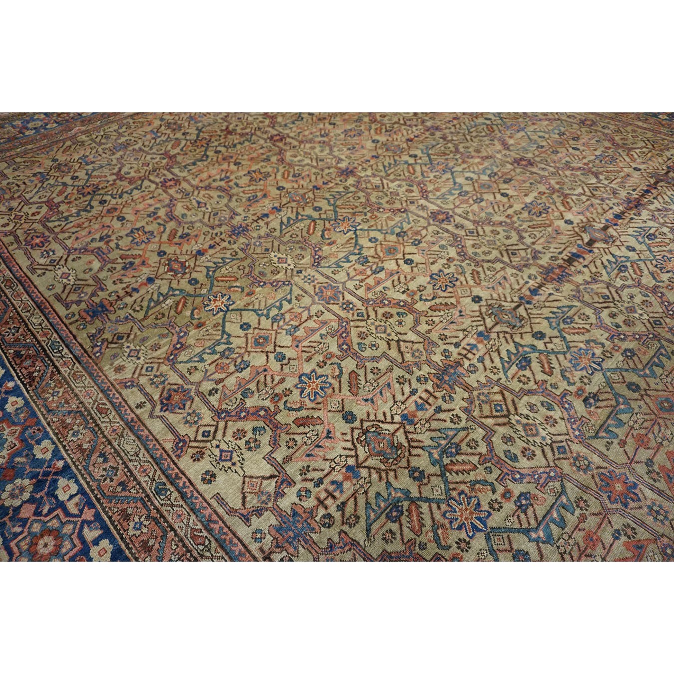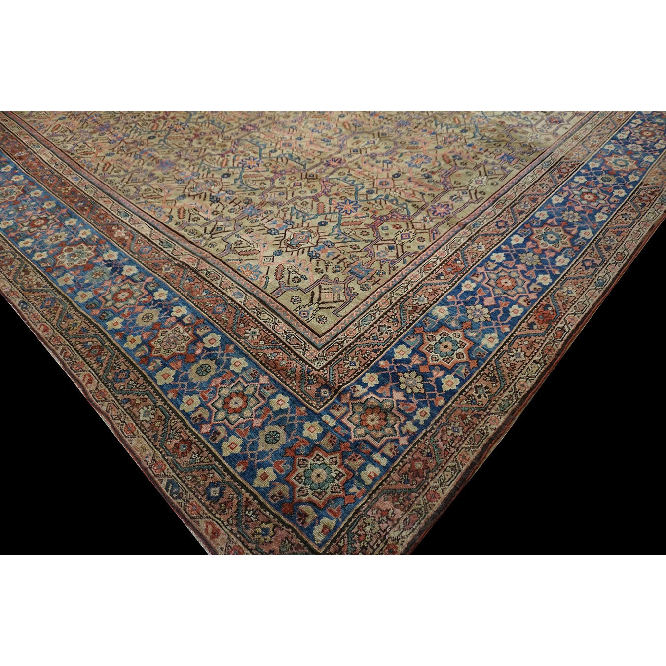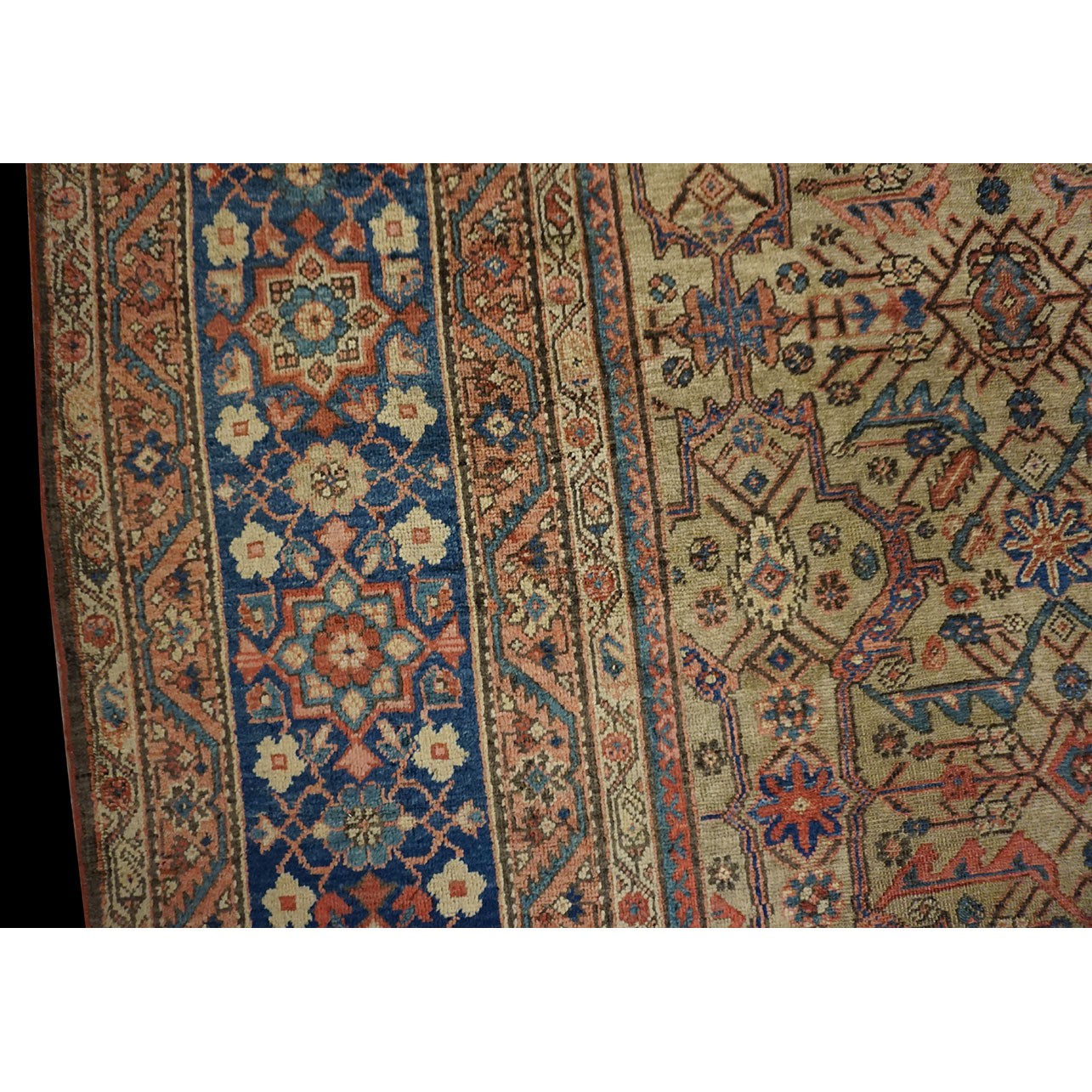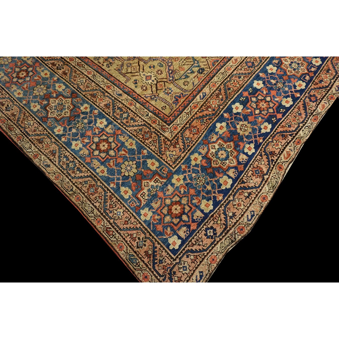 DescriptionSultanabadArak province in western Iran encompasses the town of Sultanabad and various satellite villages, all of which weave for export:the sarouk, Mahal and MushKabad. The latter two grades comprise the sultanabad production. Virtually all are large carpets, up to 16 x 25, with overall, or medallions on decorated or open fields, in soft to bright colors on a cotton foundation, the pile is lowish. The design corpus includes the ever popular Herati, the Harshang palmette motif, rosettes and arabesques, small repeated medallions, etc. The weave varies from coarse to medium. Today, the soft colored pieces with bold patterns are particularly favored. Prices range widely, low for commercial pieces 50 years old, astronomical for light colored Zieglers (see below). | |