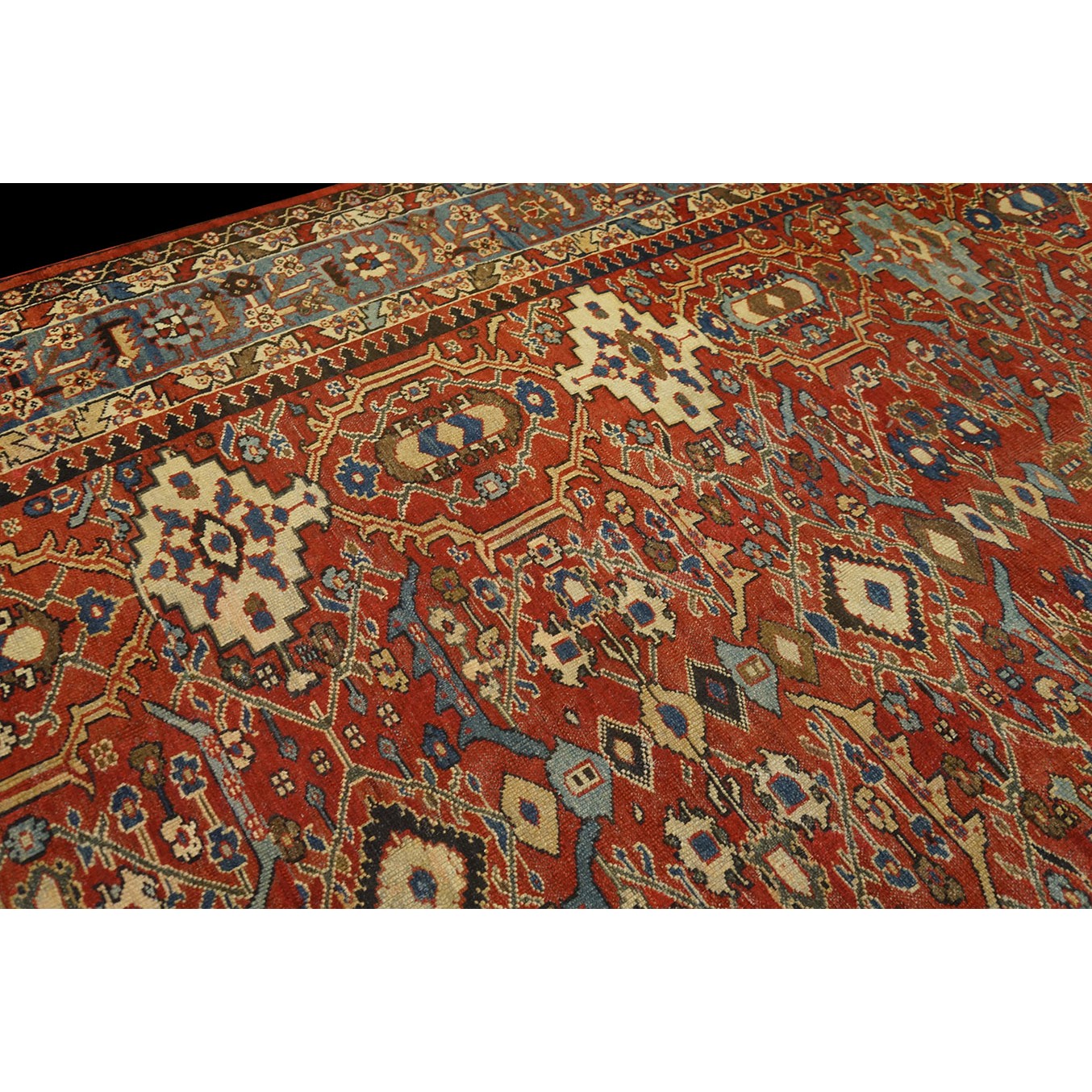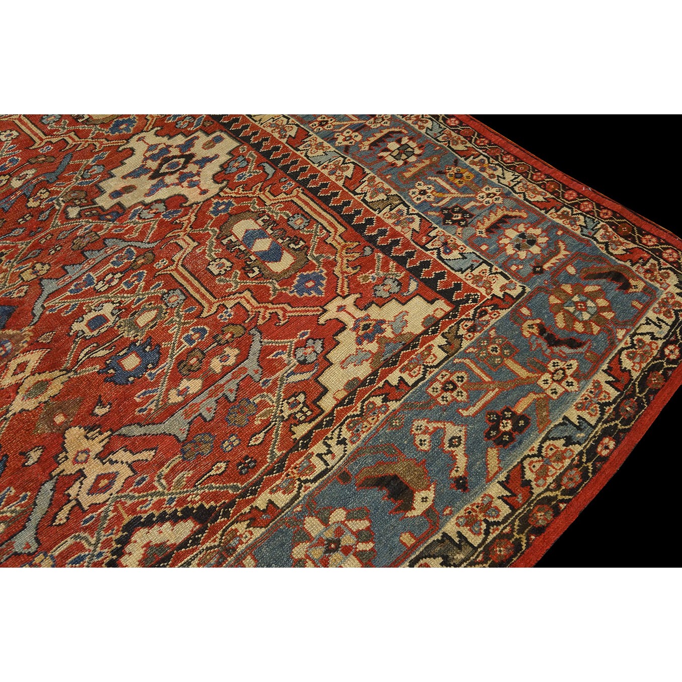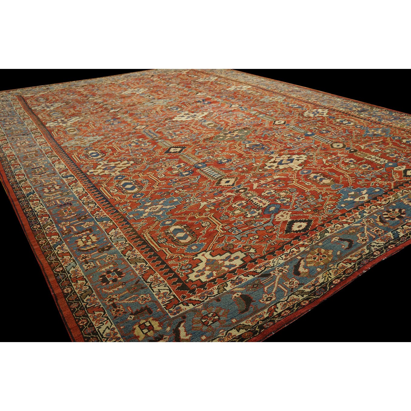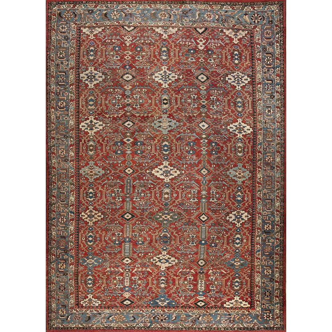 DescriptionSultanabadArak province in western Iran encompasses the town of Sultanabad and various satellite villages, all of which weave for export:the sarouk, Mahal and MushKabad. The latter two grades comprise the sultanabad production. Virtually all are large carpets, up to 16 x 25, with overall, or medallions on decorated or open fields, in soft to bright colors on a cotton foundation, the pile is lowish. The design corpus includes the ever popular Herati, the Harshang palmette motif, rosettes and arabesques, small repeated medallions, etc. The weave varies from coarse to medium. Today, the soft colored pieces with bold patterns are particularly favored. Prices range widely, low for commercial pieces 50 years old, astronomical for light colored Zieglers (see below). | |