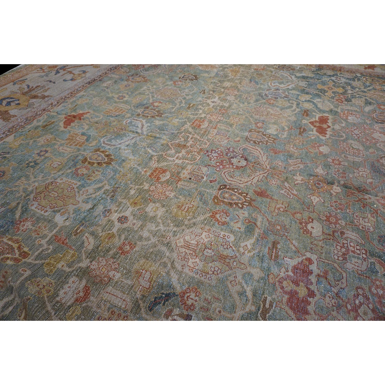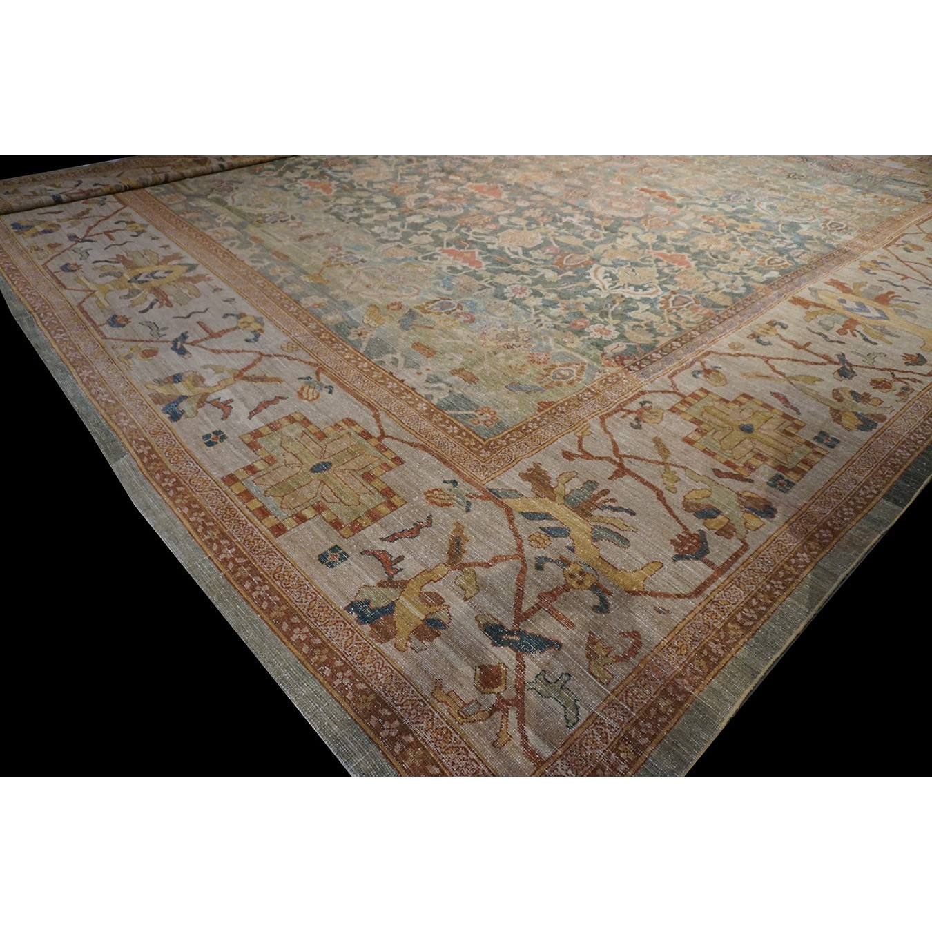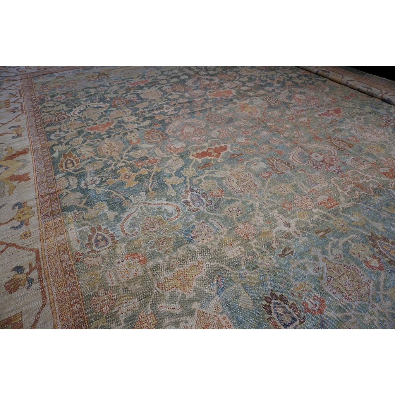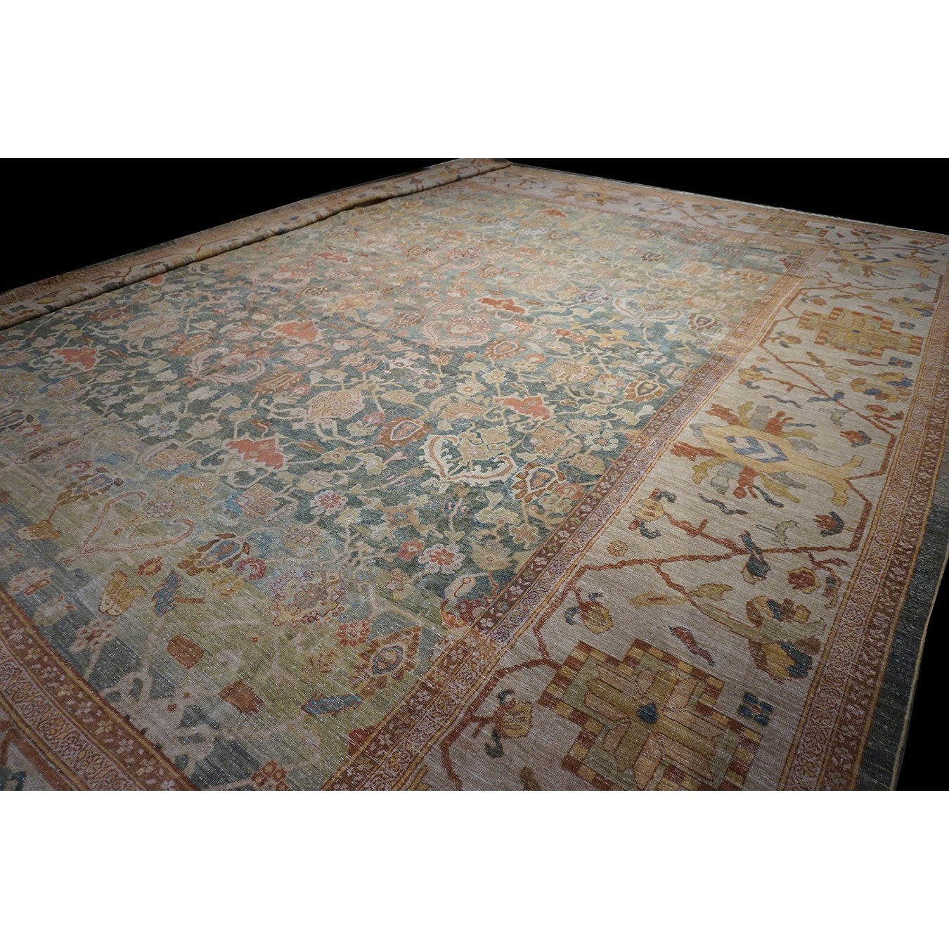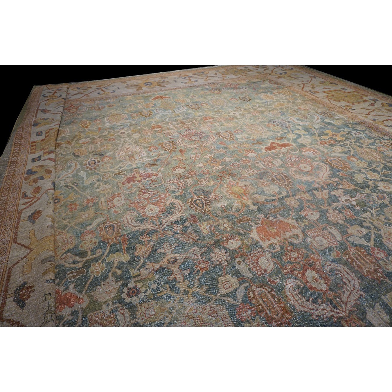 DescriptionSultanabadArak province in western Iran encompasses the town of Sultanabad and various satellite villages, all of which weave for export:the sarouk, Mahal and MushKabad. The latter two grades comprise the sultanabad production. Virtually all are large carpets, up to 16 x 25, with overall, or medallions on decorated or open fields, in soft to bright colors on a cotton foundation, the pile is lowish. The design corpus includes the ever popular Herati, the Harshang palmette motif, rosettes and arabesques, small repeated medallions, etc. The weave varies from coarse to medium. Today, the soft colored pieces with bold patterns are particularly favored. Prices range widely, low for commercial pieces 50 years old, astronomical for light colored Zieglers (see below). | |