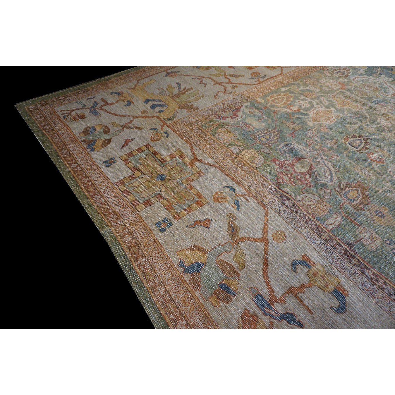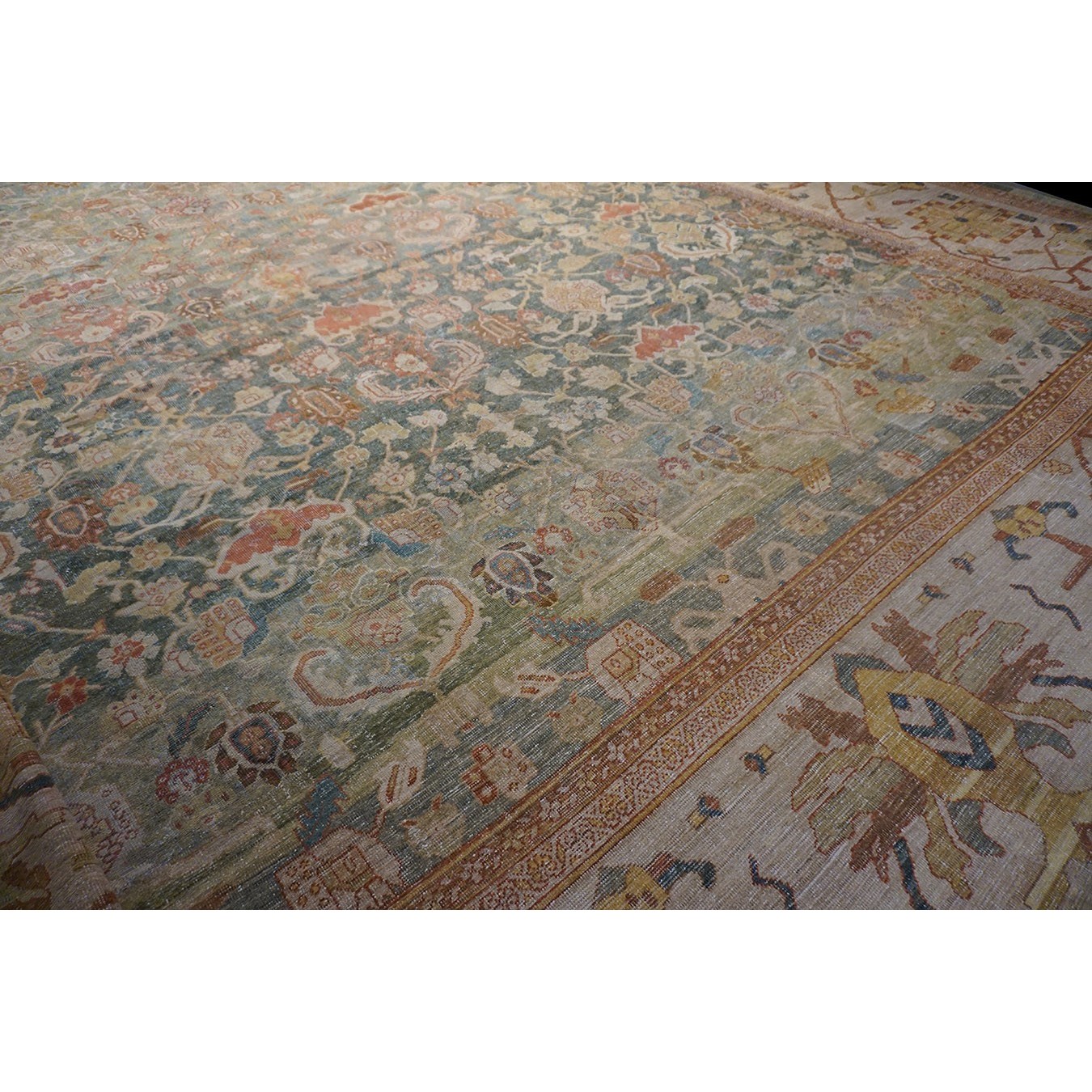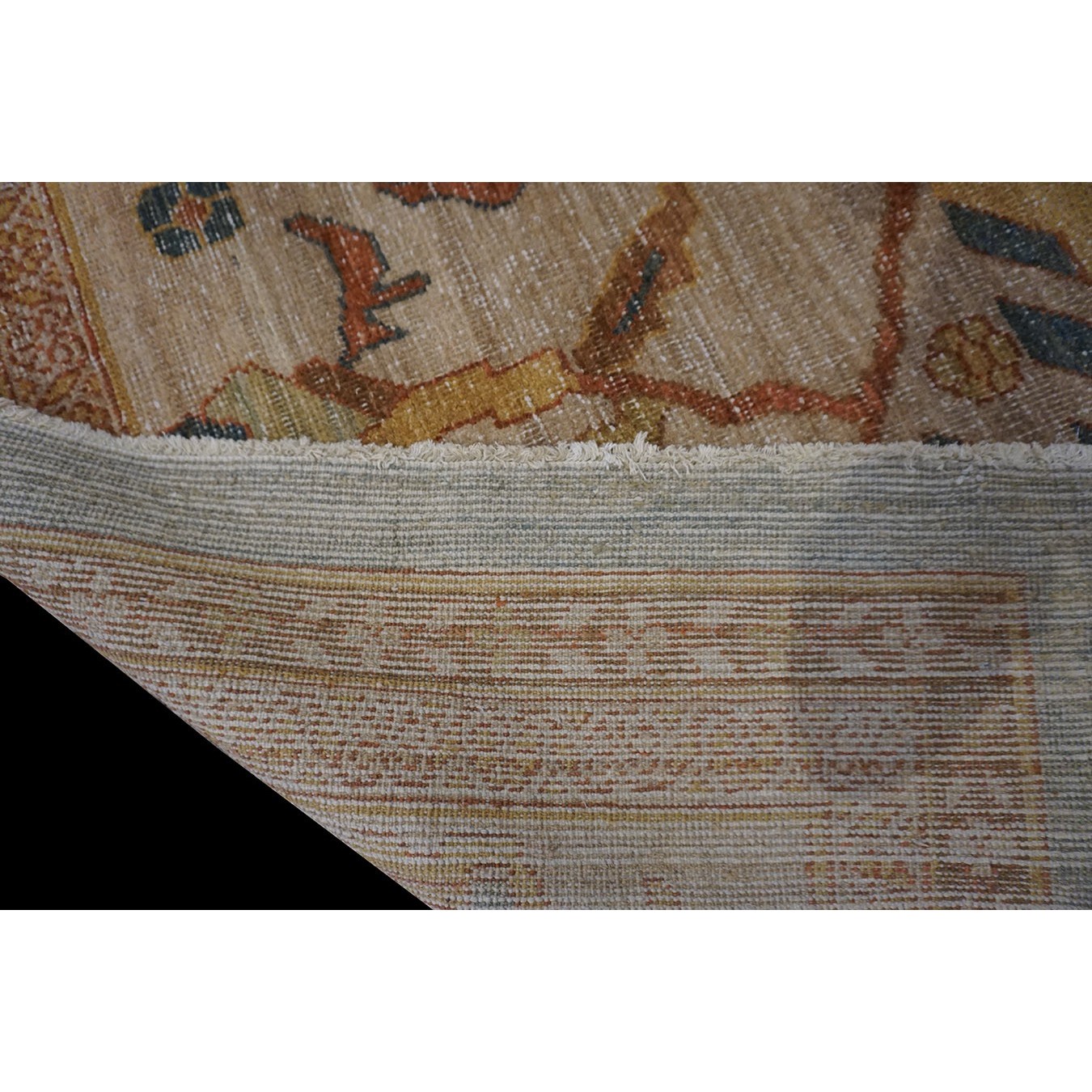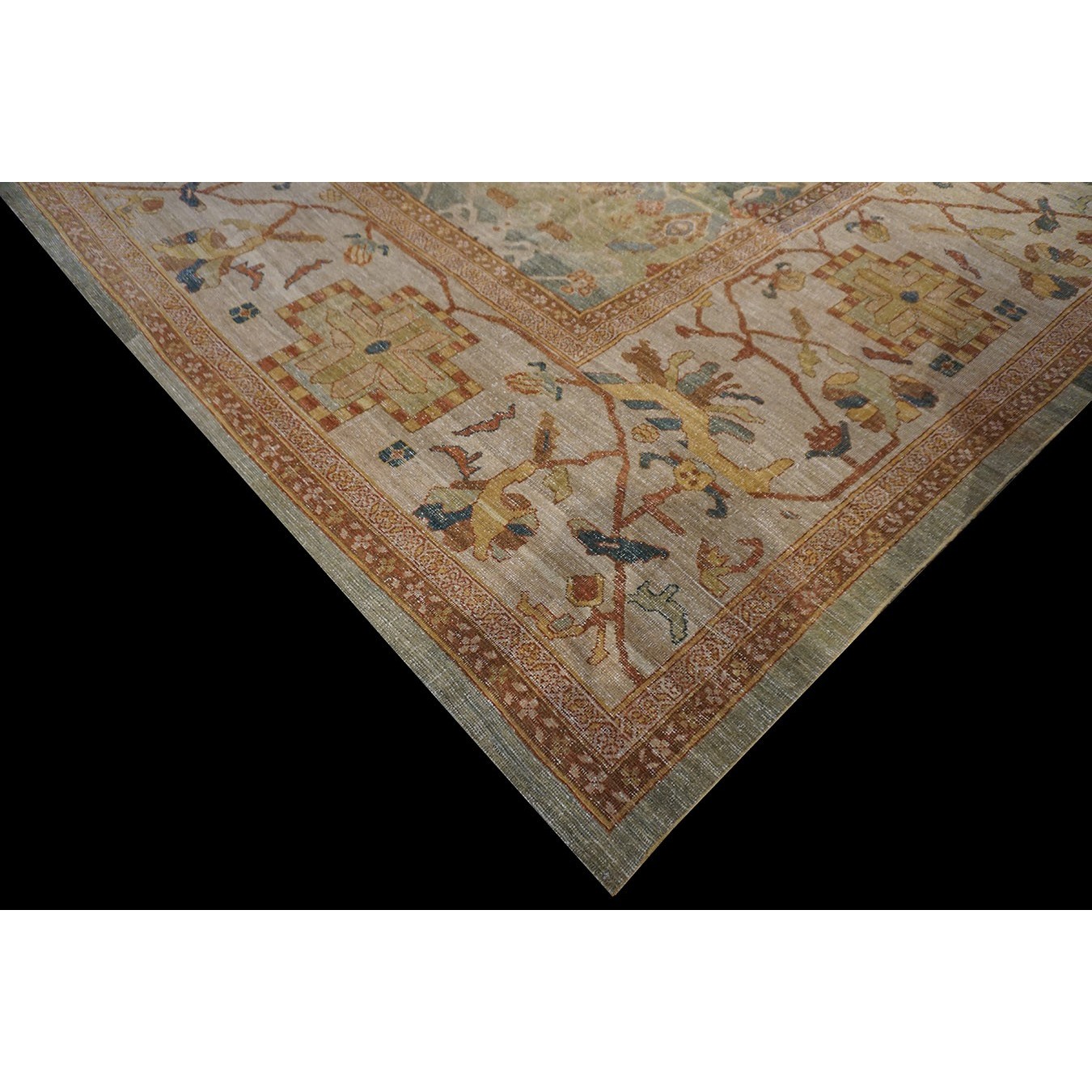 DescriptionSultanabadArak province in western Iran encompasses the town of Sultanabad and various satellite villages, all of which weave for export:the sarouk, Mahal and MushKabad. The latter two grades comprise the sultanabad production. Virtually all are large carpets, up to 16 x 25, with overall, or medallions on decorated or open fields, in soft to bright colors on a cotton foundation, the pile is lowish. The design corpus includes the ever popular Herati, the Harshang palmette motif, rosettes and arabesques, small repeated medallions, etc. The weave varies from coarse to medium. Today, the soft colored pieces with bold patterns are particularly favored. Prices range widely, low for commercial pieces 50 years old, astronomical for light colored Zieglers (see below). | |