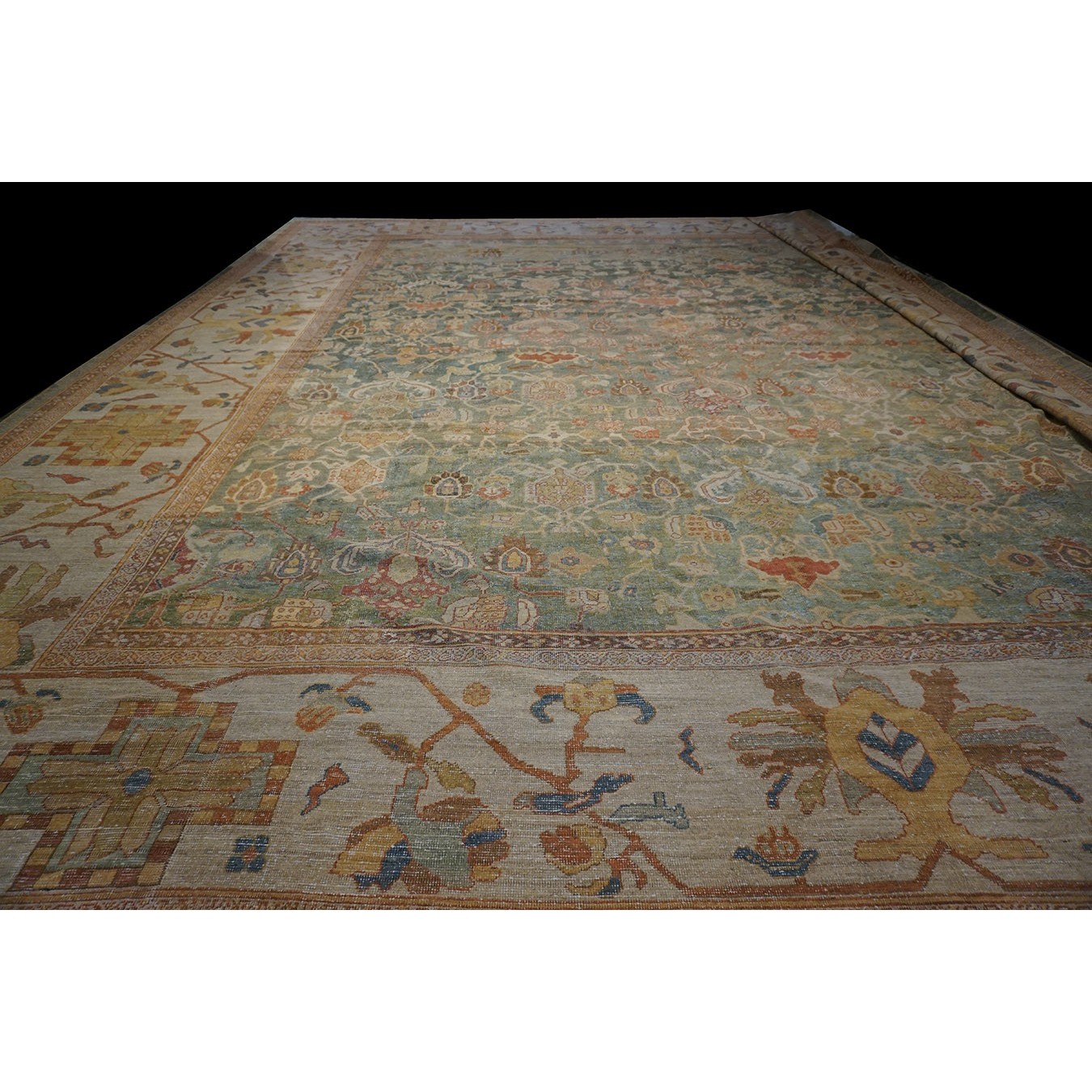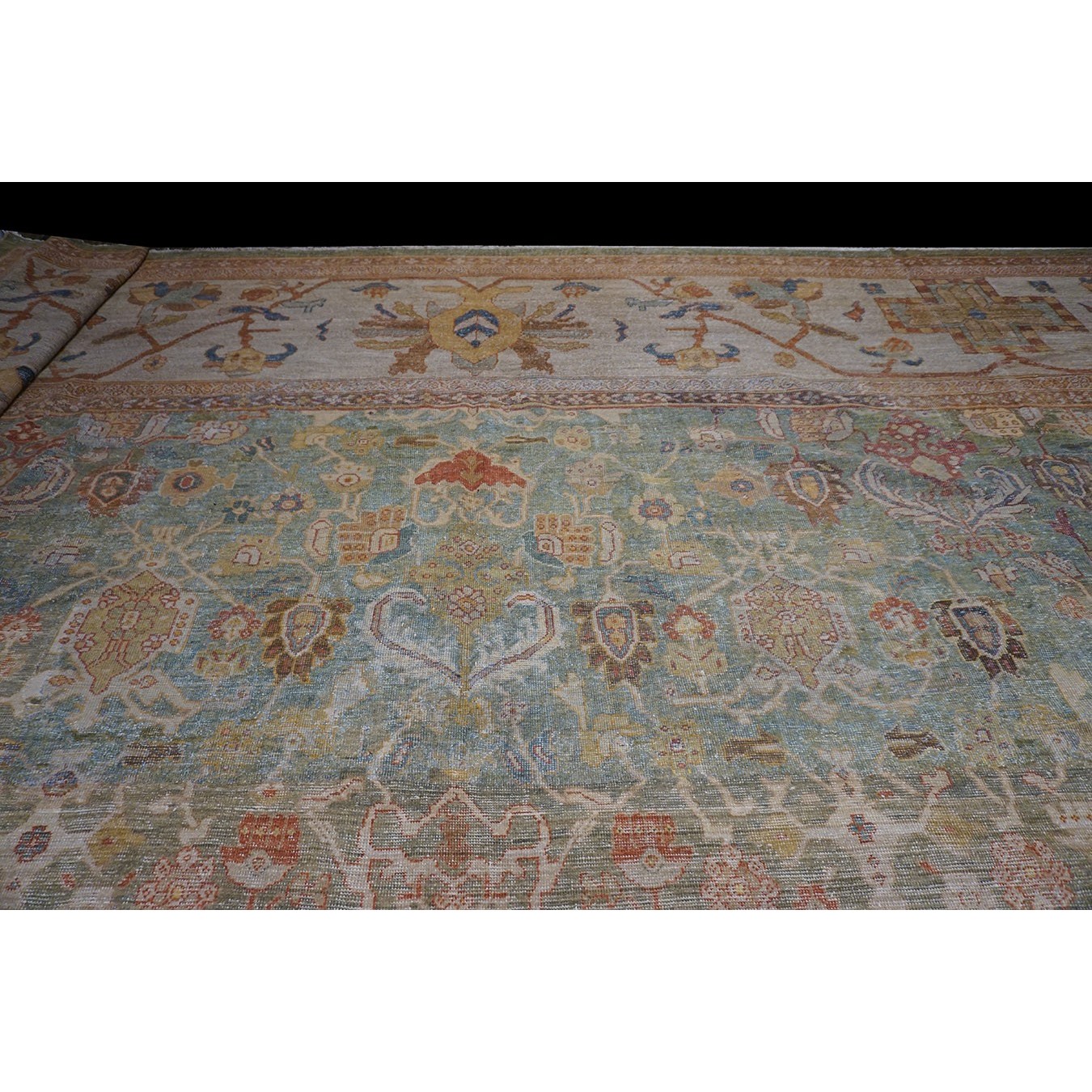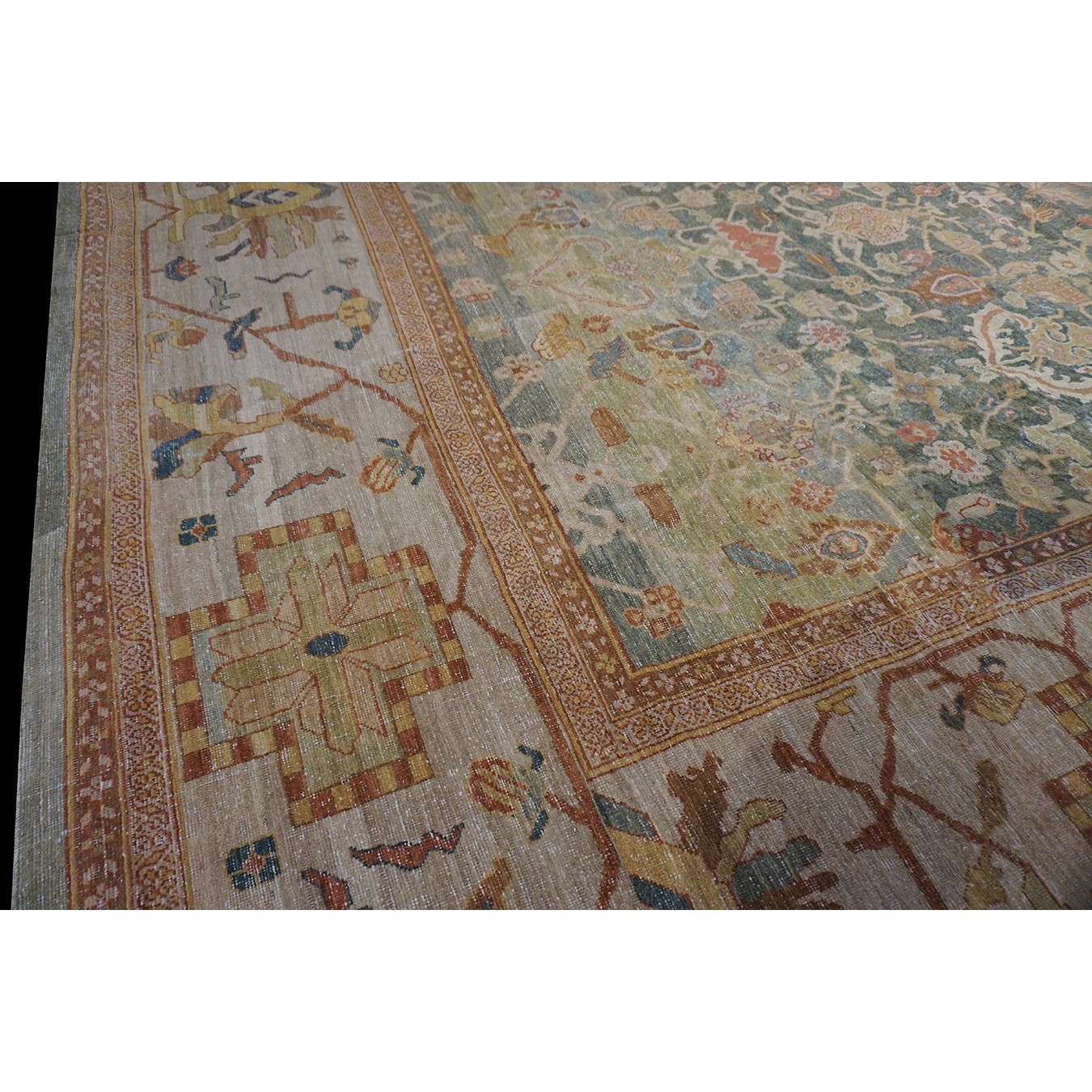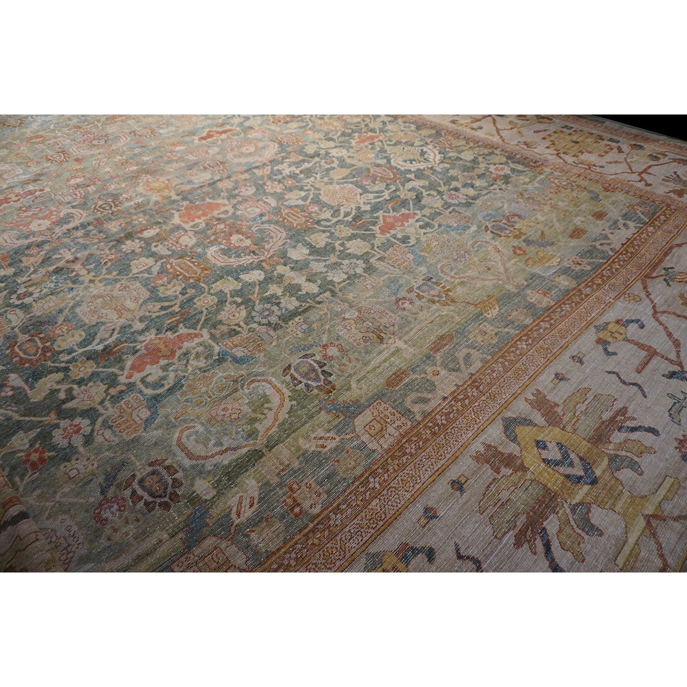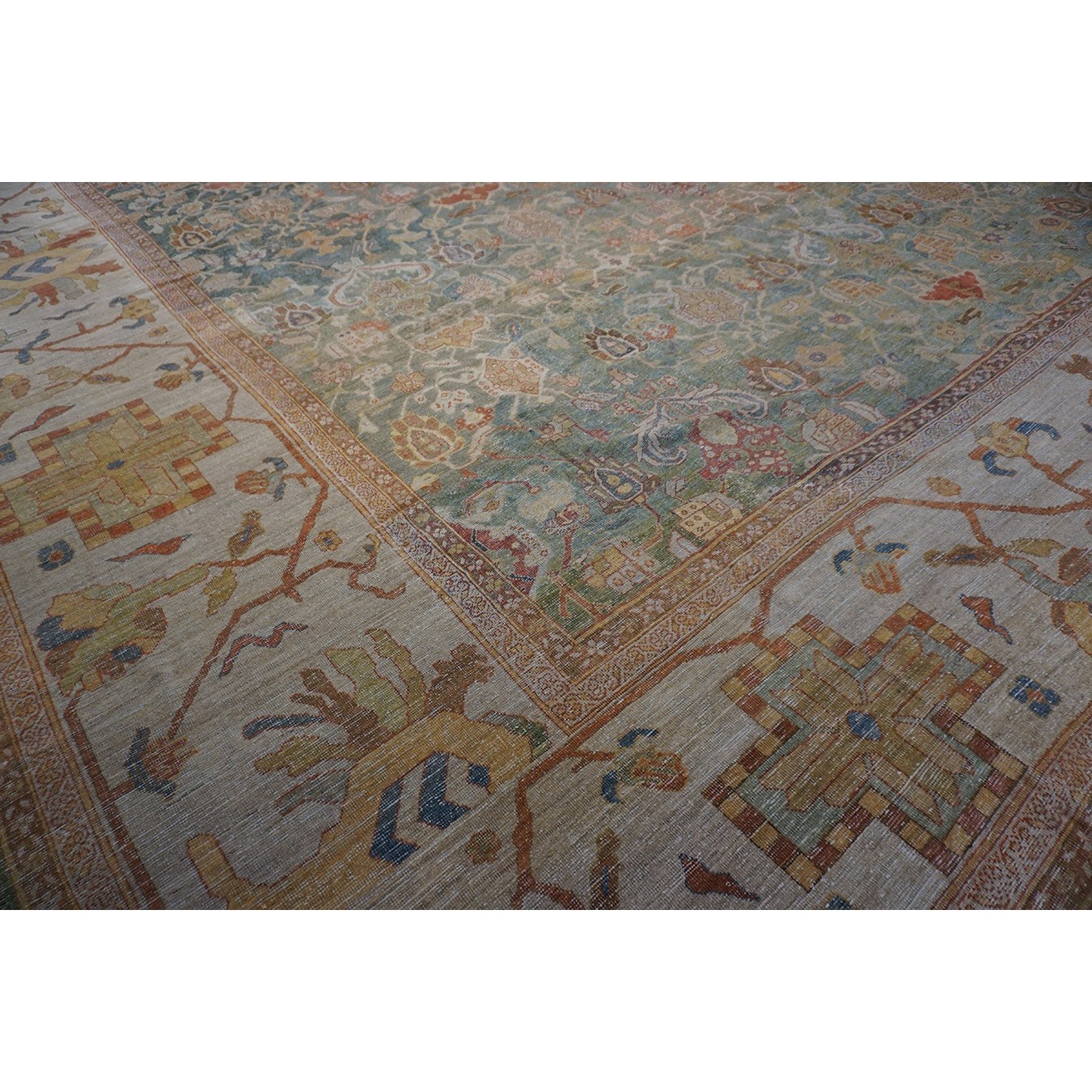 DescriptionSultanabadArak province in western Iran encompasses the town of Sultanabad and various satellite villages, all of which weave for export:the sarouk, Mahal and MushKabad. The latter two grades comprise the sultanabad production. Virtually all are large carpets, up to 16 x 25, with overall, or medallions on decorated or open fields, in soft to bright colors on a cotton foundation, the pile is lowish. The design corpus includes the ever popular Herati, the Harshang palmette motif, rosettes and arabesques, small repeated medallions, etc. The weave varies from coarse to medium. Today, the soft colored pieces with bold patterns are particularly favored. Prices range widely, low for commercial pieces 50 years old, astronomical for light colored Zieglers (see below). | |