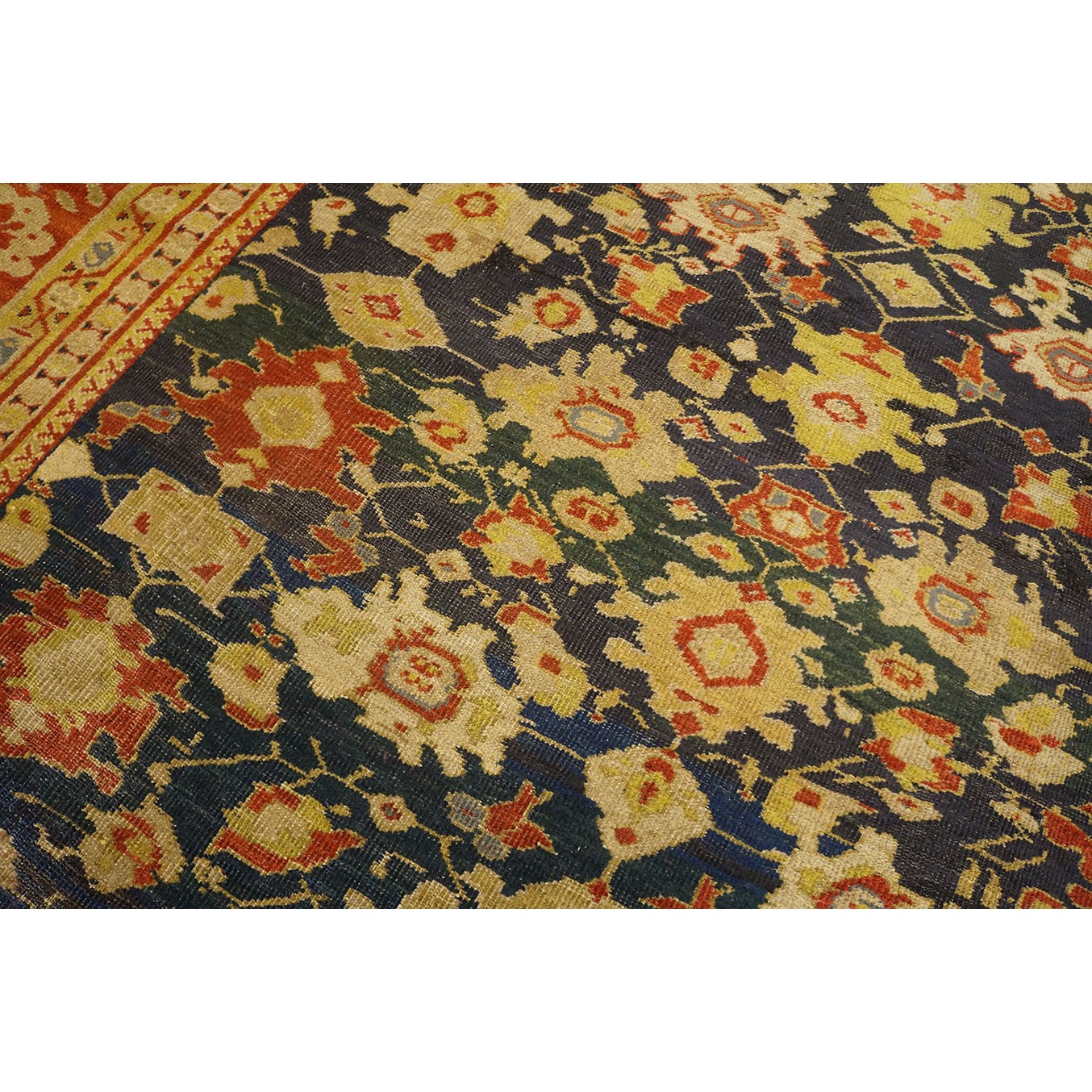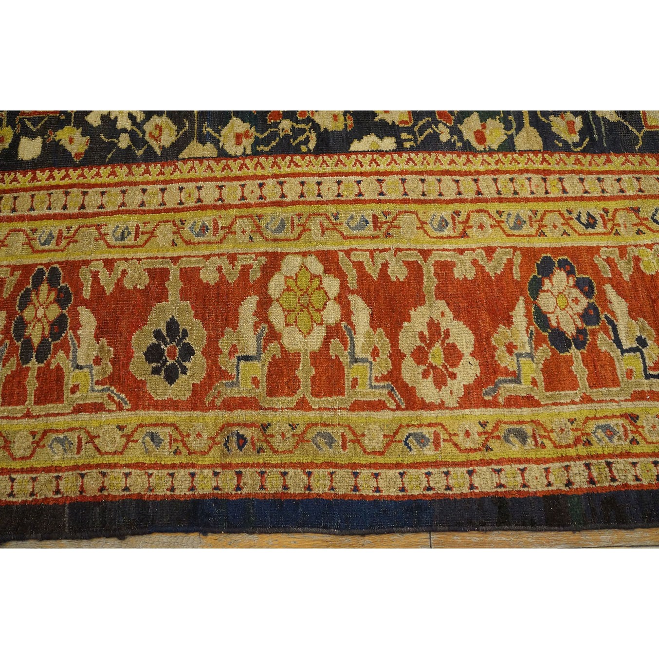 DescriptionSultanabadArak province in western Iran encompasses the town of Sultanabad and various satellite villages, all of which weave for export:the sarouk, Mahal and MushKabad. The latter two grades comprise the sultanabad production. Virtually all are large carpets, up to 16 x 25, with overall, or medallions on decorated or open fields, in soft to bright colors on a cotton foundation, the pile is lowish. The design corpus includes the ever popular Herati, the Harshang palmette motif, rosettes and arabesques, small repeated medallions, etc. The weave varies from coarse to medium. Today, the soft colored pieces with bold patterns are particularly favored. Prices range widely, low for commercial pieces 50 years old, astronomical for light colored Zieglers (see below). | |