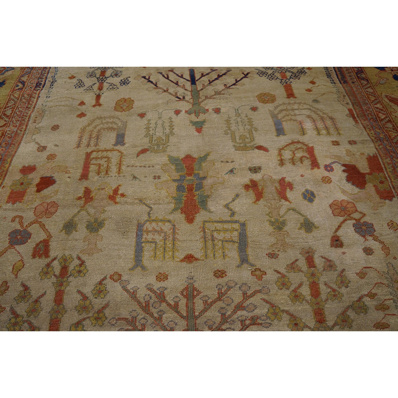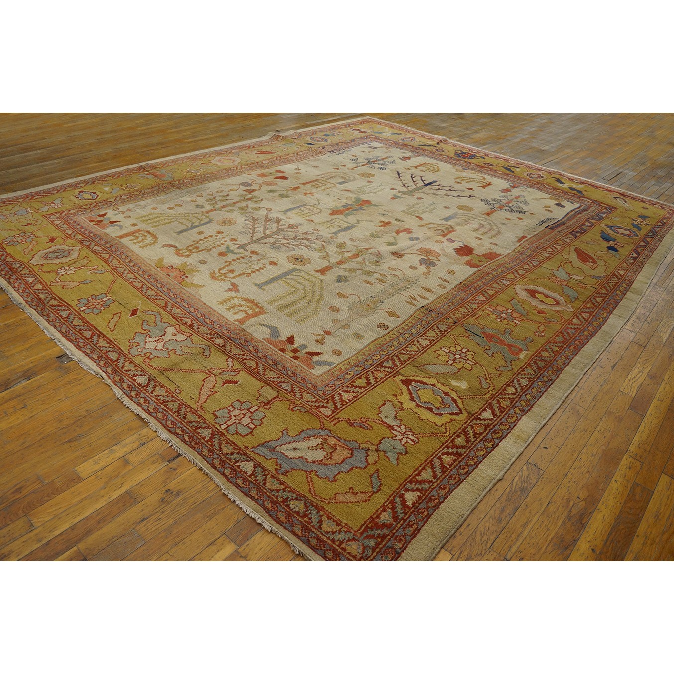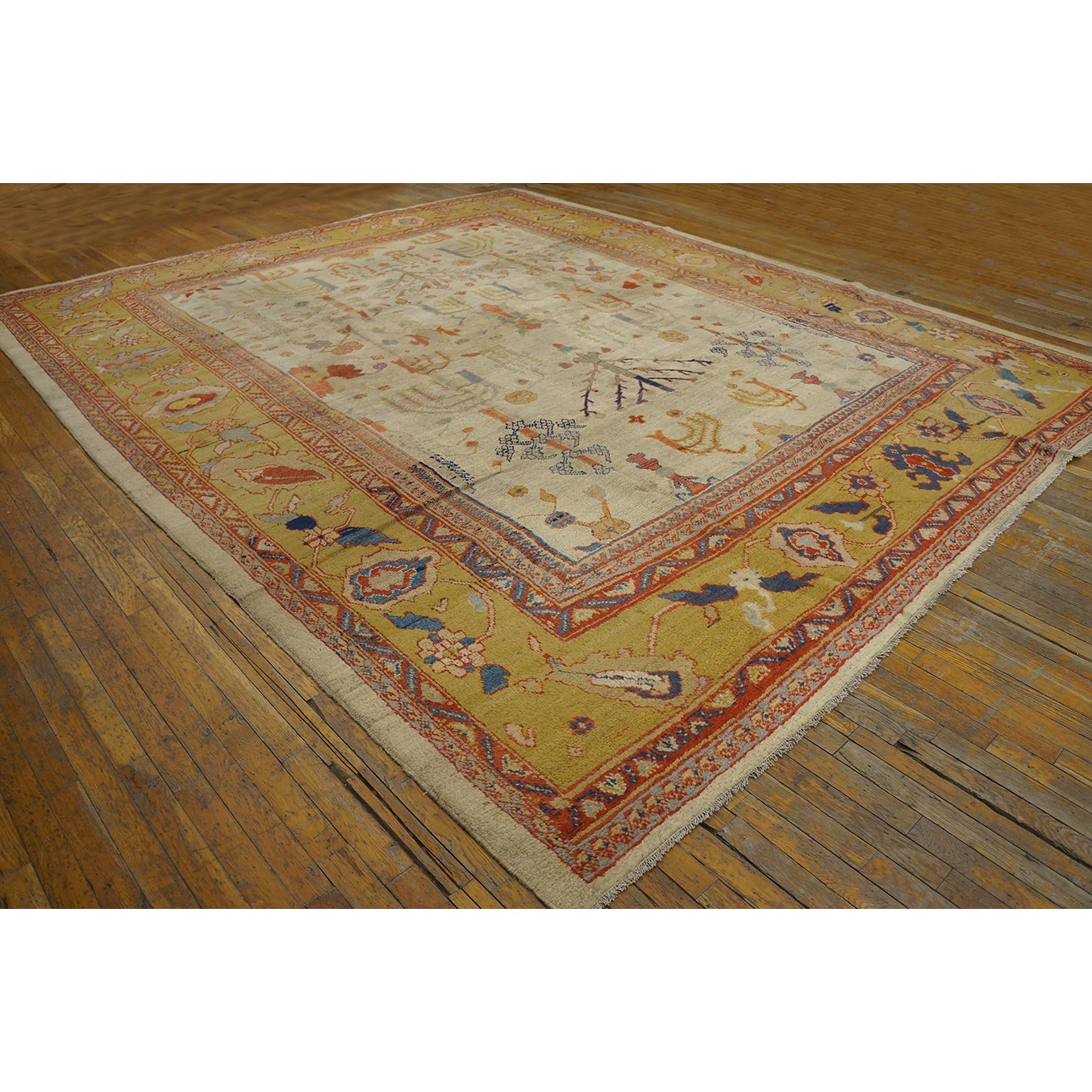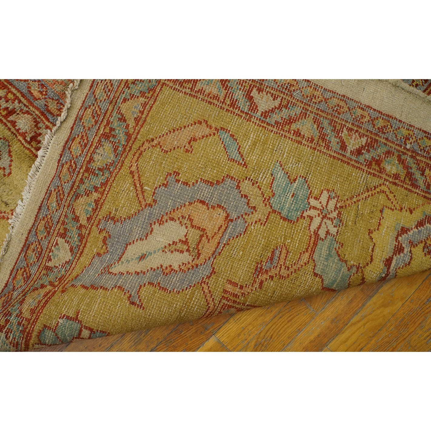 DescriptionSultanabadArak province in western Iran encompasses the town of Sultanabad and various satellite villages, all of which weave for export:the sarouk, Mahal and MushKabad. The latter two grades comprise the sultanabad production. Virtually all are large carpets, up to 16 x 25, with overall, or medallions on decorated or open fields, in soft to bright colors on a cotton foundation, the pile is lowish. The design corpus includes the ever popular Herati, the Harshang palmette motif, rosettes and arabesques, small repeated medallions, etc. The weave varies from coarse to medium. Today, the soft colored pieces with bold patterns are particularly favored. Prices range widely, low for commercial pieces 50 years old, astronomical for light colored Zieglers (see below). | |