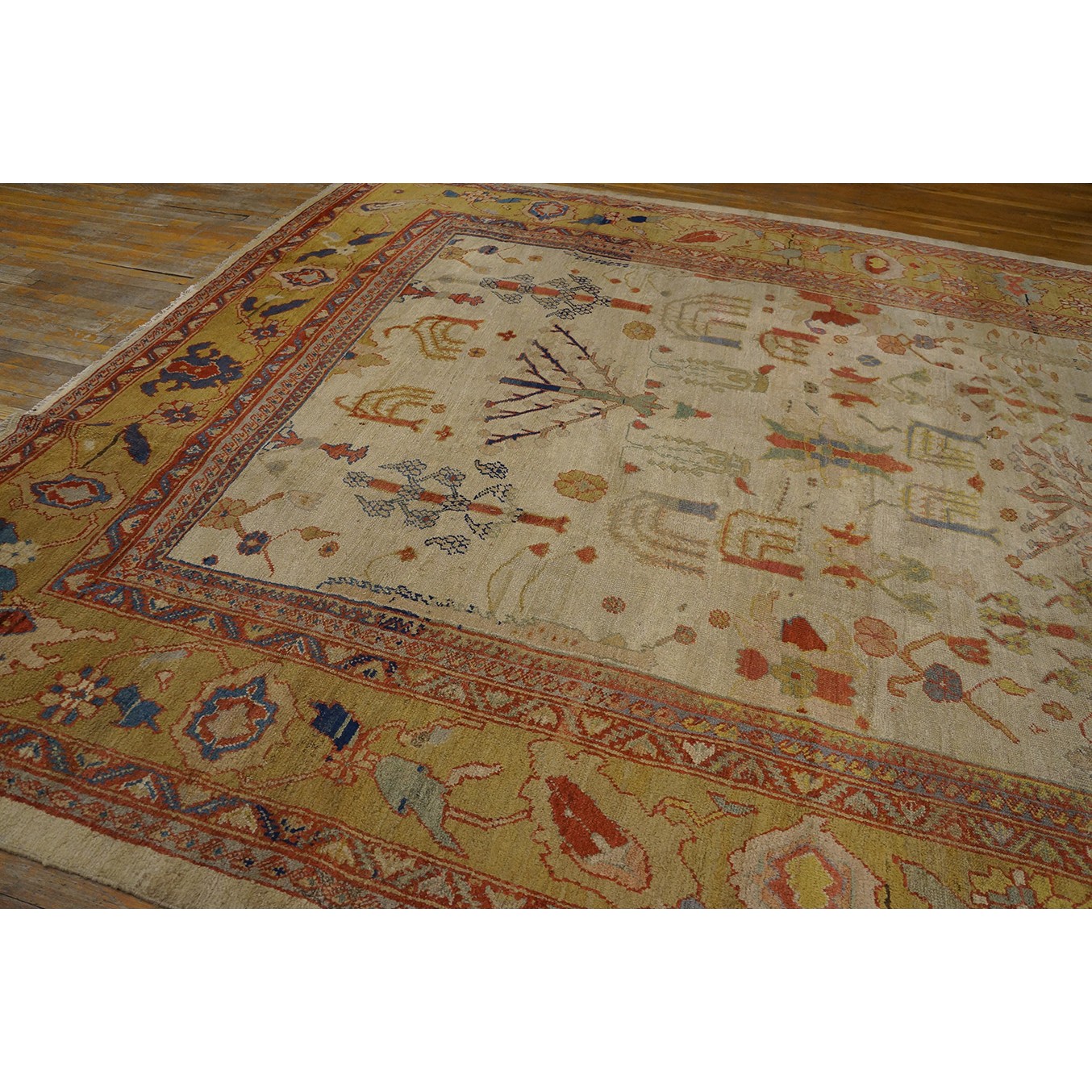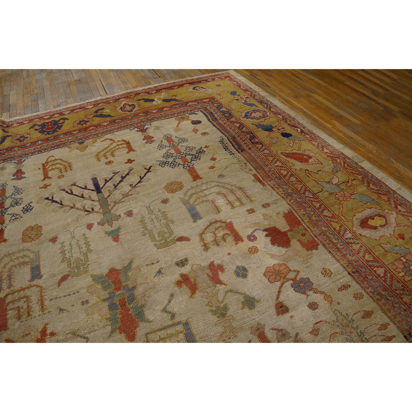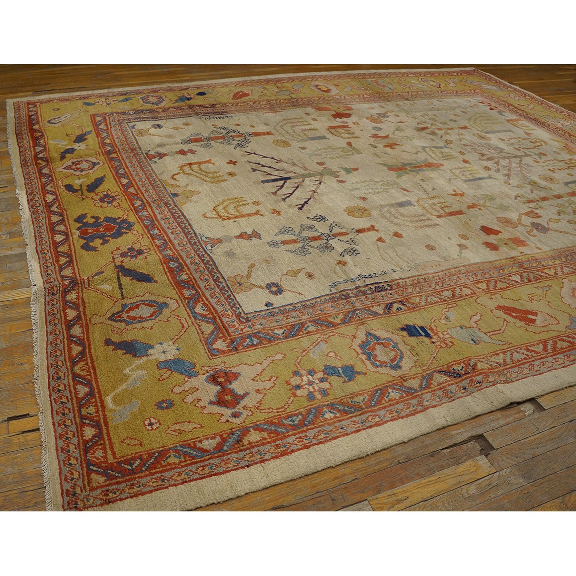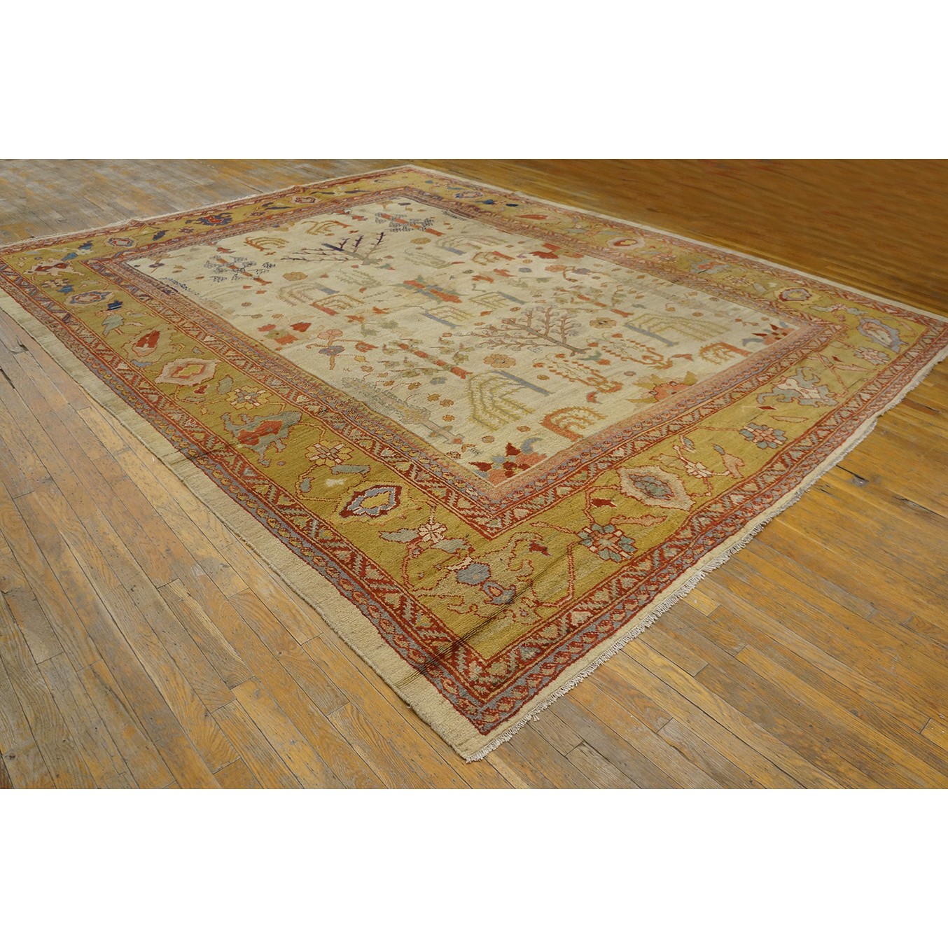 DescriptionSultanabadArak province in western Iran encompasses the town of Sultanabad and various satellite villages, all of which weave for export:the sarouk, Mahal and MushKabad. The latter two grades comprise the sultanabad production. Virtually all are large carpets, up to 16 x 25, with overall, or medallions on decorated or open fields, in soft to bright colors on a cotton foundation, the pile is lowish. The design corpus includes the ever popular Herati, the Harshang palmette motif, rosettes and arabesques, small repeated medallions, etc. The weave varies from coarse to medium. Today, the soft colored pieces with bold patterns are particularly favored. Prices range widely, low for commercial pieces 50 years old, astronomical for light colored Zieglers (see below). | |