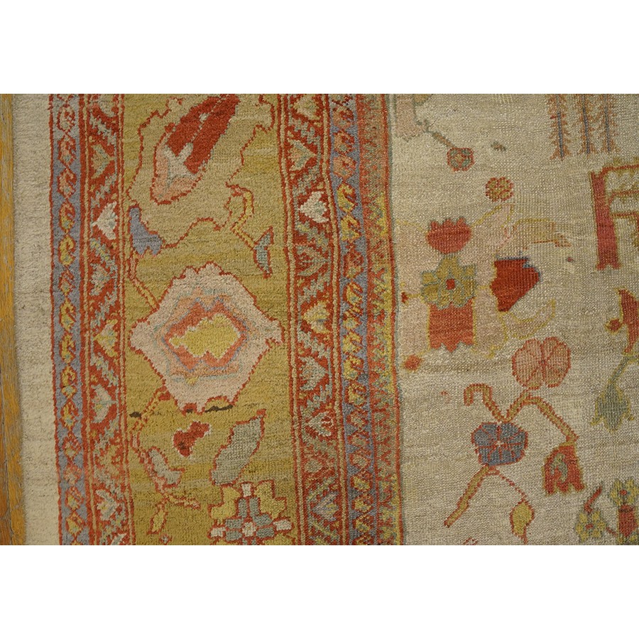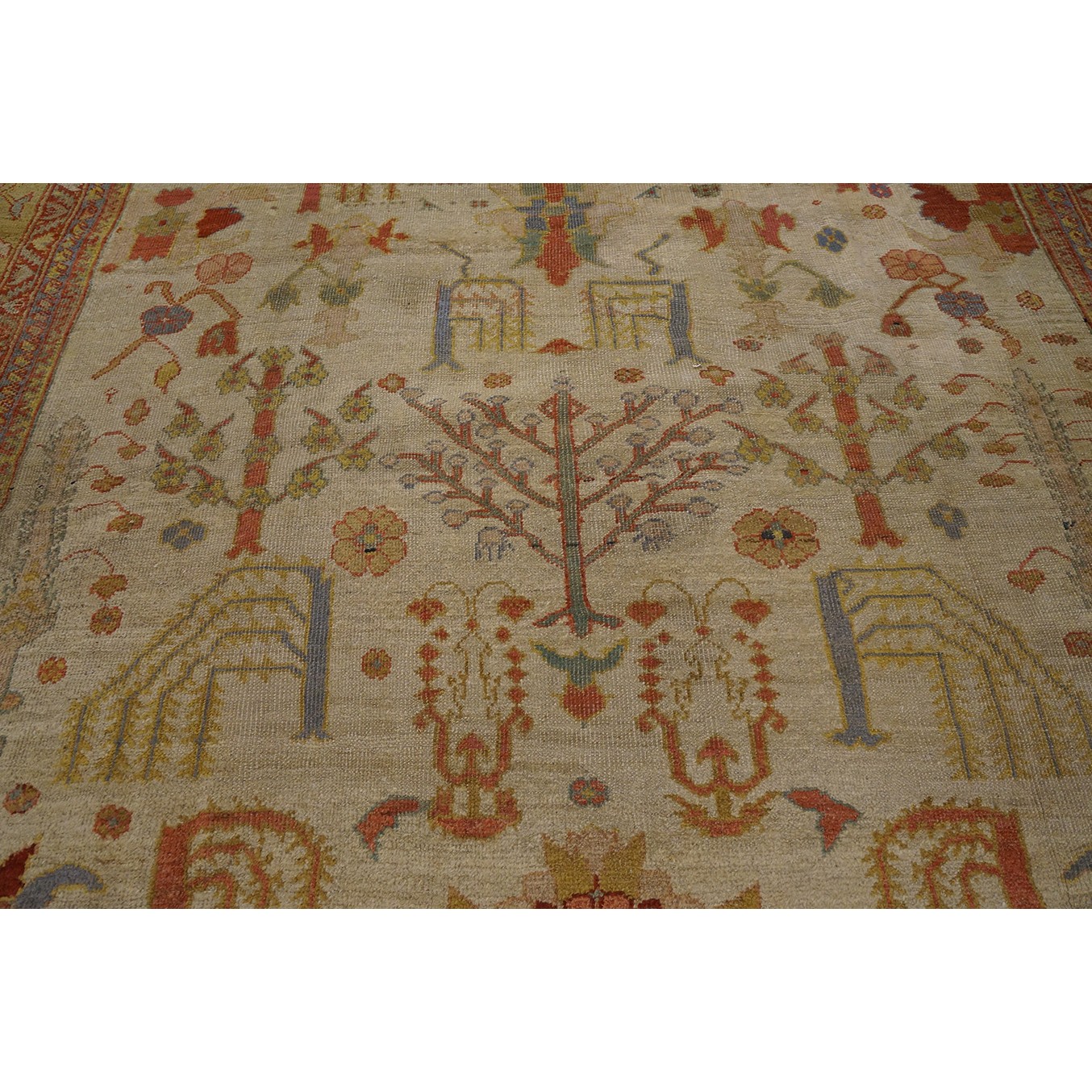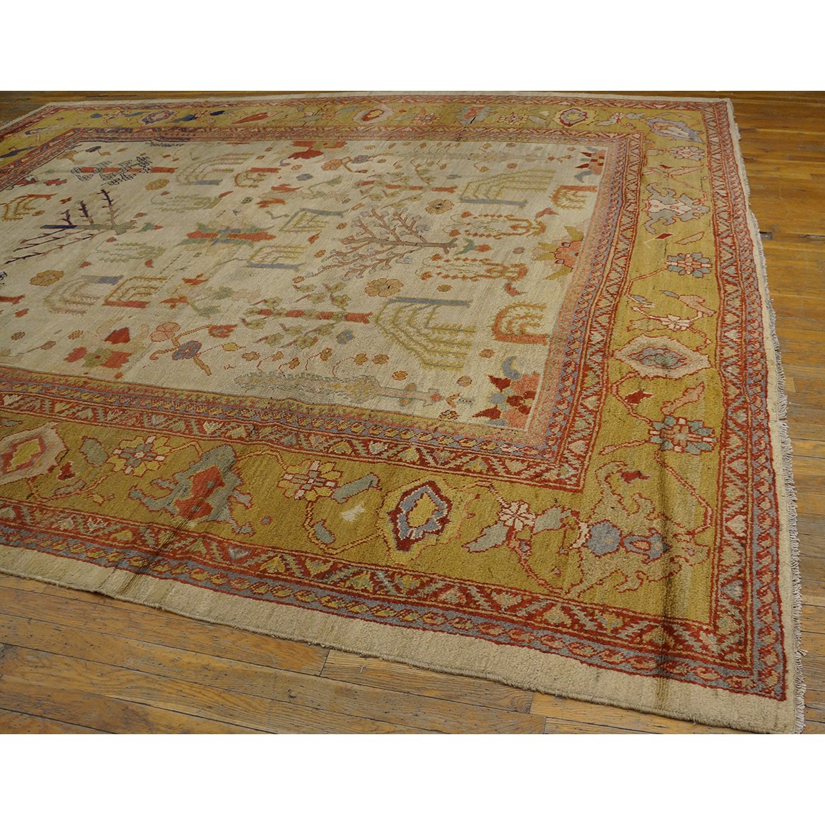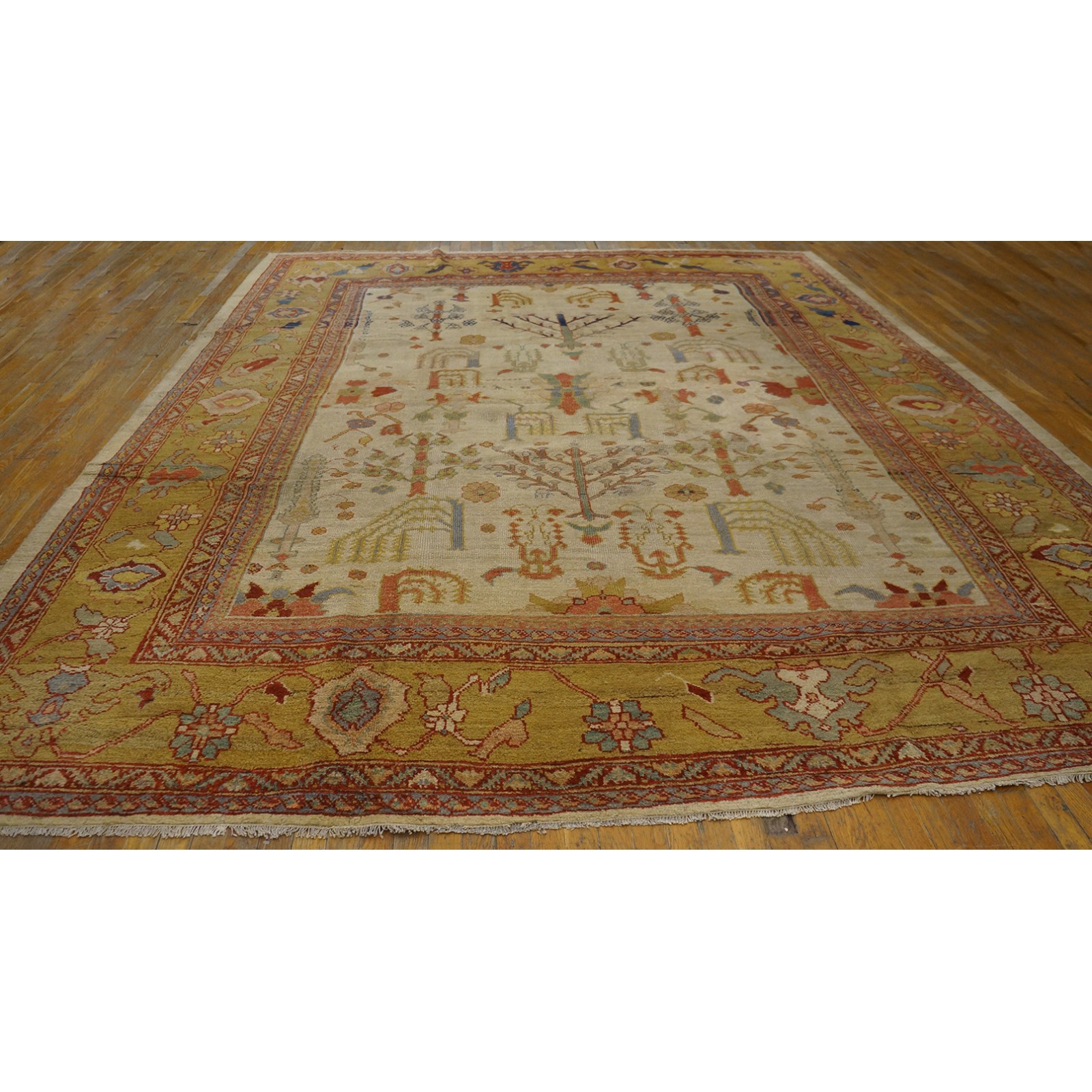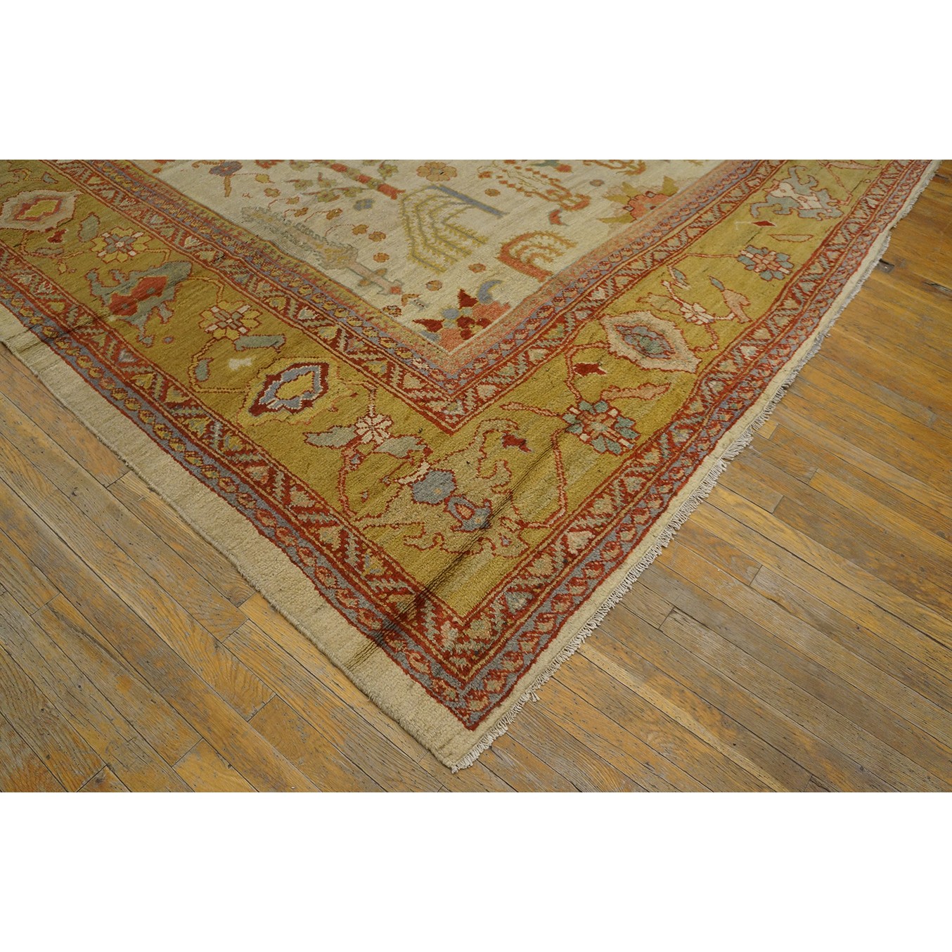 DescriptionSultanabadArak province in western Iran encompasses the town of Sultanabad and various satellite villages, all of which weave for export:the sarouk, Mahal and MushKabad. The latter two grades comprise the sultanabad production. Virtually all are large carpets, up to 16 x 25, with overall, or medallions on decorated or open fields, in soft to bright colors on a cotton foundation, the pile is lowish. The design corpus includes the ever popular Herati, the Harshang palmette motif, rosettes and arabesques, small repeated medallions, etc. The weave varies from coarse to medium. Today, the soft colored pieces with bold patterns are particularly favored. Prices range widely, low for commercial pieces 50 years old, astronomical for light colored Zieglers (see below). | |