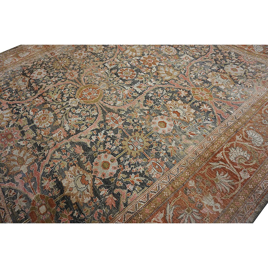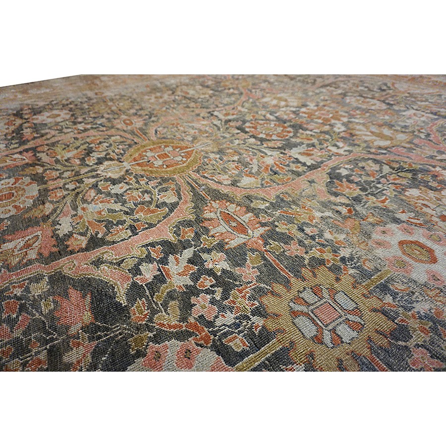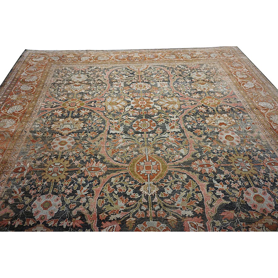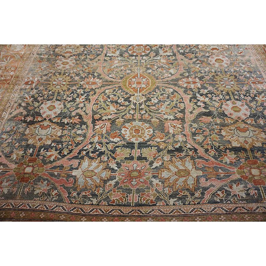 DescriptionSultanabadArak province in western Iran encompasses the town of Sultanabad and various satellite villages, all of which weave for export:the sarouk, Mahal and MushKabad. The latter two grades comprise the sultanabad production. Virtually all are large carpets, up to 16 x 25, with overall, or medallions on decorated or open fields, in soft to bright colors on a cotton foundation, the pile is lowish. The design corpus includes the ever popular Herati, the Harshang palmette motif, rosettes and arabesques, small repeated medallions, etc. The weave varies from coarse to medium. Today, the soft colored pieces with bold patterns are particularly favored. Prices range widely, low for commercial pieces 50 years old, astronomical for light colored Zieglers (see below). | |