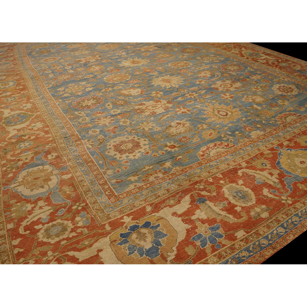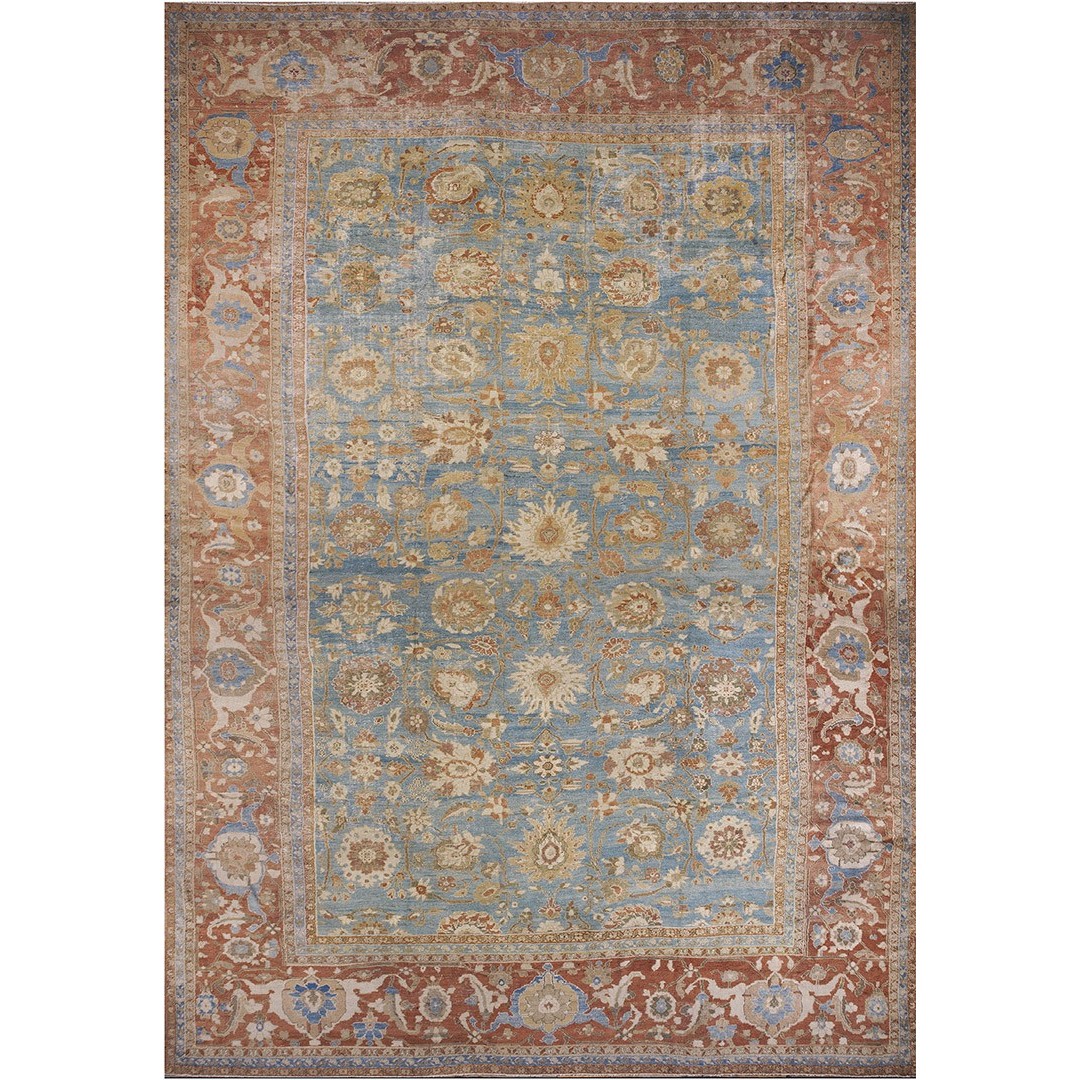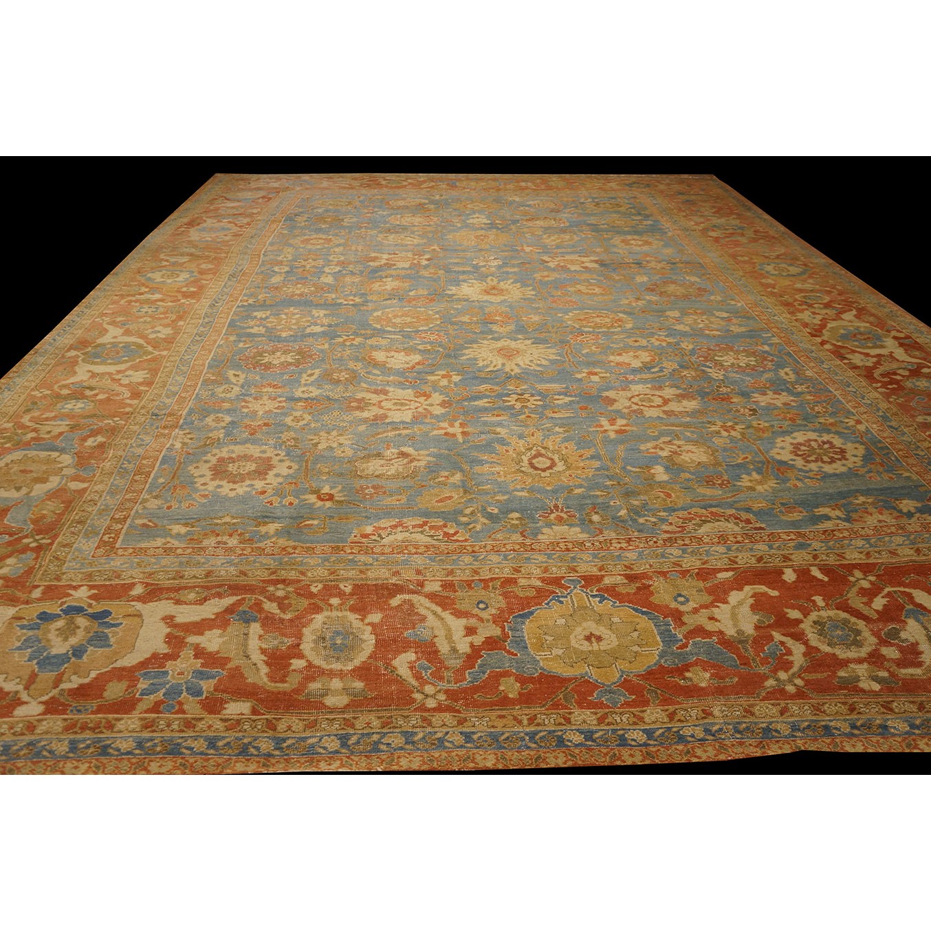 DescriptionSultanabadArak province in western Iran encompasses the town of Sultanabad and various satellite villages, all of which weave for export:the sarouk, Mahal and MushKabad. The latter two grades comprise the sultanabad production. Virtually all are large carpets, up to 16 x 25, with overall, or medallions on decorated or open fields, in soft to bright colors on a cotton foundation, the pile is lowish. The design corpus includes the ever popular Herati, the Harshang palmette motif, rosettes and arabesques, small repeated medallions, etc. The weave varies from coarse to medium. Today, the soft colored pieces with bold patterns are particularly favored. Prices range widely, low for commercial pieces 50 years old, astronomical for light colored Zieglers (see below). | |