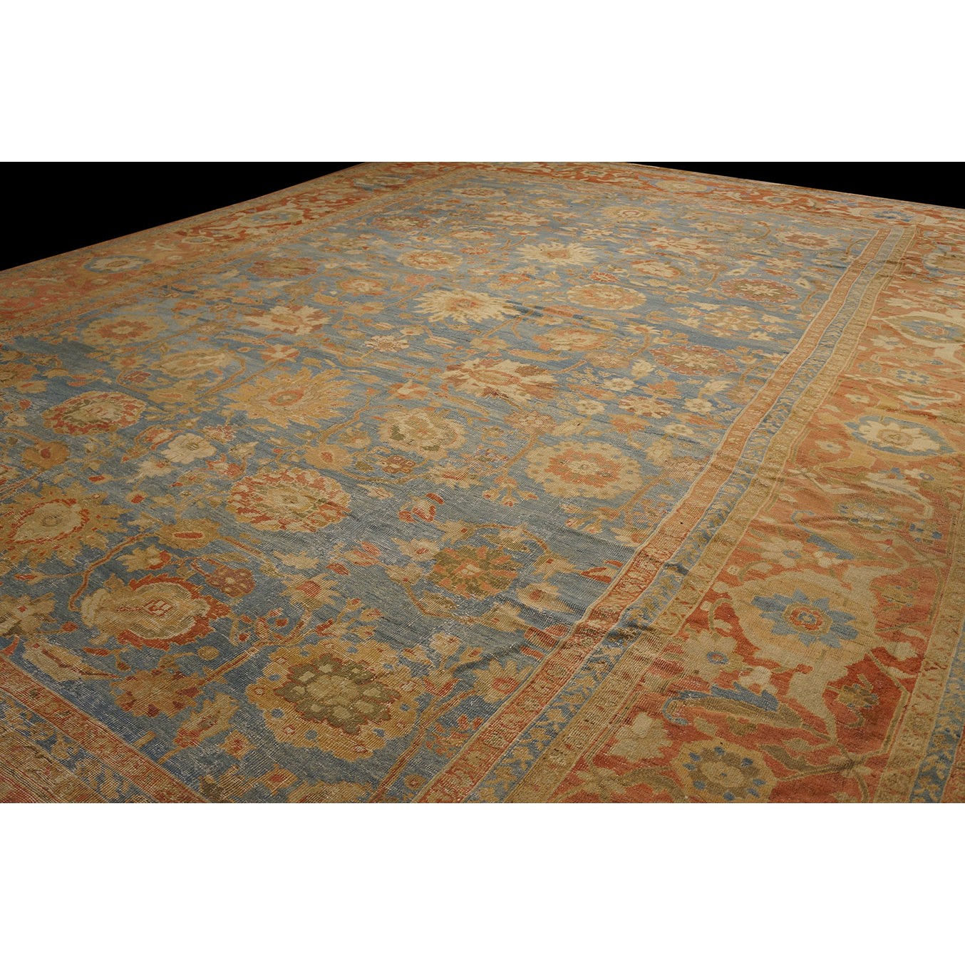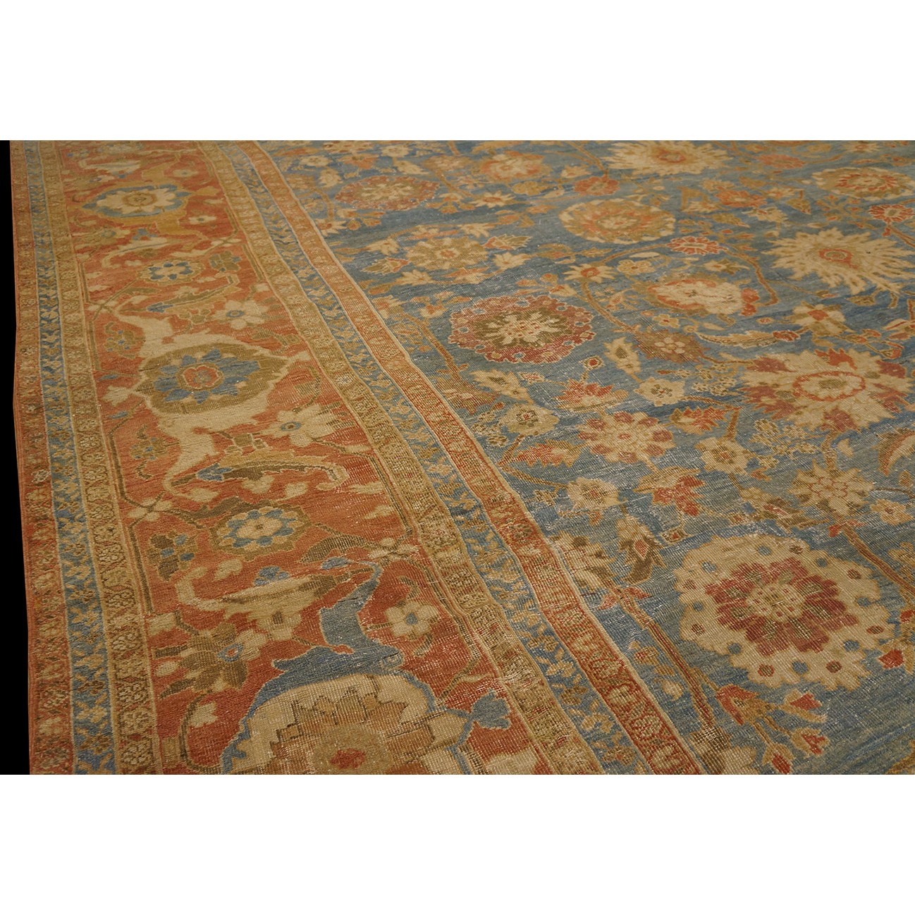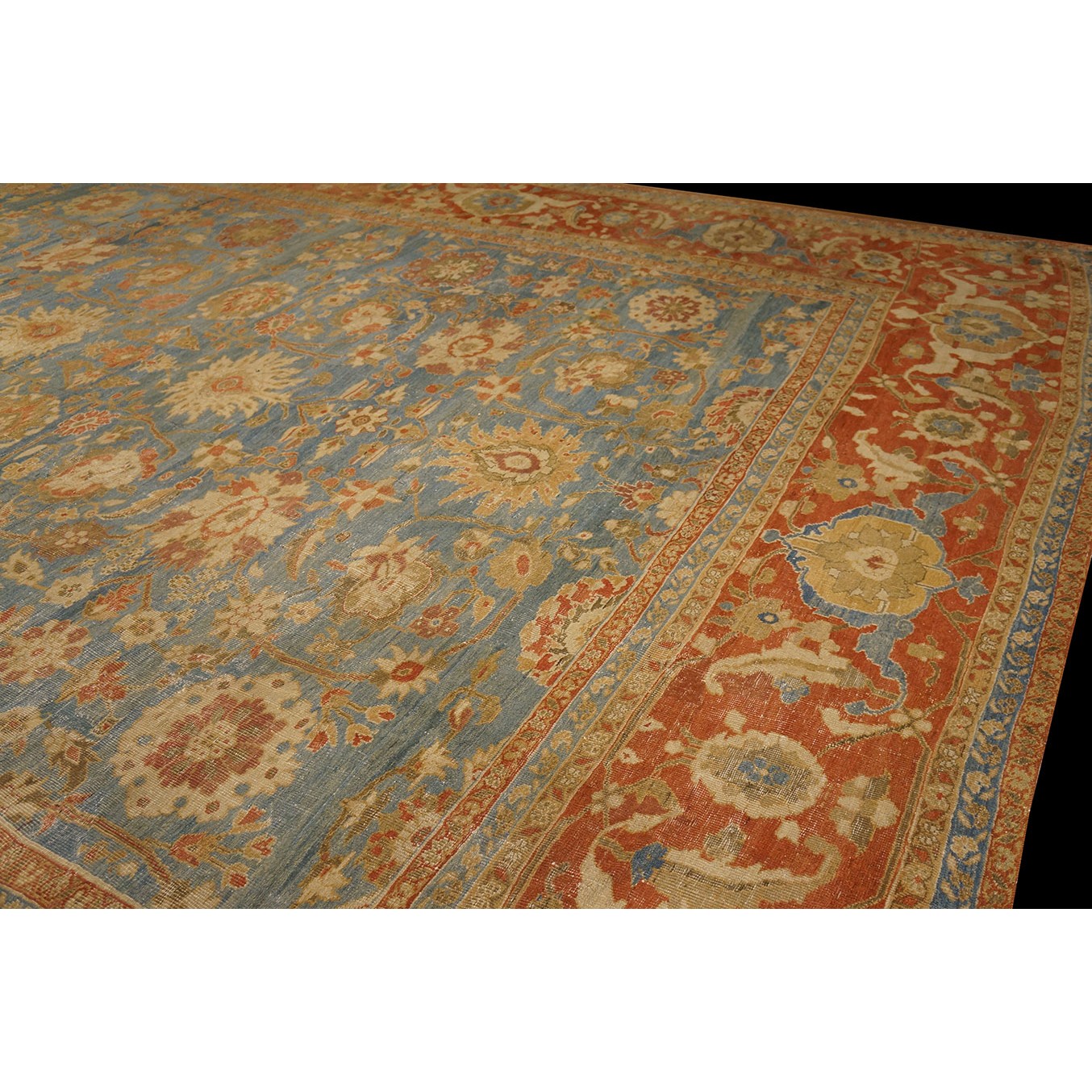 DescriptionSultanabadArak province in western Iran encompasses the town of Sultanabad and various satellite villages, all of which weave for export:the sarouk, Mahal and MushKabad. The latter two grades comprise the sultanabad production. Virtually all are large carpets, up to 16 x 25, with overall, or medallions on decorated or open fields, in soft to bright colors on a cotton foundation, the pile is lowish. The design corpus includes the ever popular Herati, the Harshang palmette motif, rosettes and arabesques, small repeated medallions, etc. The weave varies from coarse to medium. Today, the soft colored pieces with bold patterns are particularly favored. Prices range widely, low for commercial pieces 50 years old, astronomical for light colored Zieglers (see below). | |