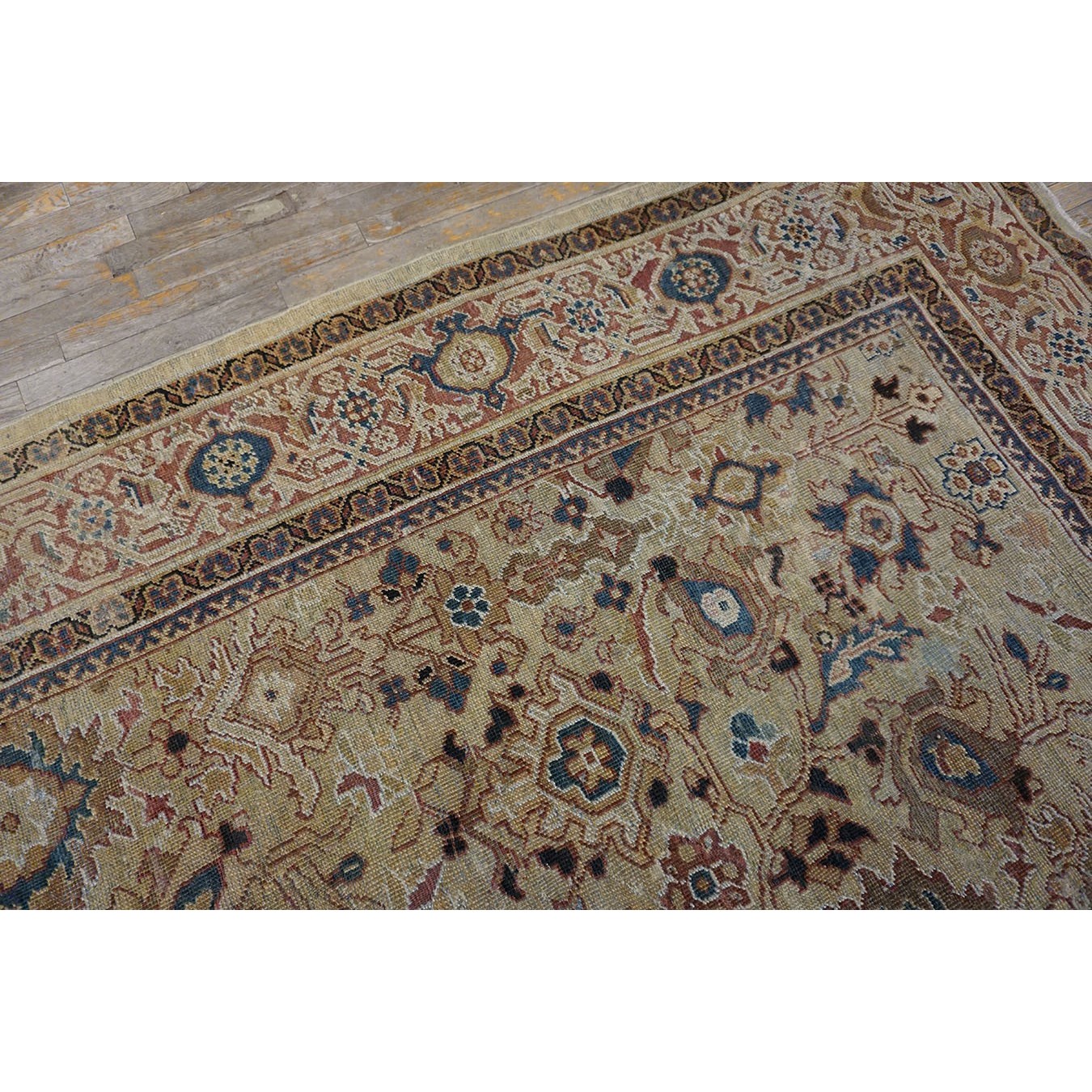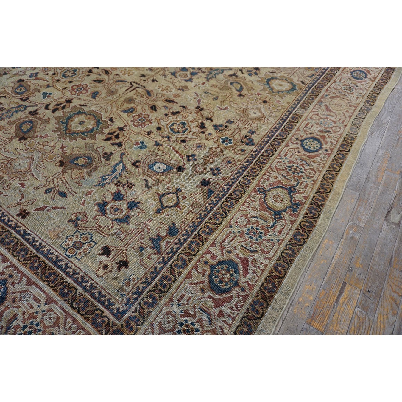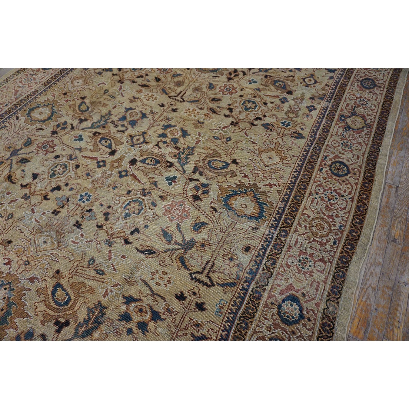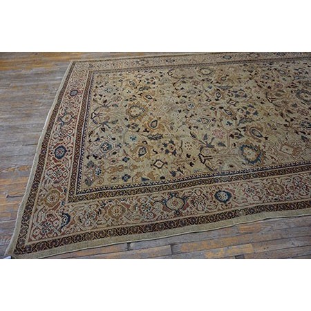 DescriptionSultanabadArak province in western Iran encompasses the town of Sultanabad and various satellite villages, all of which weave for export:the sarouk, Mahal and MushKabad. The latter two grades comprise the sultanabad production. Virtually all are large carpets, up to 16 x 25, with overall, or medallions on decorated or open fields, in soft to bright colors on a cotton foundation, the pile is lowish. The design corpus includes the ever popular Herati, the Harshang palmette motif, rosettes and arabesques, small repeated medallions, etc. The weave varies from coarse to medium. Today, the soft colored pieces with bold patterns are particularly favored. Prices range widely, low for commercial pieces 50 years old, astronomical for light colored Zieglers (see below). | |