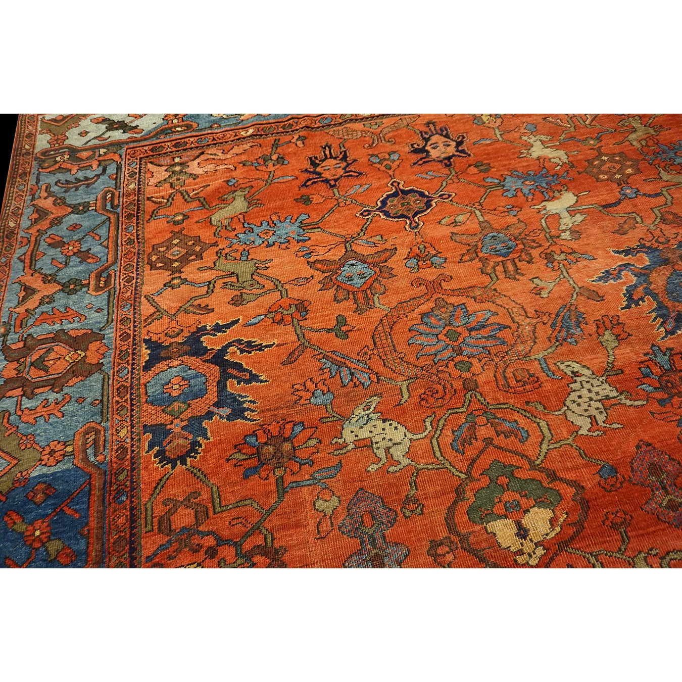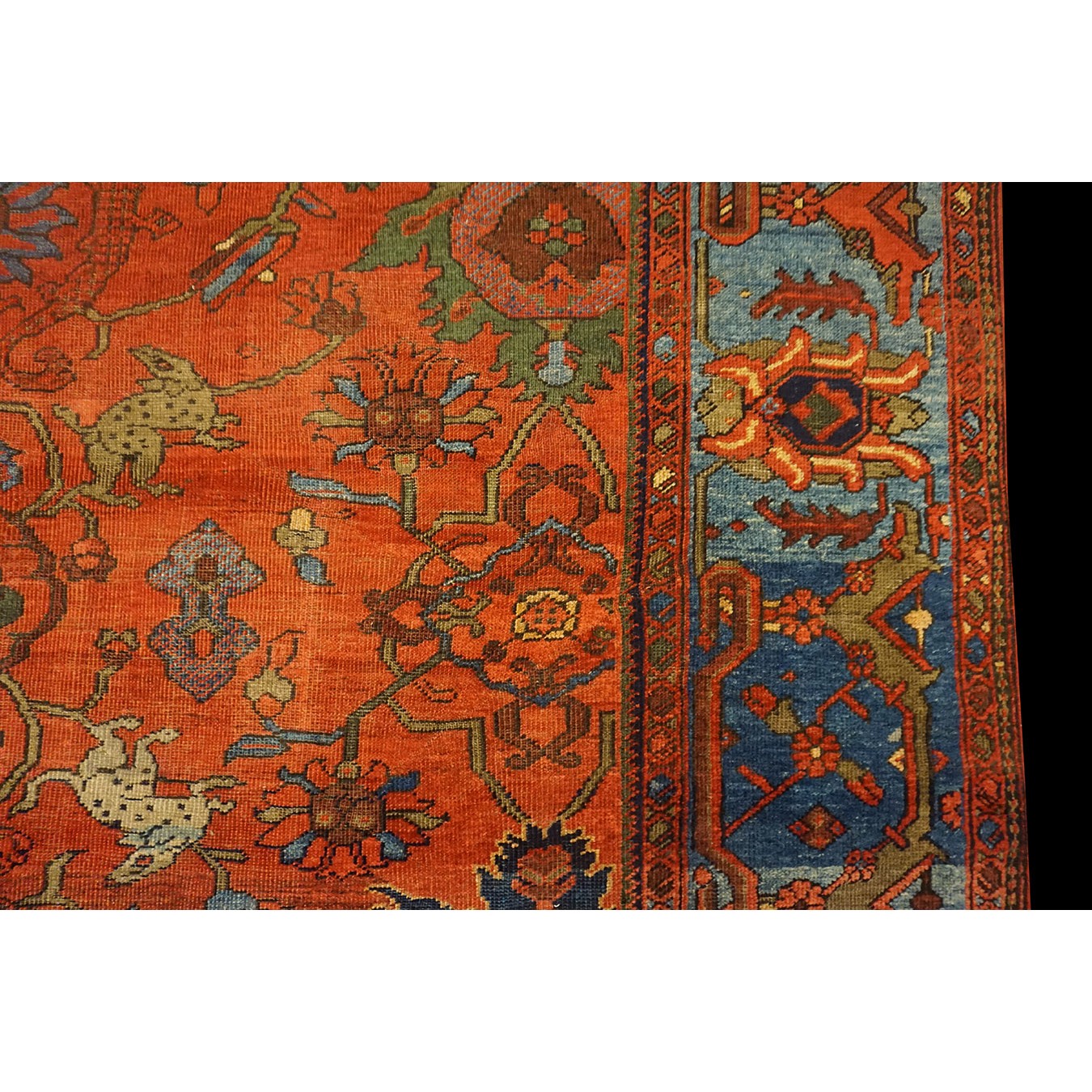 DescriptionSultanabadArak province in western Iran encompasses the town of Sultanabad and various satellite villages, all of which weave for export:the sarouk, Mahal and MushKabad. The latter two grades comprise the sultanabad production. Virtually all are large carpets, up to 16 x 25, with overall, or medallions on decorated or open fields, in soft to bright colors on a cotton foundation, the pile is lowish. The design corpus includes the ever popular Herati, the Harshang palmette motif, rosettes and arabesques, small repeated medallions, etc. The weave varies from coarse to medium. Today, the soft colored pieces with bold patterns are particularly favored. Prices range widely, low for commercial pieces 50 years old, astronomical for light colored Zieglers (see below). | |