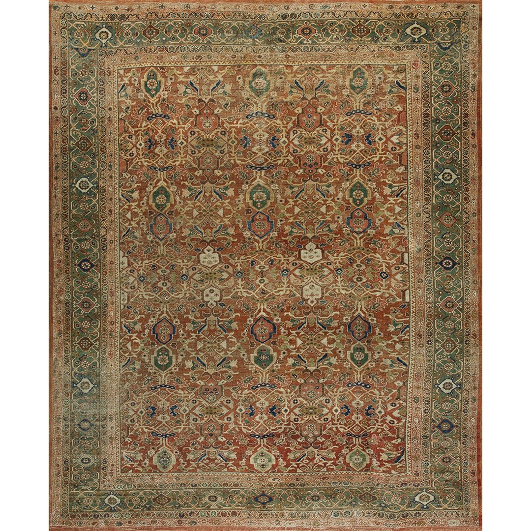 DescriptionSultanabadArak province in western Iran encompasses the town of Sultanabad and various satellite villages, all of which weave for export:the sarouk, Mahal and MushKabad. The latter two grades comprise the sultanabad production. Virtually all are large carpets, up to 16 x 25, with overall, or medallions on decorated or open fields, in soft to bright colors on a cotton foundation, the pile is lowish. The design corpus includes the ever popular Herati, the Harshang palmette motif, rosettes and arabesques, small repeated medallions, etc. The weave varies from coarse to medium. Today, the soft colored pieces with bold patterns are particularly favored. Prices range widely, low for commercial pieces 50 years old, astronomical for light colored Zieglers (see below). | |
