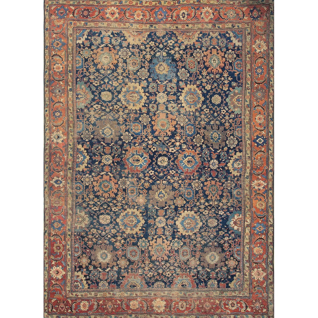 DescriptionSultanabadArak province in western Iran encompasses the town of Sultanabad and various satellite villages, all of which weave for export:the sarouk, Mahal and MushKabad. The latter two grades comprise the sultanabad production. Virtually all are large carpets, up to 16 x 25, with overall, or medallions on decorated or open fields, in soft to bright colors on a cotton foundation, the pile is lowish. The design corpus includes the ever popular Herati, the Harshang palmette motif, rosettes and arabesques, small repeated medallions, etc. The weave varies from coarse to medium. Today, the soft colored pieces with bold patterns are particularly favored. Prices range widely, low for commercial pieces 50 years old, astronomical for light colored Zieglers (see below). | |