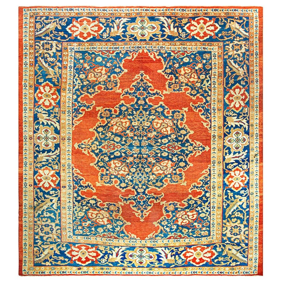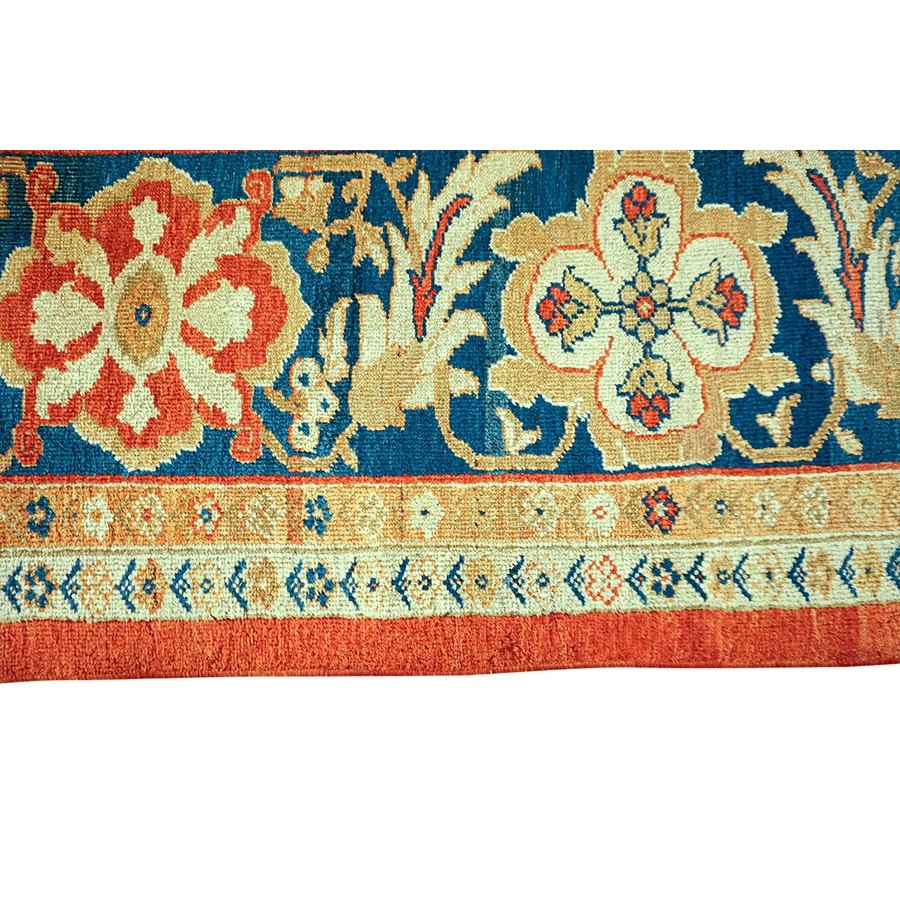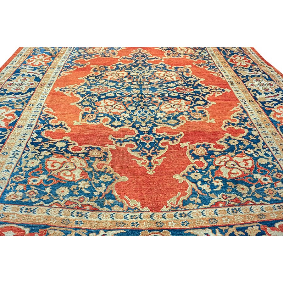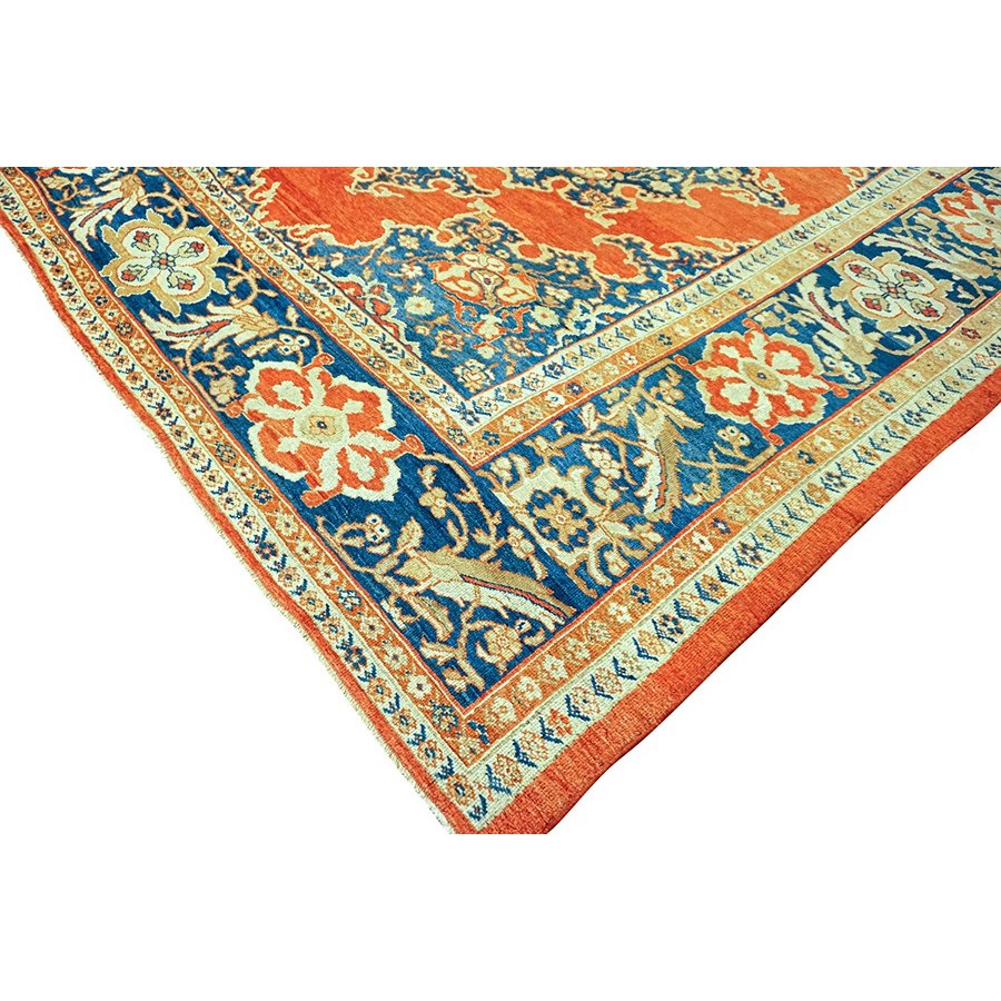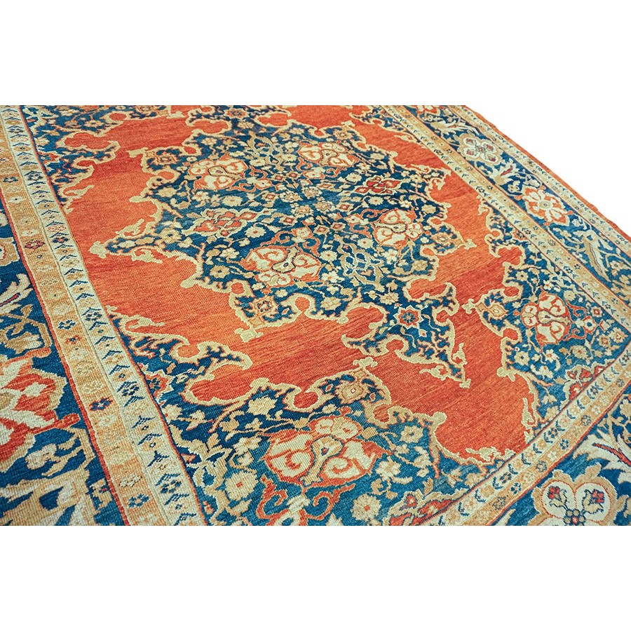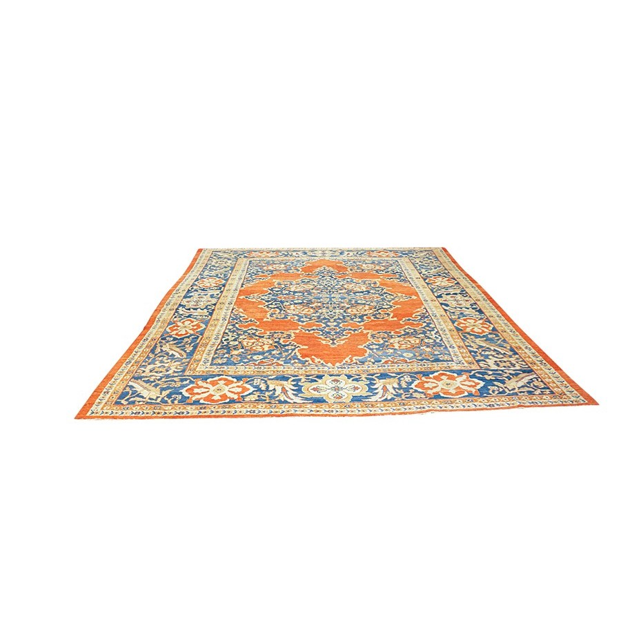 DescriptionSultanabadArak province in western Iran encompasses the town of Sultanabad and various satellite villages, all of which weave for export:the sarouk, Mahal and MushKabad. The latter two grades comprise the sultanabad production. Virtually all are large carpets, up to 16 x 25, with overall, or medallions on decorated or open fields, in soft to bright colors on a cotton foundation, the pile is lowish. The design corpus includes the ever popular Herati, the Harshang palmette motif, rosettes and arabesques, small repeated medallions, etc. The weave varies from coarse to medium. Today, the soft colored pieces with bold patterns are particularly favored. Prices range widely, low for commercial pieces 50 years old, astronomical for light colored Zieglers (see below). | |