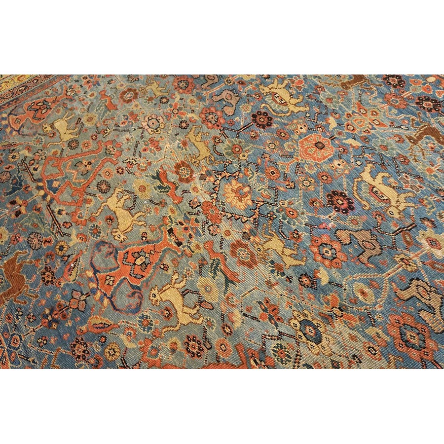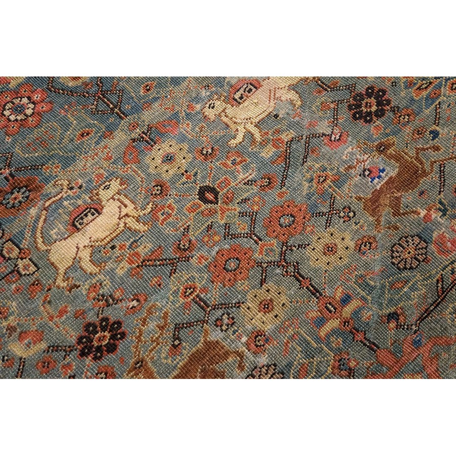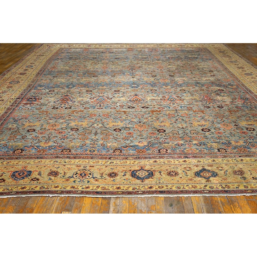 DescriptionSultanabadArak province in western Iran encompasses the town of Sultanabad and various satellite villages, all of which weave for export:the sarouk, Mahal and MushKabad. The latter two grades comprise the sultanabad production. Virtually all are large carpets, up to 16 x 25, with overall, or medallions on decorated or open fields, in soft to bright colors on a cotton foundation, the pile is lowish. The design corpus includes the ever popular Herati, the Harshang palmette motif, rosettes and arabesques, small repeated medallions, etc. The weave varies from coarse to medium. Today, the soft colored pieces with bold patterns are particularly favored. Prices range widely, low for commercial pieces 50 years old, astronomical for light colored Zieglers (see below). | |